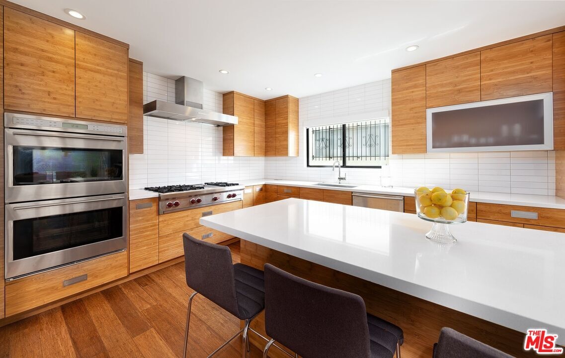This inviting single-story luxury home has been completely remodeled. Over $500,000 in upgrades! It offers approx. 2400 sq. ft of thoughtfully designed living space. It features 3 large bedrooms and 2.5 completely redesigned baths appointed with high-end finishes. There is also a den/office/bonus room that could easily become a fourth bedroom. The gourmet kitchen is a chef's dream come true, equipped with top-of-the-line appliances from WOLF, SUB-ZERO and MELE. The expansive 8-foot center kitchen island with seating for four is perfect for casual dining and social gatherings. The open-floor plan seamlessly transitions from kitchen to dining area to living room where you can enjoy the intimate gas fireplace just steps from the tri-fold doors that open to the private balcony creating an indoor-outdoor entertaining environment. The primary bedroom is a true retreat, featuring an n-suite bathroom, with a large walk-in shower, a double vanity and a TOTO toilet with washet-complete with a heated seat. The walk-in closet provides ample storage. The tri-fold doors open to a beautifully landscaped backyard, complete with a natural gas fire bowl, a pergola, and outdoor dining area and a fully equipped outdoor kitchen. The second bedroom also offers direct access through its own set of tri-fold doors. Additional features include an oversize garage with ample storage, an upgraded electrical panel, recessed LED lighting throughout the home. All new double-paned low-E windows for energy efficiency, on-demand hot water heater, wiring for an electric car charger, and a wonderful neighborhood and street. This home has been showcased in several Home Publications. HOME CAN BE DELIVERED FULLY OR PARTIALLY FURNISHED AS PICTURED. ALSO CAN BE UNFURNISHED AND VACANT.