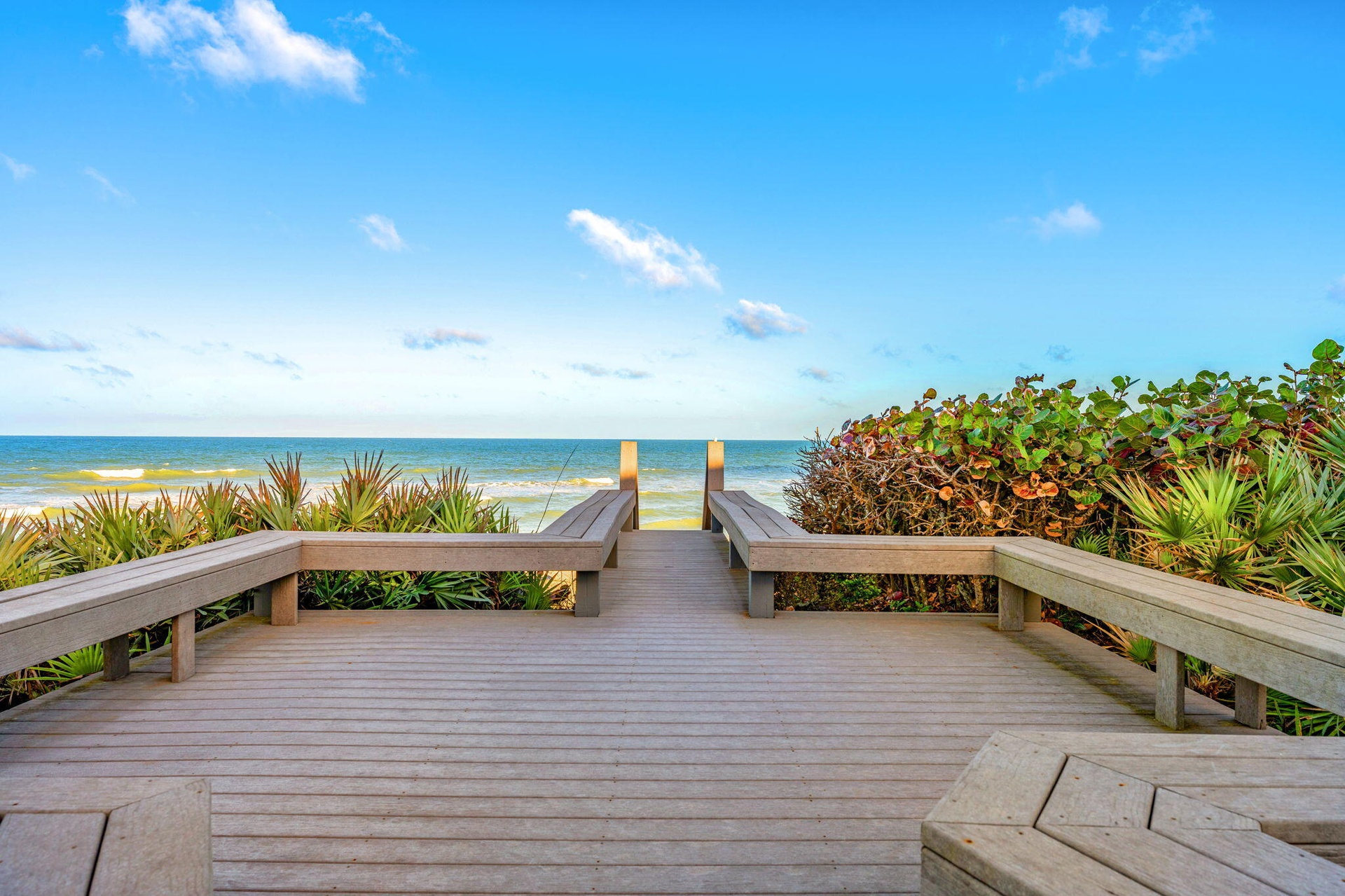 Situated on an expansive .82-acre property with 100 feet of Oceanfront frontage, this residence offers breathtaking panoramic ocean views with impact windows and sliders throughout. Enjoy the outdoors with a large composite balcony, beach crossover, and a spacious seating area, perfect for relaxation or hosting gatherings. An additional balcony offers stunning west facing sunset views. With an expansive 2-car garage and extended driveway, this property provides ample parking, including space for RV or boat parking. The second floor, with ocean views throughout, is designed for luxury living, featuring an expansive deck, the primary bedroom suite, which includes a separate shower and tub, dual vanities, and ample closet space. The open-concept living area and kitchen boast granite countertops, a large walk-in pantry, and a dining area perfect for entertaining. A half-bath and a second laundry room add convenience to this beautiful home.