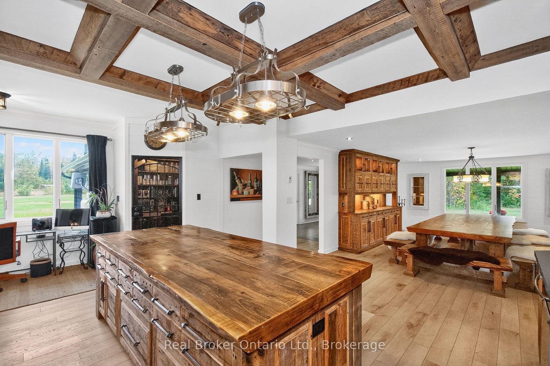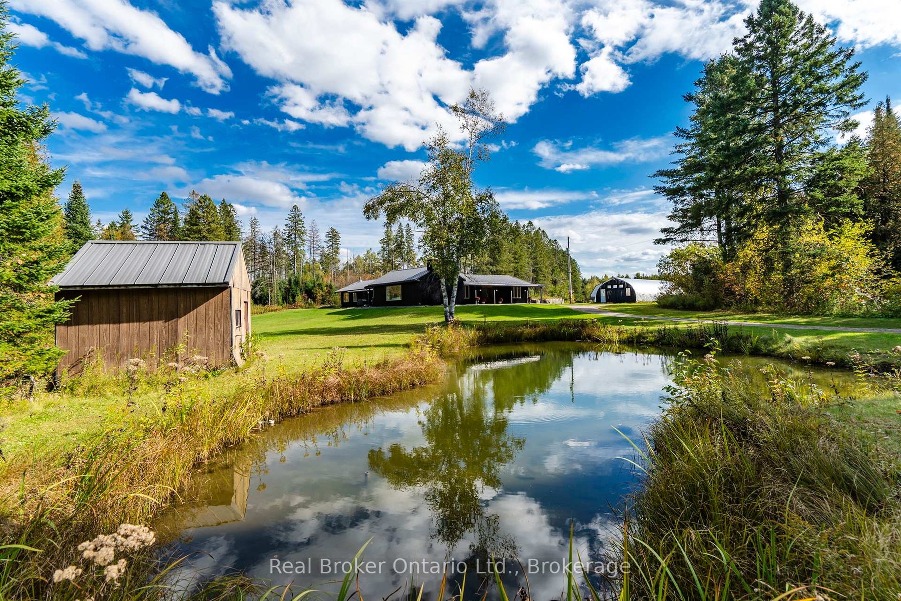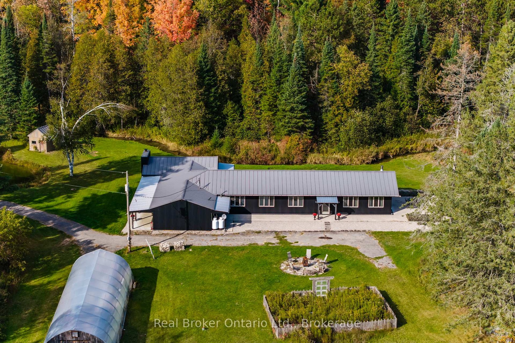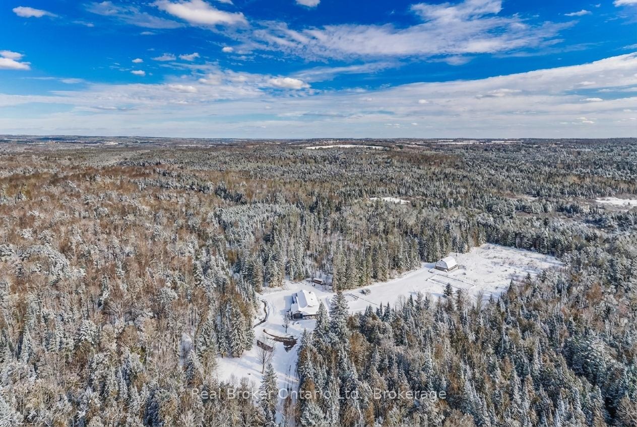 "The Winding Rivers Estate" has it all, privacy, location and acreage. This one of a kind state of the art Contemporary Home is a lifestyle retreat sitting on nearly 100 acres, this extraordinary property offers the perfect blend of peaceful living, recreational opportunities, and income potential. The land features open, treed and cleared productive farmland, and is surrounded by managed forest. A gated private drive crosses a bridge over Matheson Creek, winds past a spring-fed pond, and leads to over 3000 sq ft of luxury living space bordering Willow Creek. Sunlight pours into every inch of the home through the expansive windows and doors designed to frame the fabulous outdoor views. The amazing chef's kitchen comes complete with Sub Zero/Wolf and Viking stainless steel high end appliances a huge island and rustic high end finishes. The radiant in-floor heating, rustic wood beams, multiple fireplaces and custom touches throughout blend style with timeless looks. The 36x48 ft. two level hip-roof barn with space for 7 large stalls, has a free-span loft, concrete floor, hydro and water. The paddocks, run-in shed, and riding ring invites possibilities from equestrian pursuits to creative projects. Explore the large network of private trails weaving through the creeks and streams throughout the entire property; ideal for ATV or horseback riding, hiking or cross country skiing. A 24x60 ft greenhouse makes it easy for the avid gardener to spend hours cultivating their own indoor gardens. The gardens, wood and pump houses, plus wood and propane boilers, offer self-sufficiency in this agricultural zoned estate with a rare blend of natural beauty, long-term value, and exceptional privacy. Whether you're seeking a family retreat, hobby farm or simply space to breathe this is a property that delivers. Just 10 mins to Barrie, 15 to Horseshoe Valley and Vetta spa, golfing, skiing, and major highways, just imagine the endless possibilities that await in this remarkable estate.