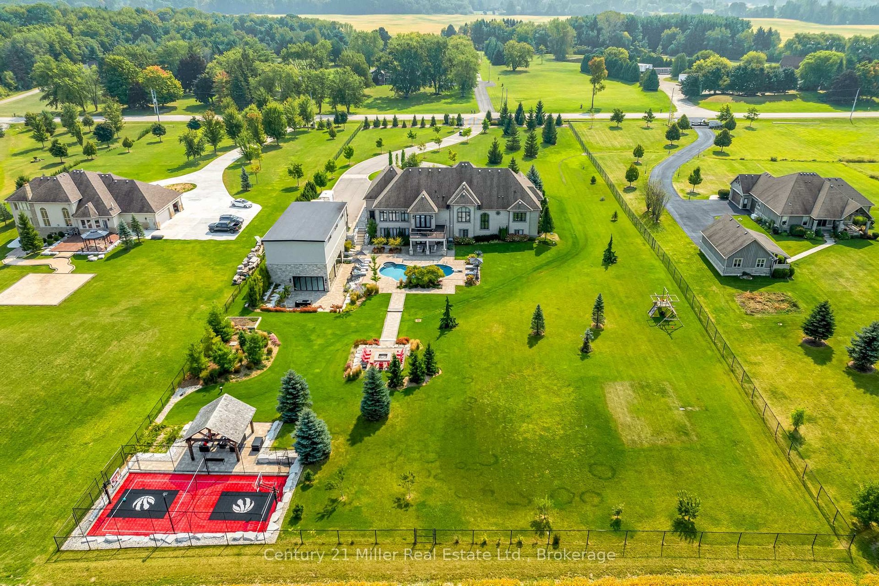 Welcome to your dream home, where luxury, lifestyle, and space come together on an incredible 2.68-acre estate. This custom bungalow offers over 7,500 sq.ft. of total living space, meticulously designed for both family living and high-end entertaining. Featuring 2+3 bedrooms, 3.5 bathrooms, two full kitchens, and a beautifully finished walk-out basement with a versatile bonus room ideal for a home gym, office, or media space - this home has room for it all. Freshly painted throughout and thoughtfully updated, the interior exudes elegance and comfort. The expansive 3-car garage offers ample space, while the separate heated workshop adds practicality for hobbyists or professionals. Step outside into your own private resort. The show-stopping 1,800 sq.ft. pool cabana is a true masterpiece, complete with in-floor heating, a full chef's kitchen equipped with top-of-the-line appliances, his and hers luxury bathrooms adorned with Roberto Cavalli wallpaper, and 3 large aluminum glass bi-fold doors that fully open to the outdoors for seamless indoor-outdoor year round living. The grounds are professionally landscaped with a full irrigation system and designed to impress. Enjoy the saltwater pool with a tranquil waterfall and deck jets, a fire pit for evening gatherings, a multi-sport sunken court perfect for basketball, pickleball, volleyball, or badminton - convertible into a winter skating rink for year-round enjoyment. This is more than a home - it's a lifestyle sanctuary just waiting to be experienced. 10 minutes to Hwy 403 & Hillfield Strathallan College school bus stop and short distance to other local Private Schools. Full School Report included as last picture.