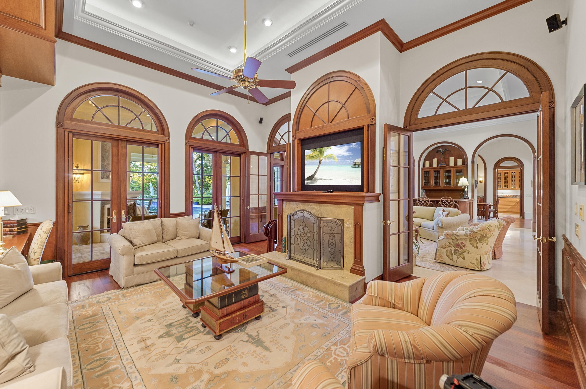 The living spaces combine comfort and elegance, featuring 4 bedrooms, 5 full bathrooms, and 2 half baths. A custom bar and multiple fireplaces enhance the living room, while the spacious, bright kitchen offers an ideal space for dining and entertaining. Large french doors connect the interior to a generous covered terrace, creating a seamless indoor-outdoor flow. The entire second level is devoted to the primary suite, providing a private retreat with a spacious bedroom, dual bathrooms and walk-in closets, a sitting room, office, studio, and a balcony capturing magnificent water and garden views.