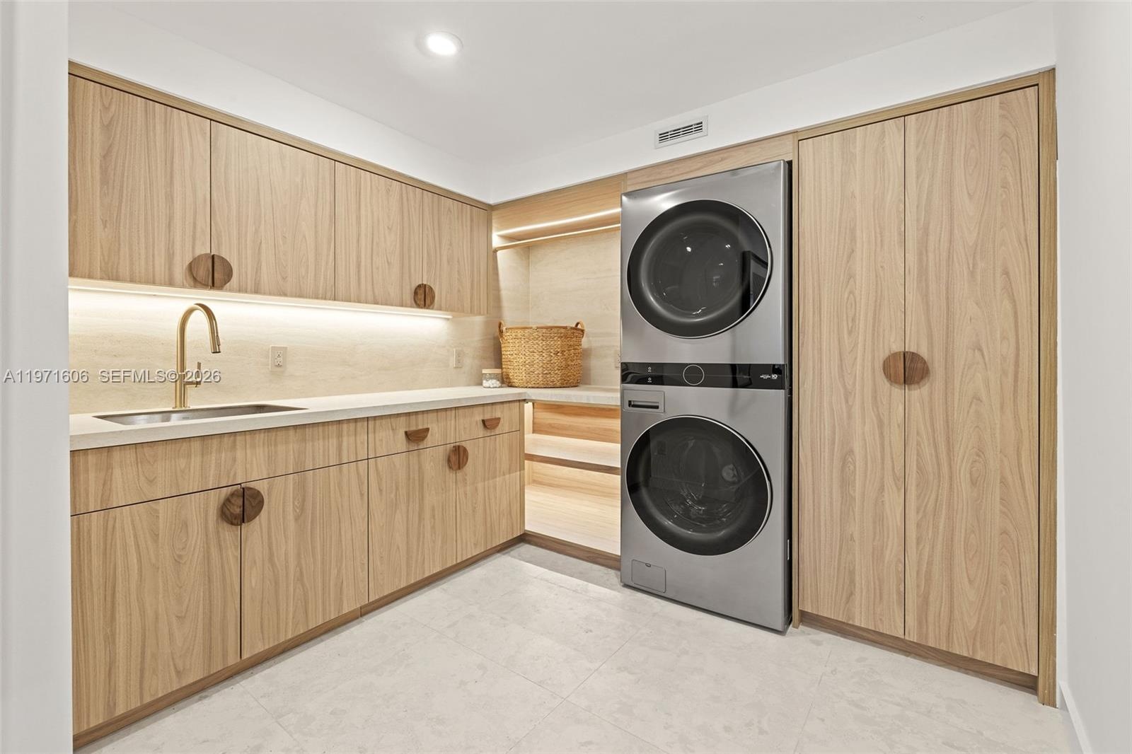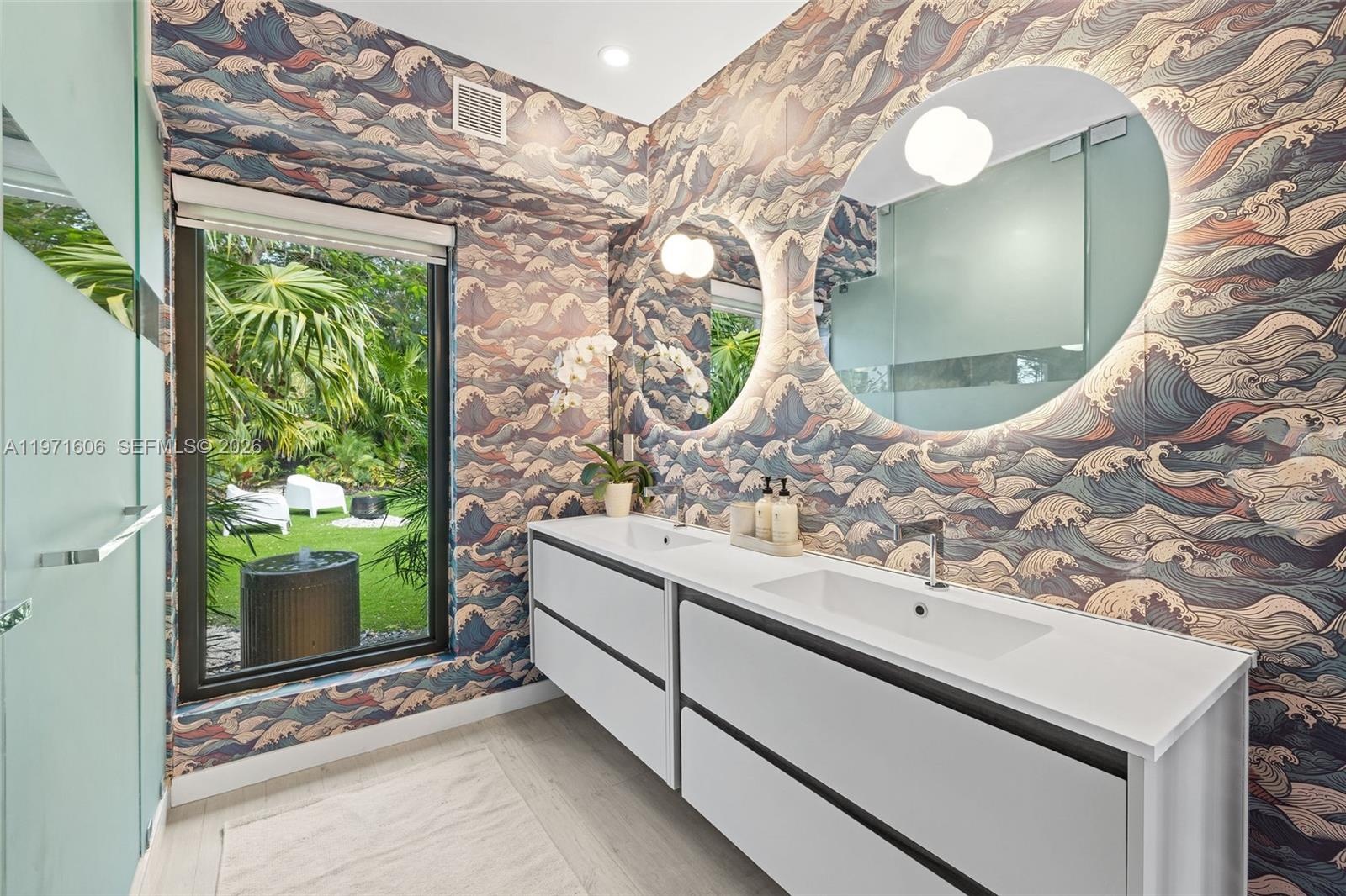 Shoreland – The Revitalized Panorama House. A rare opportunity to own one of Miami Shores’ most architecturally significant estates. Originally designed in 1950 by noted architect Joseph DeBrita, this iconic midcentury modern residence has been comprehensively reimagined by Shoreland Group. Set on a 21,450 SF parcel—among the largest in the village—the 5,348 SF home is positioned beneath mature oaks to maximize privacy and outdoor living. Interiors offer 4,370 SF under air with dual primary suites, an in-law suite with kitchenette, cinema/game room, laundry, and attached garage. Refined, cohesive interiors blend architectural authenticity with warm, modern design. A meditation garden anchors the home, complemented by 1,000+ SF of covered entertaining space, summer kitchen, heated 42-foot saltwater lap pool, fire pit, outdoor shower, and lush tropical grounds. Discreet from the street yet transformative within, Shoreland delivers pedigree, scale, and experiential design in one singular offering.