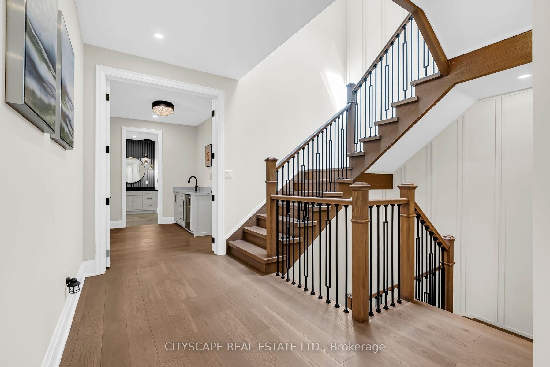 An unique luxury home with over 6500 sq.ft of living space (5729 above grade + 850 below), plus a 1500sq.ft underground parking garage accessed via a $100k twin deck car elevator system, a 2 car surface garage, and a 4 level home elevator. The main level consists of the office/library, dining area, family/living room, the main kitchen with breakfast area, a secondary galley kitchen, storage room/pantry area, utility room and mud room. Also included is a 2 car surface garage and a landscaped front and backyard. The second level contains the principal suite, boasting a double door entry foyer with wet bar, large primary bedroom space, a 10x12 his closet, a 13x16 her closet and a large primary bath with his and her vanities. A large laundry with custom cabinetry, plus another two good size bedrooms with ensuite and a bonus study/yoga space are included. The third level contains a large rec room with a custom kitchenette space, and a glass balcony facing north. Ideal for kids entertainment. Another bedroom with a large ensuite and glass balcony facing east, another bedroom and a 4 pc bath, plus a secondary furnace room complete the third level. The basement is designed as a man's dream cave. A gentlemen's lounge with a glass wall looking onto a collector style showroom garage able to hold 3 - 5 cars in a gallery setting. Additional sitting space, a media room and a 2 pc washroom and the primary mechanical room are also included at this level.