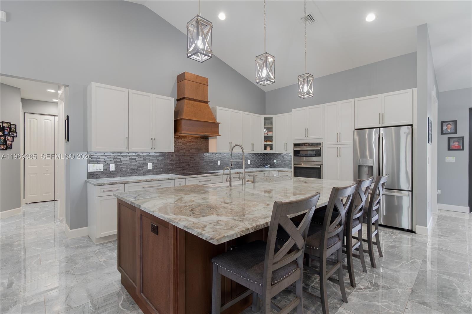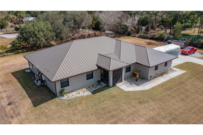 STUNNING 2022-built 5 BEDROOM, 3 BATH home on 1.15 fully fenced acres with remote gate in a TOP RATED SCHOOL SYSTEM in JUPITER FARMS!. Enjoy an open-concept layout where luxury abounds with sleek porcelain floors, soaring ceilings and a chef’s kitchen featuring granite counters, built in oven with warming tray, induction cooktop, tons of cabinetry and a large island. The triple-split bedroom plan includes a spacious master suite with dual closets and a spa-like bath with walk-in shower, soaking tub, and double vanity. Custom California closets in all rooms. Relax on the 56x10 screened patio with friend and guests. Extras: Metal seamless roof, plantation shutters, tankless water heater, epoxy garage floor, tons of built in storage, HUGE laundry room and SO much more. Room for a pool, or stalls so bring your horses! Experience peaceful country living WITH ROOM TO GROW—welcome to the Farms!
