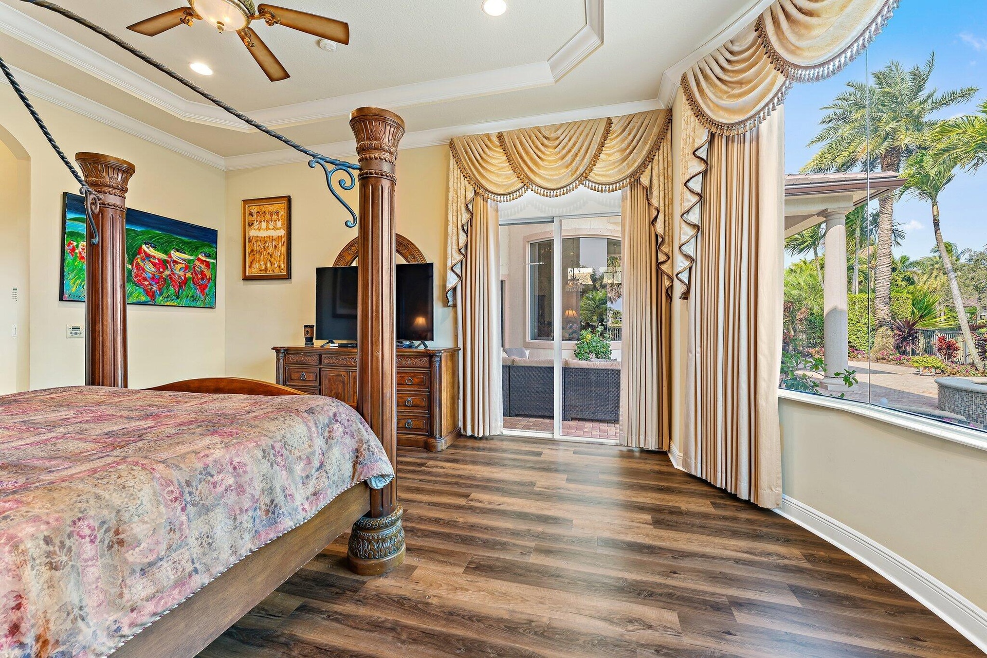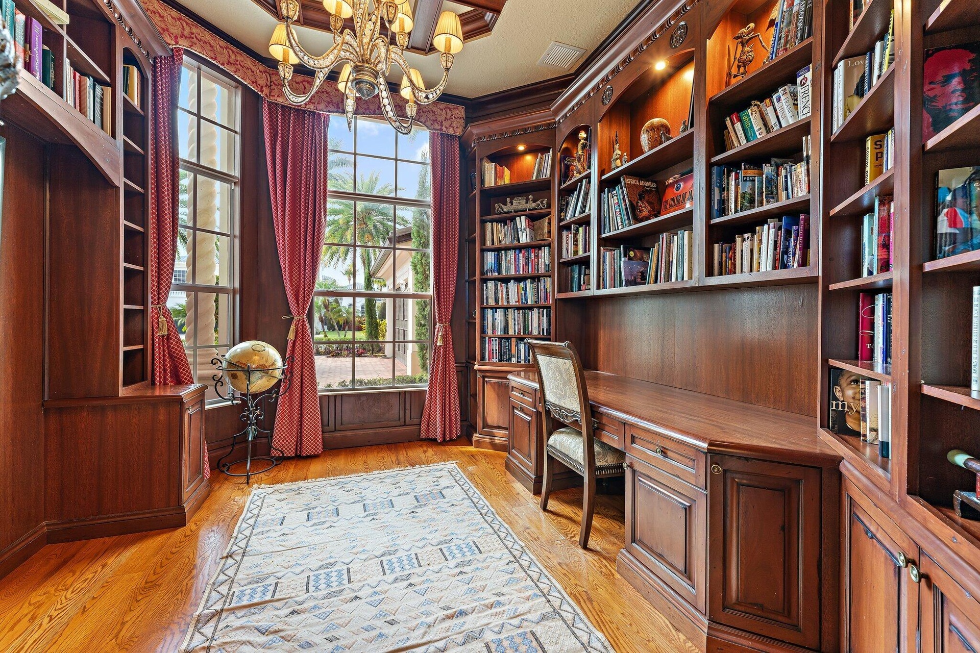 Experience the premier Frenchman's Reserve lifestyle in this coveted Villa Rosa estate, situated just a block away from the Club in the heart of Palm Beach Gardens. Set on an exceptional lot with unrivaled lake and Arnold Palmer championship golf course views, this home offers a brand-new roof (2025) and is an extraordinary opportunity to personalize a luxury residence in one of the area's most exclusive country club communities. From the moment you open the double doors, soaring 24' ceilings and a wall of floor-to-ceiling windows fill the home with natural light and showcase stunning views of the tranquil lake and golf course. This luxury residence offers 5 bedrooms, 5 full bathrooms, 2 half bathrooms, a spacious loft, a separate library, and a dedicated home theater/movie room. The kitchen flows seamlessly into the family room and casual dining area, creating an open-concept space perfect for entertaining. A wet bar with bar seating completes the formal living and dining room entertaining areas. The elegant loft overlooks the main living room, adding openness and architectural drama to the heart of the home. The primary suite features the same breathtaking golf, water and pool views, his-and-hers walk-in closets with custom built-ins, and an adjoining room that can serve as a gym, office, or dressing area, with dual bathrooms for ultimate convenience. First floor also includes a private guest bedroom with ensuite bath and 2 half baths. Upstairs, four gracious guest suites provide private retreats, including a secondary primary suite with a private balcony, walk-in closet, and an oversized spa bathroom. A circular driveway and 2-car + golf cart garage provide both striking curb appeal and functional convenience. EV charger ready! Outdoor living includes a heated pool, spa, and expansive gated patio for year-round enjoyment. This home is more than a residence-it's a lifestyle. Residents of Frenchman's Reserve enjoy world-class amenities including golf, tennis and pickleball courts, a state-of-the-art fitness center, resort-style clubhouse with fabulous dining options and a Kids Club. A social/sports membership is required, with the option to join the golf exchange program for additional golfing privileges.
