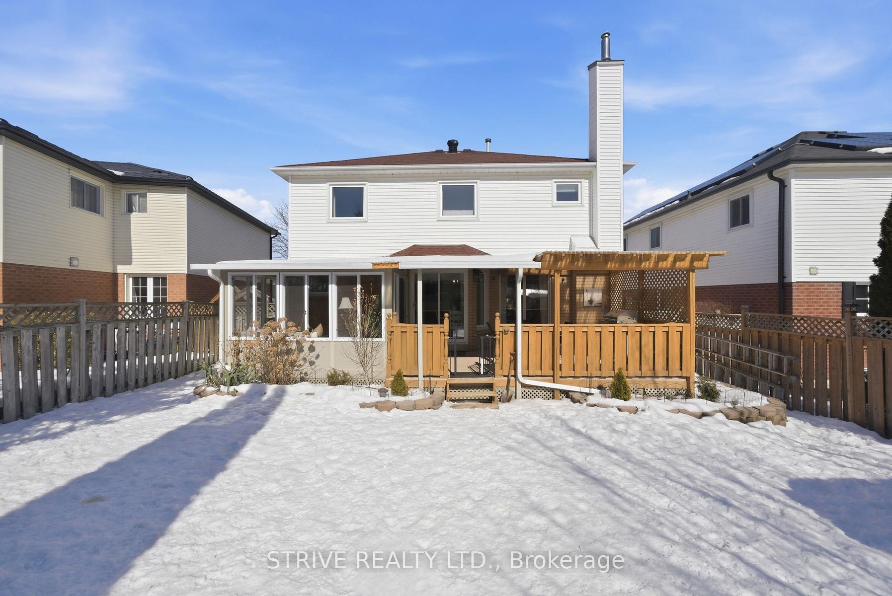 Beautiful large family home with functional layout, well appointed principal rooms and large bedrooms in a popular neighbourhood in Northwest Cobourg. Boasting over 2800 square feet of finished living space this well-maintained home offers space for the whole family and a wonderful space to host friends and family. The full height front turret and interlock driveway offer great curb appeal. Step into the welcoming front foyer with winding staircase and large front closet. Front living room with bay window opens to the back family room with cozy gas fireplace. Spacious eat-in kitchen with breakfast nook, new stainless steel appliances, and walkout to large covered deck. Formal dining room conveniently just off of the kitchen. Main floor also offers a large laundry room with laundry sink and convenient garage access and a 2-piece powder room. Unwind in the oversized primary retreat with walk-in closet and 4-piece ensuite with soaker tub and separate shower. 3 additional generous bedrooms all with double closets and a 4-piece bath complete the second level. The fully-finished basement offers an expansive rec room with dry bar as well as a home office and large utility/storage room. The 3-season sunroom and covered back deck overlooking the fully fenced private yard with mature trees and gardens offer the perfect space to relax and enjoy some time outdoors. Property has irrigation system. Conveniently located just steps from schools, parks, restaurants, stores, mall, movie theatre and hospital and a short drive to Cobourg Beach & Marina, downtown shops and restaurants with quick access to the 401 & Port Hope. Recent updates include: New carpet on stairs and 3 of the 4 upper bedrooms (26), Light Fixtures (26), Range Hood (26), Kitchen Appliances (2024), Furnace & AC (2022), refinished pergola, and interior painting. If you're looking for a bright and spacious turn-key family home bursting with pride of ownership in a great neighbourhood and community - this is it!