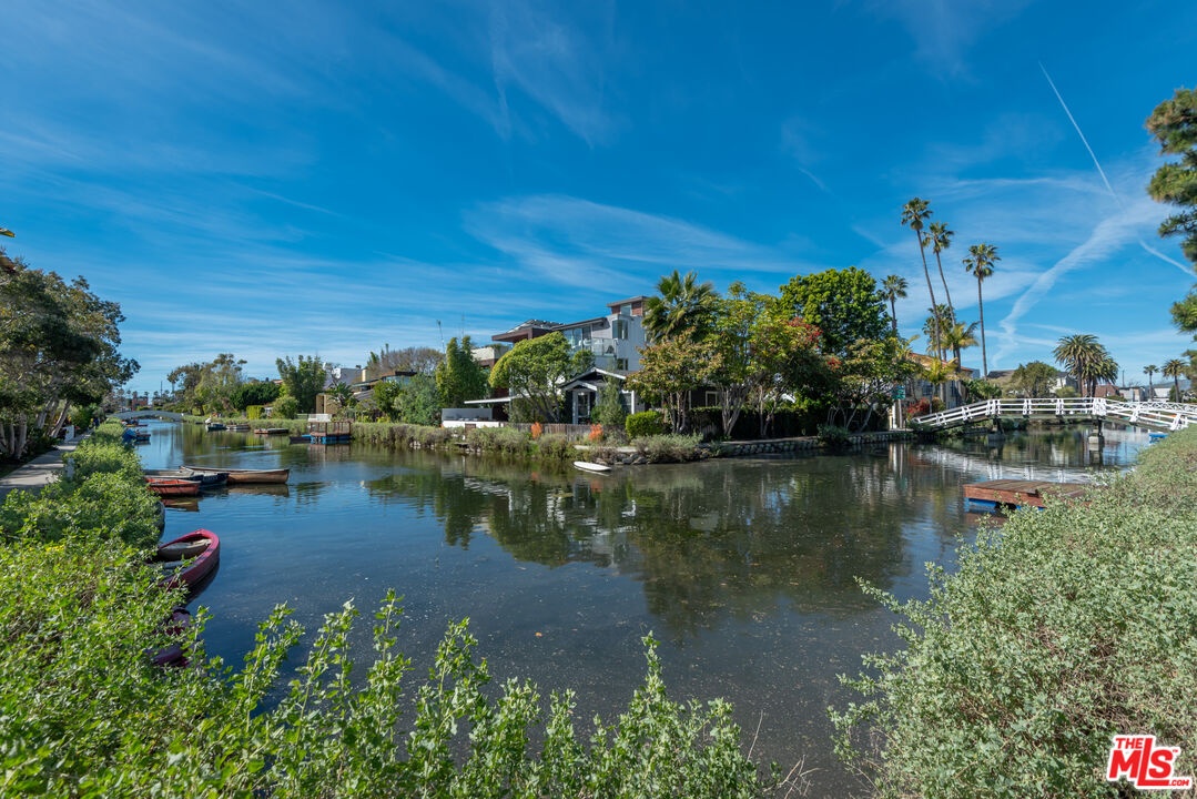 Set on a coveted west facing corner along the iconic Venice Canals, this two story canal front residence offers an exceptional blend of light, volume, and coastal serenity, with glowing sunset views stretching down the water. Soaring ceilings define the main living and entertaining spaces, where dramatic vertical volume meets walls of windows framing the enchanting canal below. The open concept kitchen, dining, and living areas flow effortlessly together, all oriented toward the water and opening to a sizable canal facing deck. This sun drenched outdoor space is ideal for afternoon lounging, sunset gatherings, or simply enjoying the ocean breeze. Upstairs, the primary suite feels airy and elevated with lofted ceilings, tranquil water views, and a private balcony overlooking the canal. Each bedroom enjoys its own patio or balcony, creating seamless indoor outdoor living throughout. A ground floor en suite bedroom offers flexibility for guests, office use, or extended stays. Additional highlights include en suite bathrooms in every bedroom and a two-car garage plus two additional parking spaces. Ideally positioned for easy access in and out of the neighborhood, the home offers peaceful waterfront living without being tucked deep within the canal grid. Just moments from the beach, Abbot Kinney, and the best of Venice dining and retail, this is refined coastal living at its best. The home also carries a touch of Hollywood history, having served as the iconic "Baywatch" residence of lifeguard Mitch Buchanan.