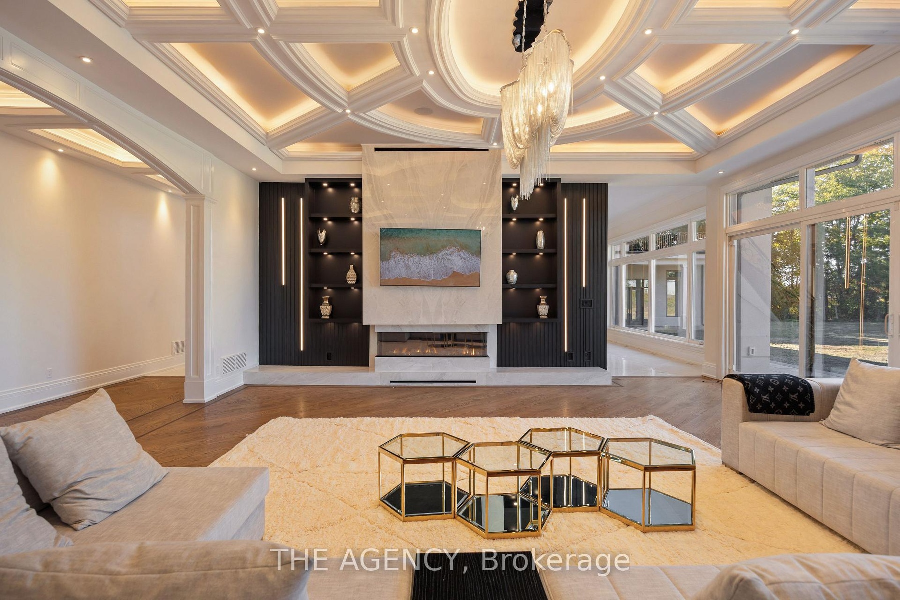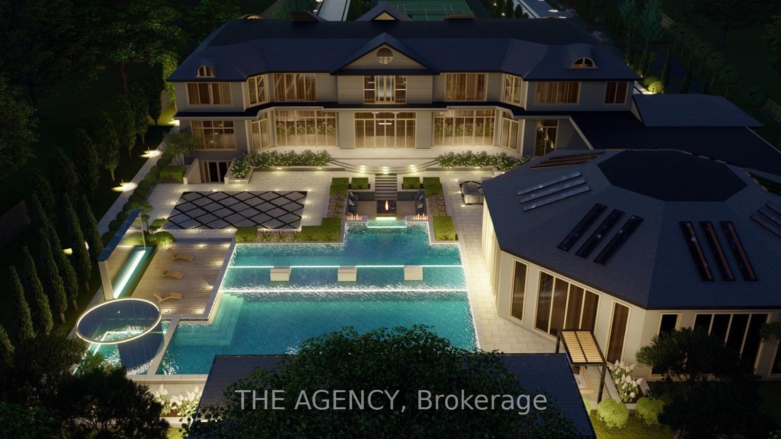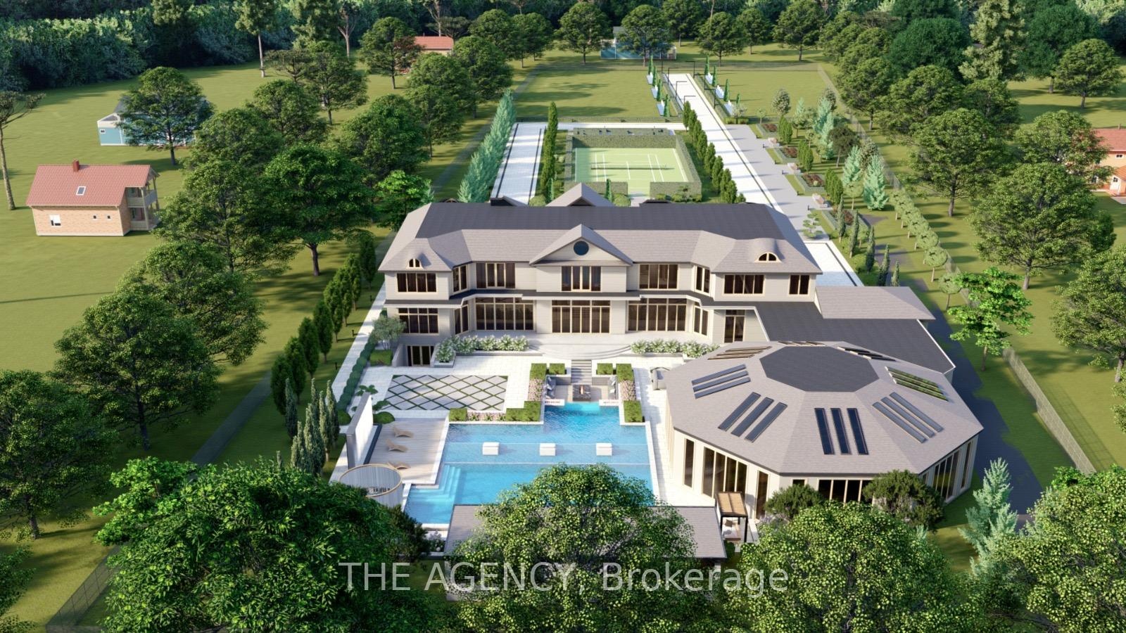 Introducing a residence of unrivaled grandeur, where architectural artistry meets timeless elegance. Nestled on ten acres of immaculate, level grounds, this extraordinary estate offers over 20,000 square feet of refined living space, where each room showcases exceptional craftsmanship and exquisite detail destined to surpass every expectation. A majestic foyer welcomes you with soaring ceilings and sweeping palace-inspired staircases, setting a regal tone for greeting guests in opulent style. Expansive entertaining salons boast custom 22-foot ceilings and walls of glass that frame panoramic vistas, immersing the interiors in natural light and breathtaking scenery. Indulge in eight sumptuous suites, including a master retreat designed as a sanctuary of comfort and serenity. Unwind in your private spa and sauna, enjoy cinematic experiences in the state-of-the-art theatre, or marvel at the serenity of an indoor waterfall that adds a touch of tranquility to your surroundings. Four elegant fireplaces enhance the ambiance throughout, while the gourmet kitchen is a chefs dream, equipped with a 60-inch Wolf gas range, Wolf hood, built-in Bosch coffee maker, offering a culinary experience as luxurious as the home itself. This estate is equipped with advanced amenities, including steam humidifiers, four furnaces, four air conditioning units, a comprehensive reverse osmosis water system, and a whole-home water softener, ensuring an uncompromising lifestyle defined by comfort and sophistication. Experience a property where luxury knows no limits, and every moment is elevated to an art form. You won't find this level of luxury, square footage and land combined anywhere else!