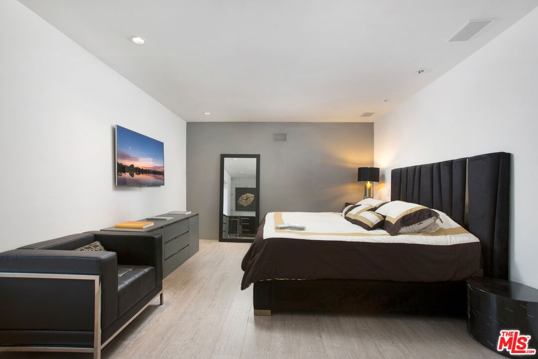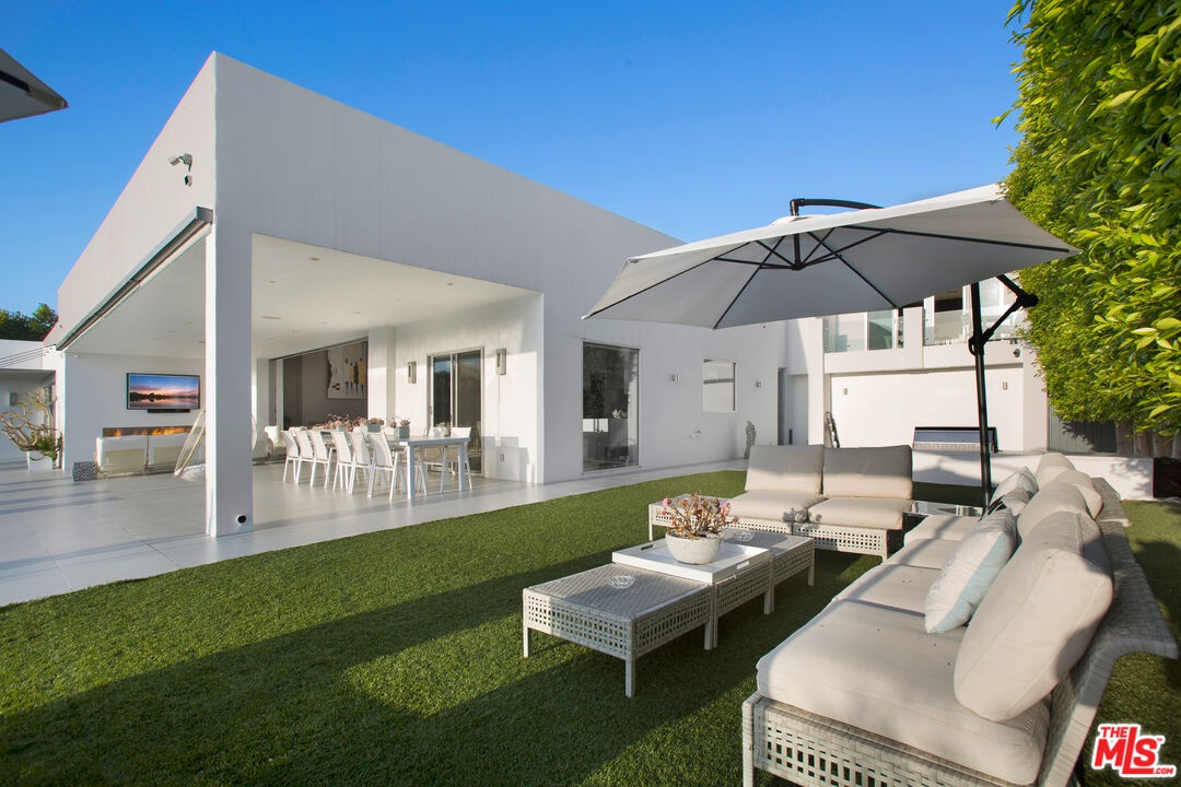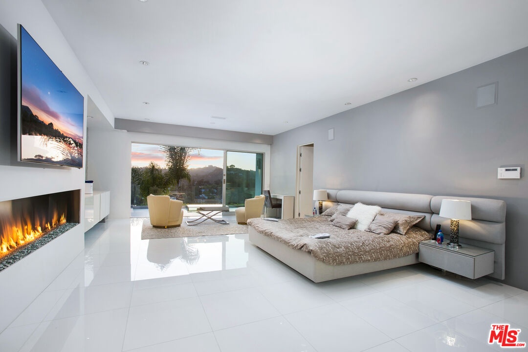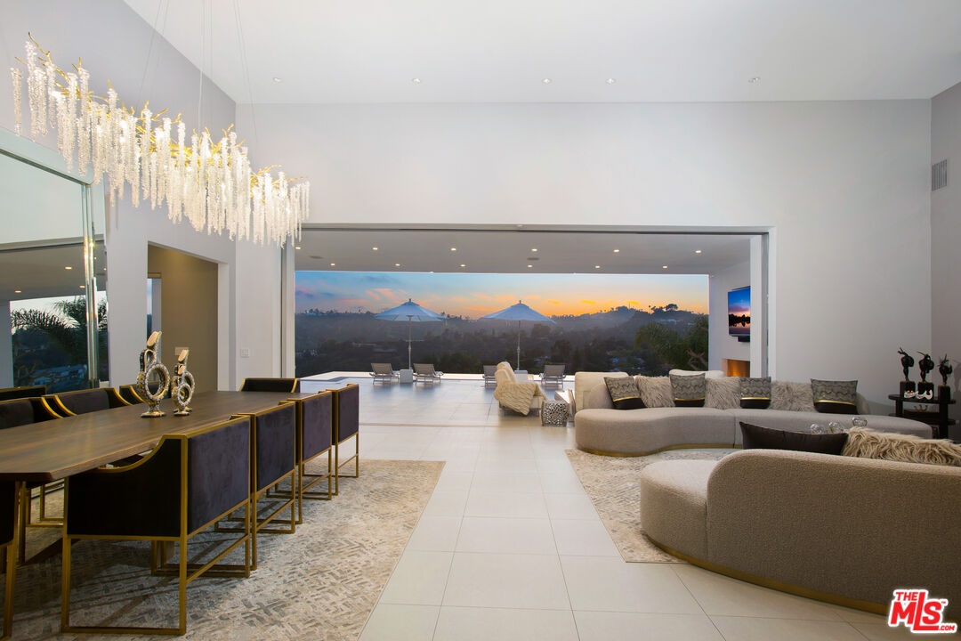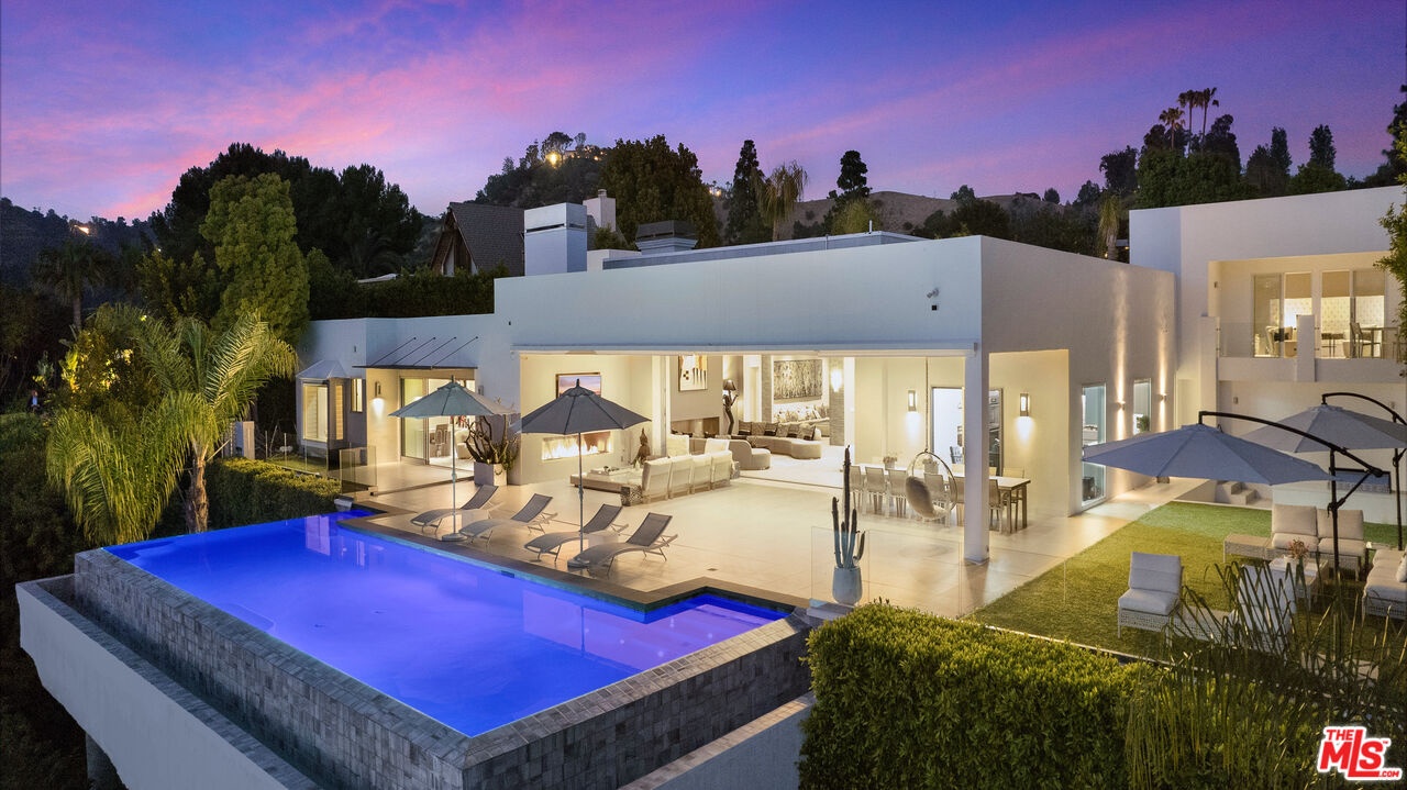 Privately gated and positioned at the top of a quiet Beverly Hills cul-de-sac, this refined architectural contemporary residence offers exceptional privacy, dramatic volume, and sweeping canyon and sunset views.A soaring great room with approximately 15-foot ceilings opens seamlessly through Fleetwood pocket doors to an infinity-edge pool and expansive outdoor living areas, creating a true indoor-outdoor experience. Designed for both elegant entertaining and everyday living, the home captures natural light, air, and panoramic views from nearly every angle.The primary suite serves as a private retreat, featuring dual spa-style bathrooms, generous walk-in dressing rooms, and motorized blackout and daytime shades. Four additional en-suite bedrooms are thoughtfully positioned for comfort and discretion, including a separate guest wing and lower-level suites. Additional highlights include a custom chef's kitchen with professional-grade Miele appliances, media room, executive office, entertaining bar, staff quarters, and multiple covered outdoor living and dining areas complete with fireplace and television. The infinity-edge pool, grassy terrace, and covered loggia are perfectly oriented to maximize the serene hillside setting and expansive outlooks. Finished with custom limestone and hardwood flooring, curated designer details, and state-of-the-art security, this architectural estate offers a rare combination of privacy, views, and refined modern living just minutes from Rodeo Drive, The Beverly Hills Hotel, and the city's most prestigious dining and shopping destinations.