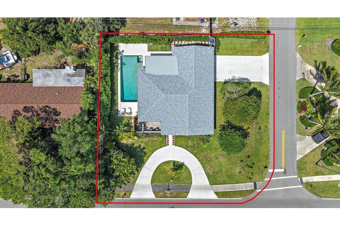 Situated on a spacious corner lot in the highly desirable Jupiter in the Pines neighborhoodwith no HOAthis property offers incredible functionality, including two driveways: a circular one accommodating up to four cars and a second driveway with room for four more, in addition to a two-car garage. There's even room to park a trailer or boat on one side of the home, with the other side ideal for a garden or workshop.