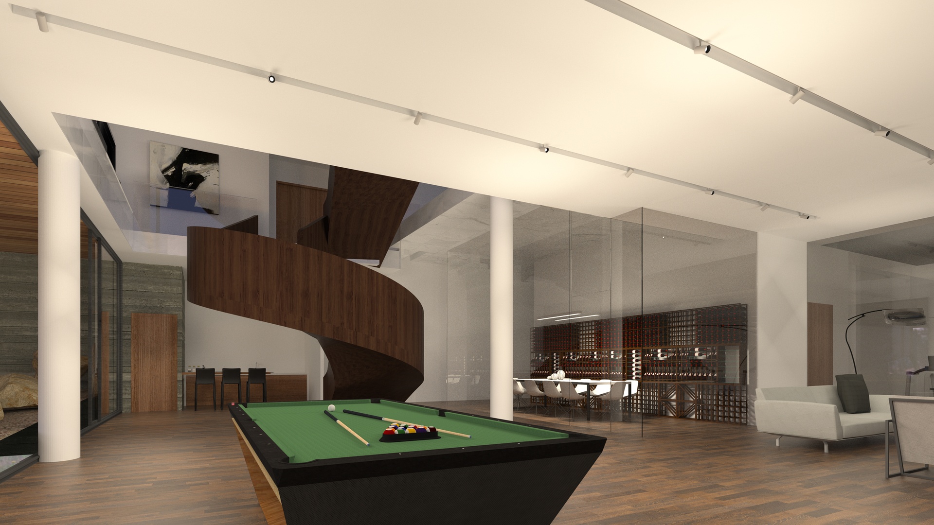 Basement level with multipurpose spaces