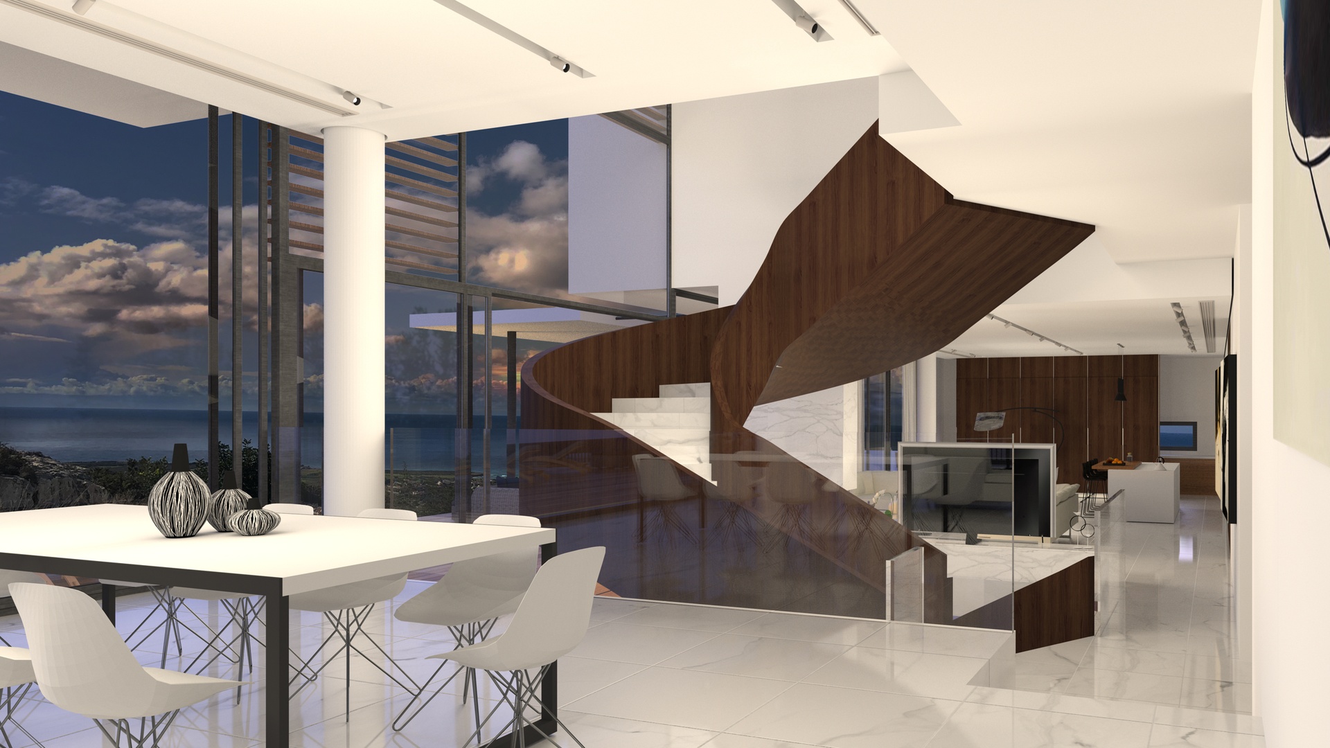 The villa unfolds across multiple levels, blending contemporary design with natural stone, glass expanses, and clean geometric lines. Floor-to-ceiling windows flood the interiors with natural light, while expansive terraces, infinity swimming pool, and decorative water features create a seamless indoor-outdoor lifestyle. Every detail — from bespoke Italian kitchens to marble finishes — has been curated to the highest international standards.