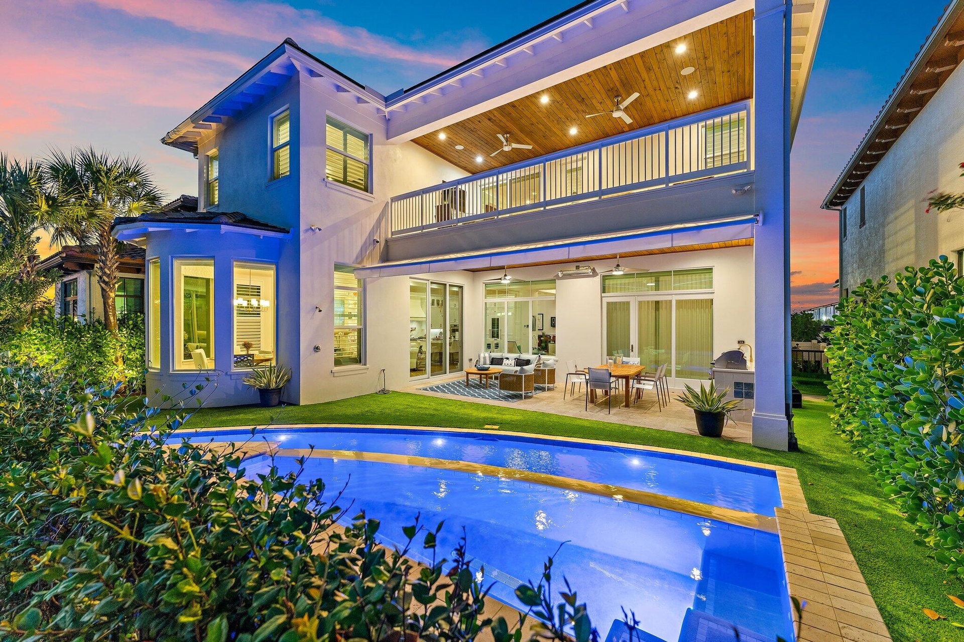 Exceptional opportunity to own a 2024 Modern Masterpiece in Sold Out ALTON! This rare offering presents a chance to own a fully turnkey, move in ready luxury home in the heart of Palm Beach Gardens. This spacious+ refined residence was custom designed to offer 6 en-suite bedrooms as well as a generous enclosed loft + private office. Main living areas are grand in size and masterfully curated, with elevated design elements in Every detail. Noteworthy upgrades include a Brilliant Chef's kitchen, designed for serious cooking (SKS + Sub Zero appliances, 4 Ovens, 2 Dishwashers) with a roomy walk in pantry. Additionally the home is outfitted with whole home automation, architectural lighting and upgraded electrical. A stylish fireplace, custom millwork + built ins and fully customized closets create a air of ease through enhanced detail + functionality. The primary bedroom suite is a dream, offering designer window treatments, a generous wardrobe room + a zen bath with highest end features. The 5 guest rooms are all grand in size and elegantly finished with walk in closets and ensuite baths. Oudoor living space offers the finest in Florida living, with a stunning pool + spa enhanced by wide lake views. A high end custom outdoor kitchen + dining area (with wine fridge) create a perfect space for entertaining. The prime Alton location is one of Palm Beach Gardens' most vibrant and desirable neighborhoods, along the coveted Donald Ross corridor. Owners enjoy an array of resort amenities as well as easy proximity to areas best beaches, schools, shopping, dining and cultural venues... truly a fabulous place to call home!
