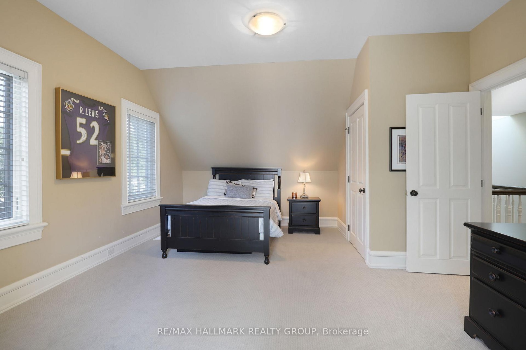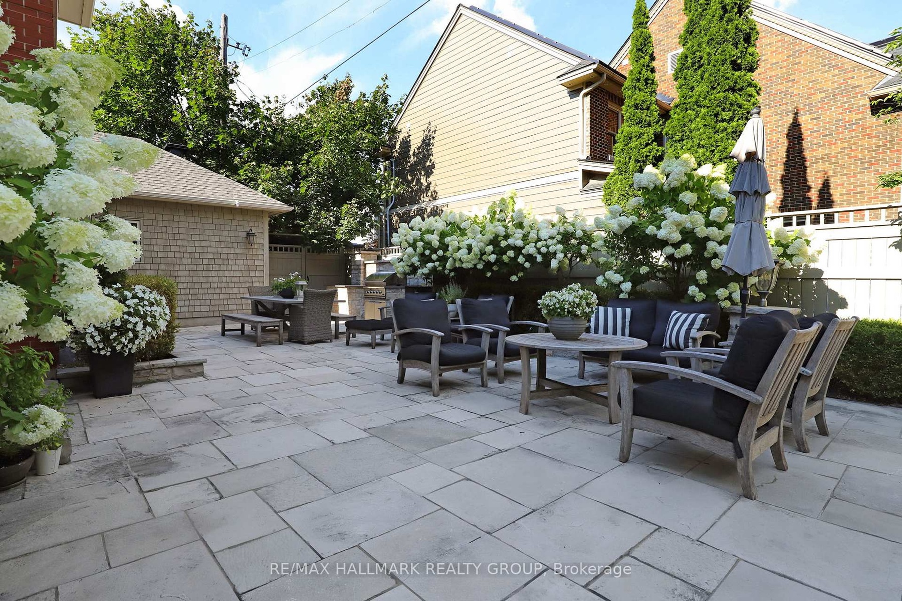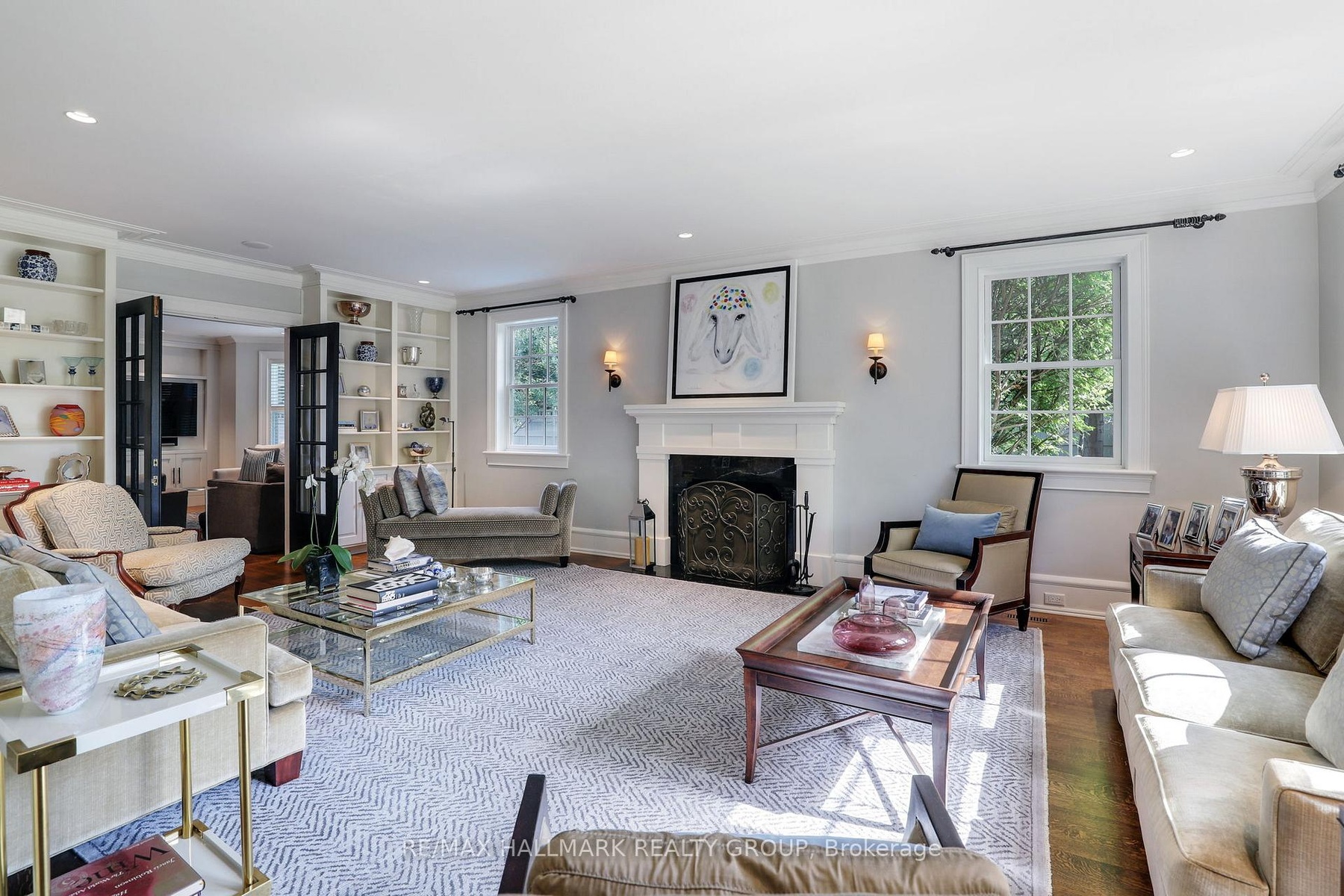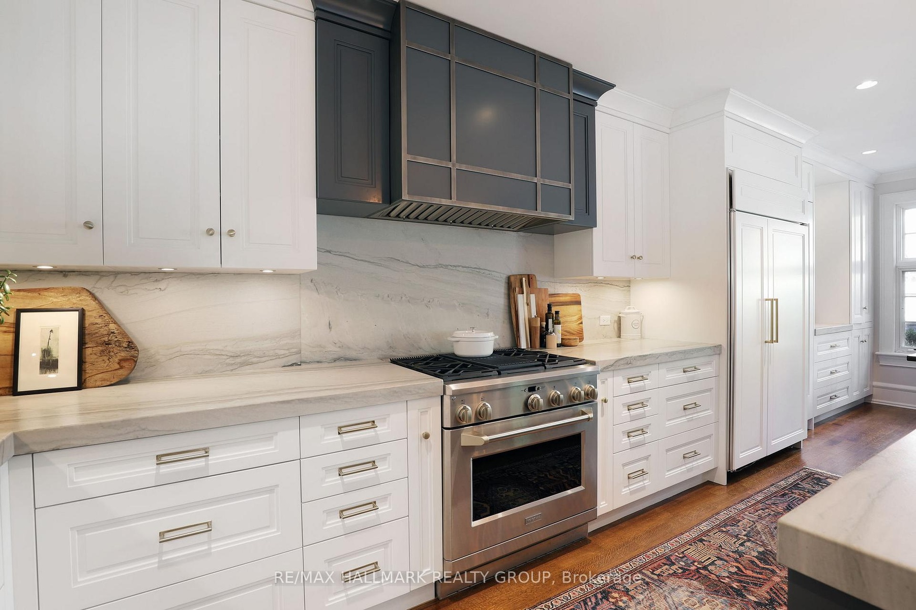 A rare offering in Ottawa's prestigious Island Park neighbourhood - 525 Piccadilly Avenue is a Barry Hobin designed corner estate with interiors by 2H Design, blending heritage character and modern luxury across four levels. The grand foyer sets the tone with soaring ceilings, rich hardwood, and detailed millwork. Formal living and dining rooms feature original hutches, restored shelving, and a marble fireplace. A spacious family room with bay windows, marble gas fireplace, and custom cabinetry opens to the designer kitchen and outdoor living. The kitchen showcases antique mirrored cabinetry, leathered quartz counters, a custom range hood with gas range and steam oven, wine tower, and oversized island paired with a breakfast room complete with serving area and office nook. A herringbone marble tiled mudroom with custom cubbies connects via breezeway from the over-sized garage for discreet family entry. French doors lead to a resort-style backyard with terraced dining, built-in BBQ kitchen, gunite pool with spa and water feature, and multiple lounge decks surrounded by manicured gardens. The second level offers a serene primary suite with bay window views, travertine and limestone ensuite, and dual walk-in closets. Two more bedrooms incl. another with ensuite as well as one currently used as den/office, and four-piece bath complete the floor. The third level is host to spacious bedrooms with full bath between the two. The lower level includes a recreation room, gym with infrared sauna, custom wine cellar, nanny/guest suite with bath, laundry, and ample storage. Timeless architecture, designer finishes, and exceptional outdoor living make this Island Park residence an extraordinary opportunity.
