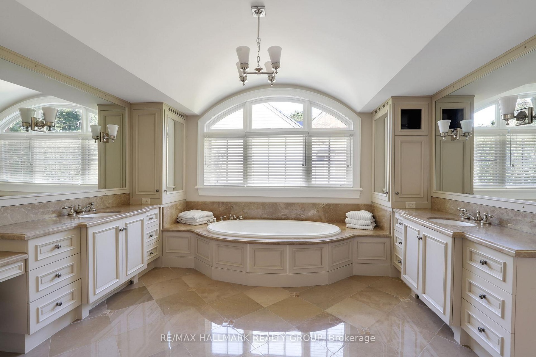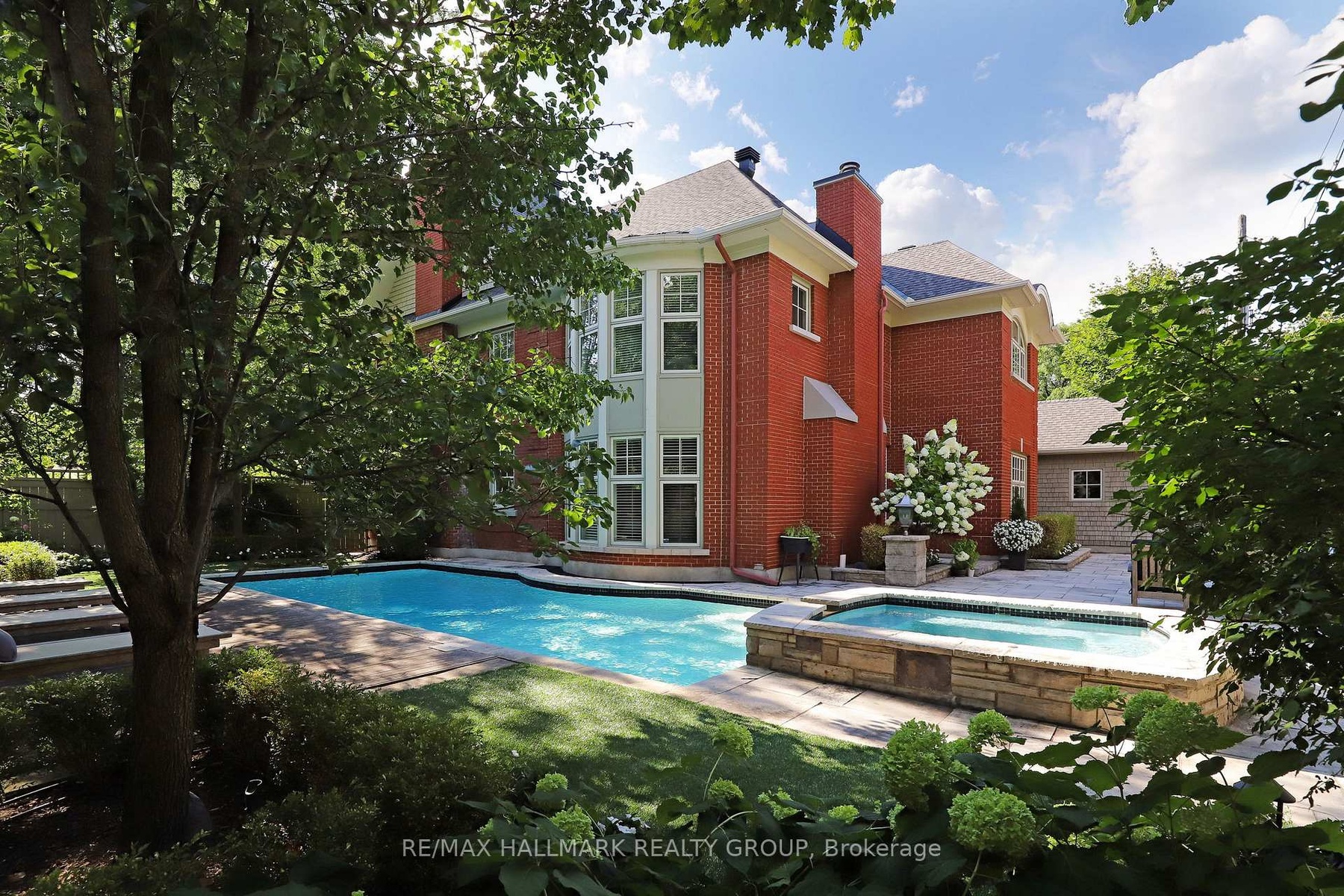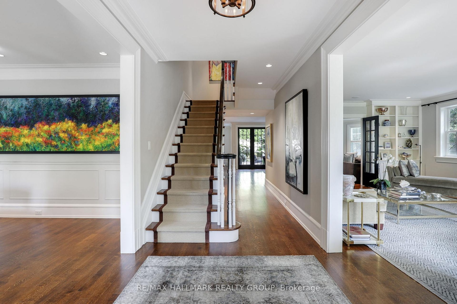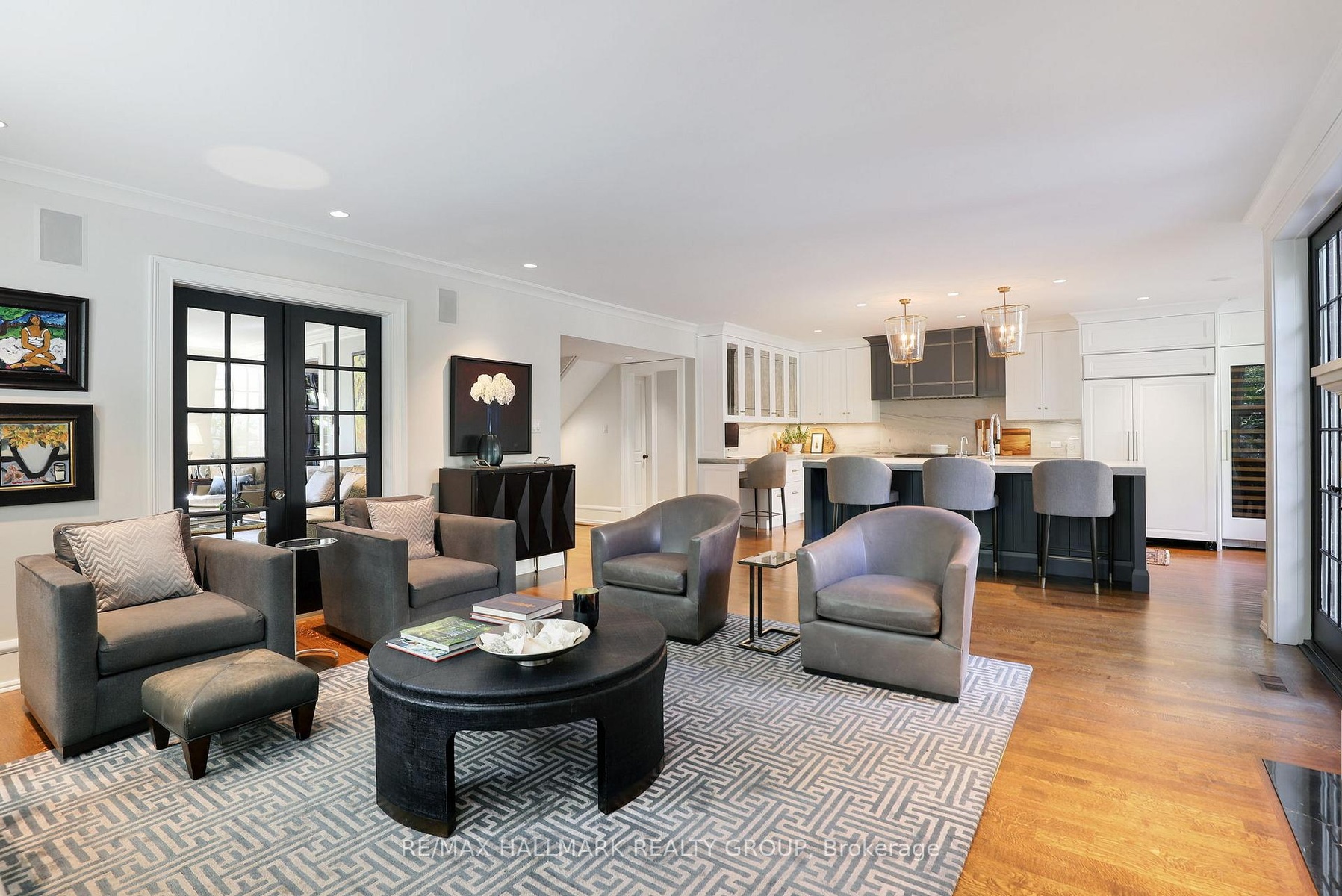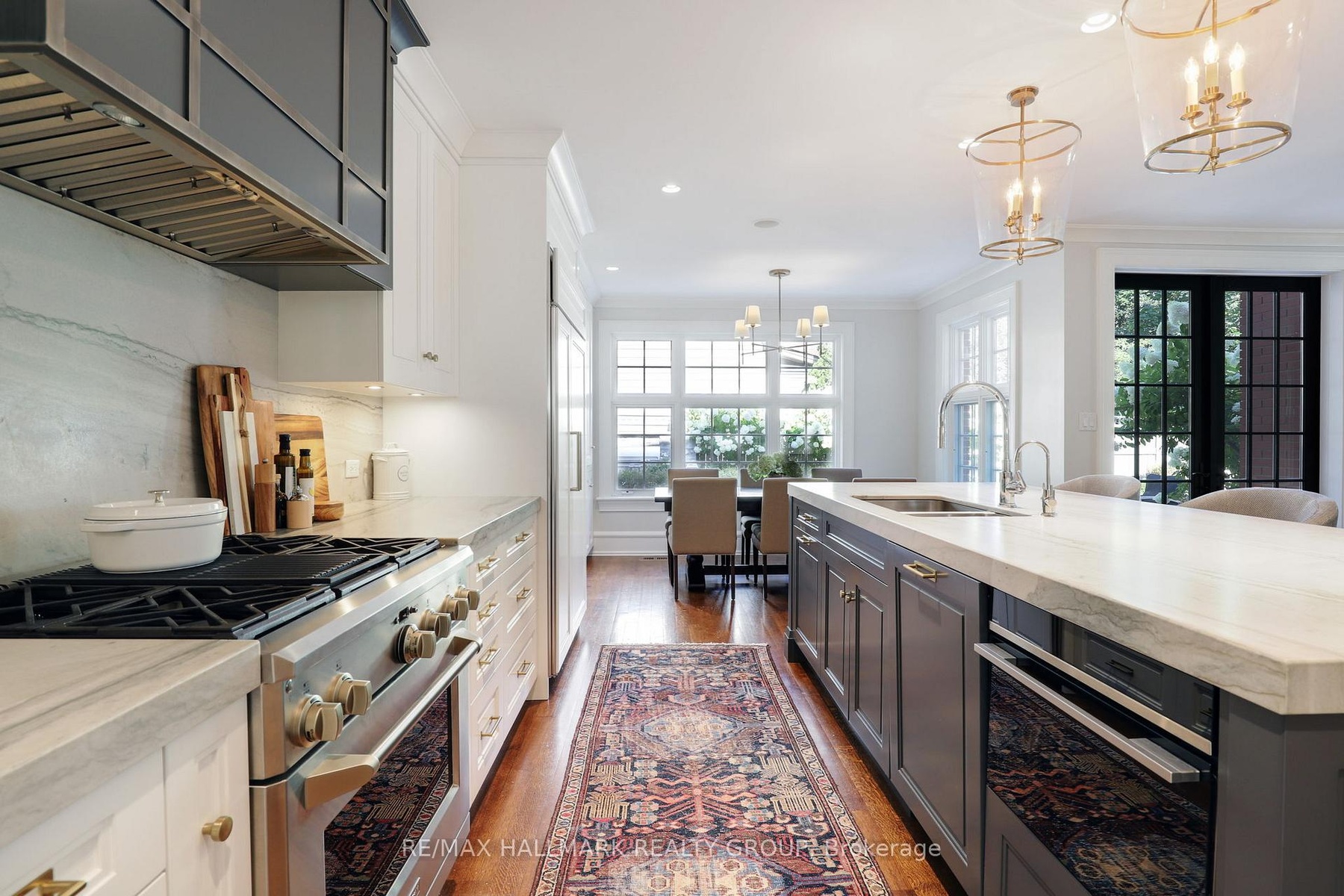 A rare offering in Ottawa's prestigious Island Park neighbourhood - 525 Piccadilly Avenue is a Barry Hobin designed corner estate with interiors by 2H Design, blending heritage character and modern luxury across four levels. The grand foyer sets the tone with soaring ceilings, rich hardwood, and detailed millwork. Formal living and dining rooms feature original hutches, restored shelving, and a marble fireplace. A spacious family room with bay windows, marble gas fireplace, and custom cabinetry opens to the designer kitchen and outdoor living. The kitchen showcases antique mirrored cabinetry, leathered quartz counters, a custom range hood with gas range and steam oven, wine tower, and oversized island paired with a breakfast room complete with serving area and office nook. A herringbone marble tiled mudroom with custom cubbies connects via breezeway from the over-sized garage for discreet family entry. French doors lead to a resort-style backyard with terraced dining, built-in BBQ kitchen, gunite pool with spa and water feature, and multiple lounge decks surrounded by manicured gardens. The second level offers a serene primary suite with bay window views, travertine and limestone ensuite, and dual walk-in closets. Two more bedrooms incl. another with ensuite as well as one currently used as den/office, and four-piece bath complete the floor. The third level is host to spacious bedrooms with full bath between the two. The lower level includes a recreation room, gym with infrared sauna, custom wine cellar, nanny/guest suite with bath, laundry, and ample storage. Timeless architecture, designer finishes, and exceptional outdoor living make this Island Park residence an extraordinary opportunity.