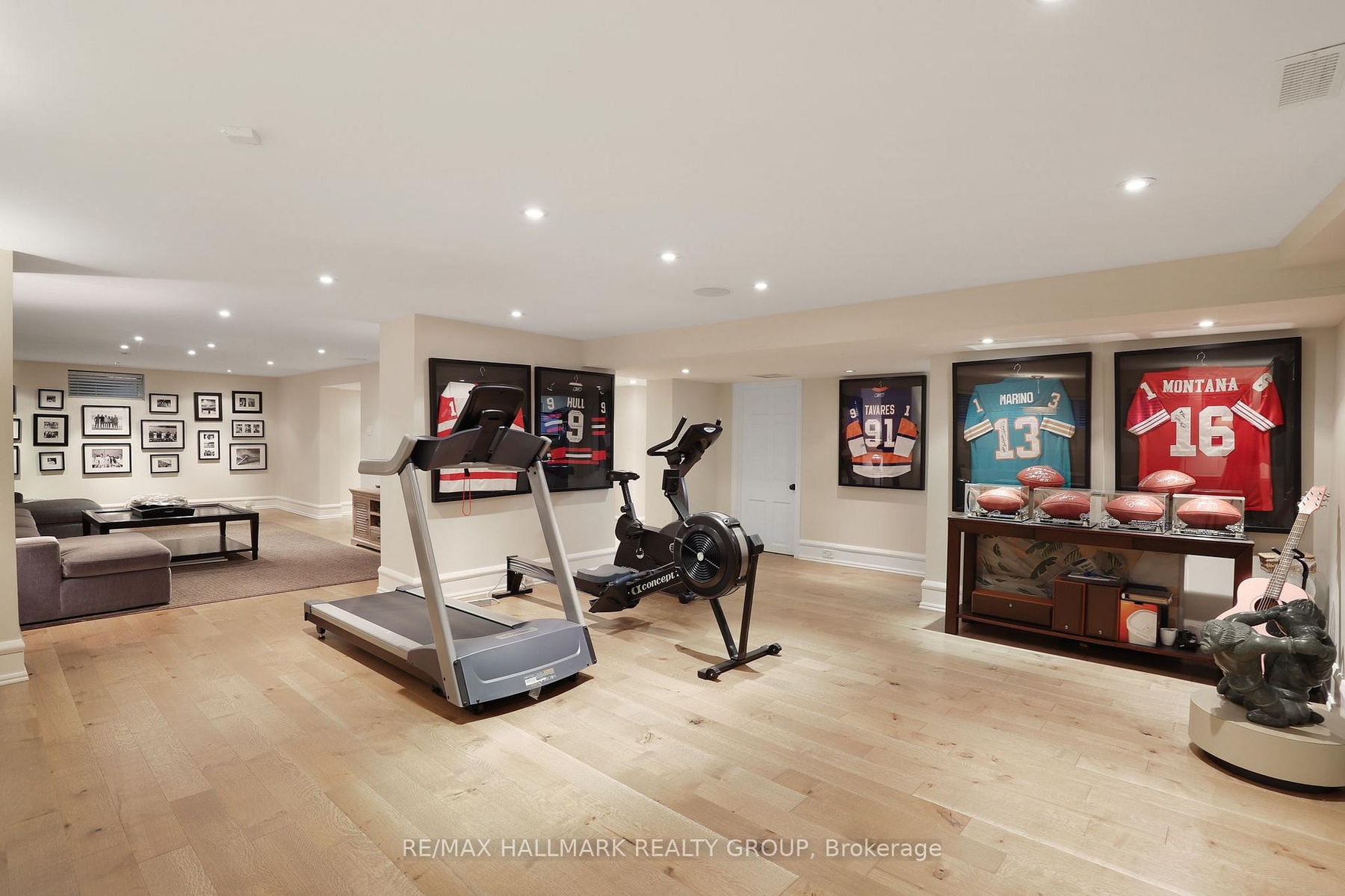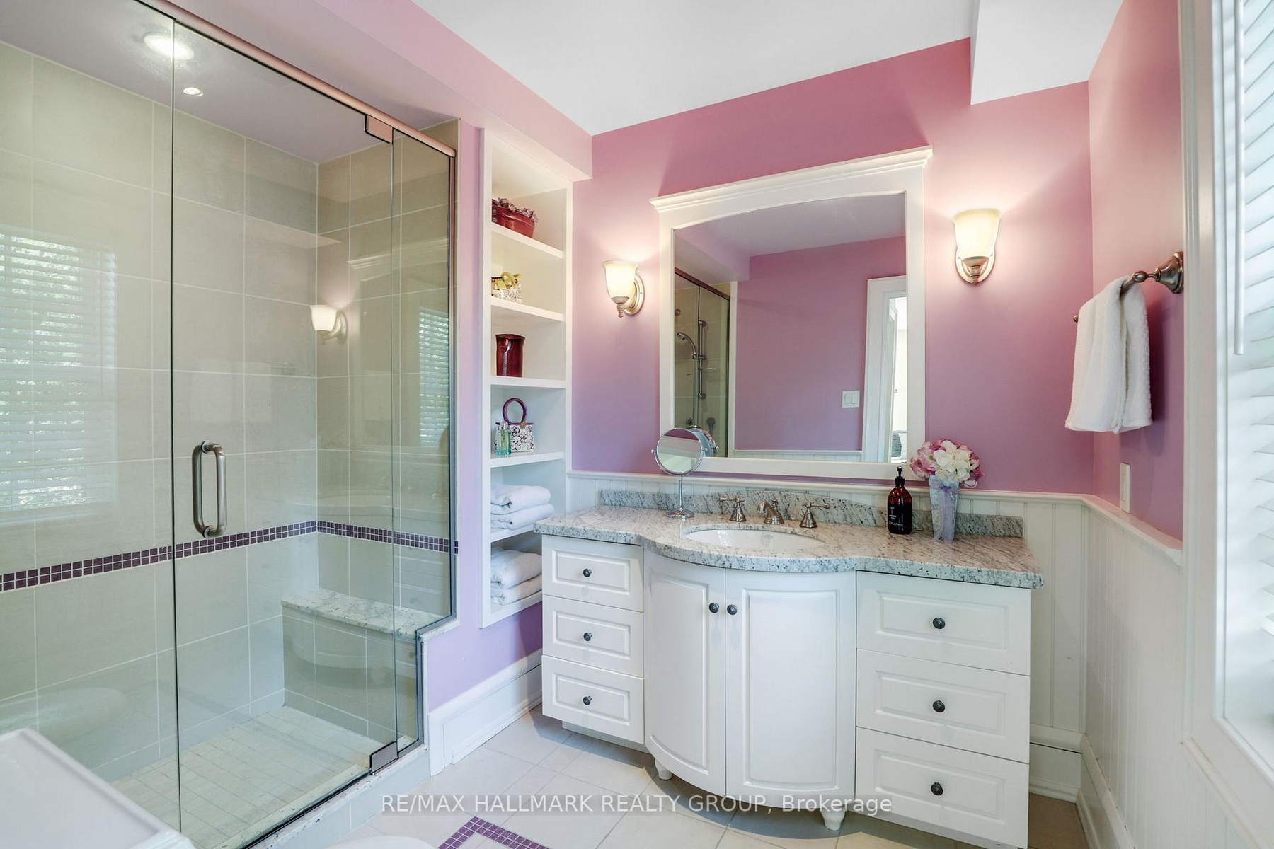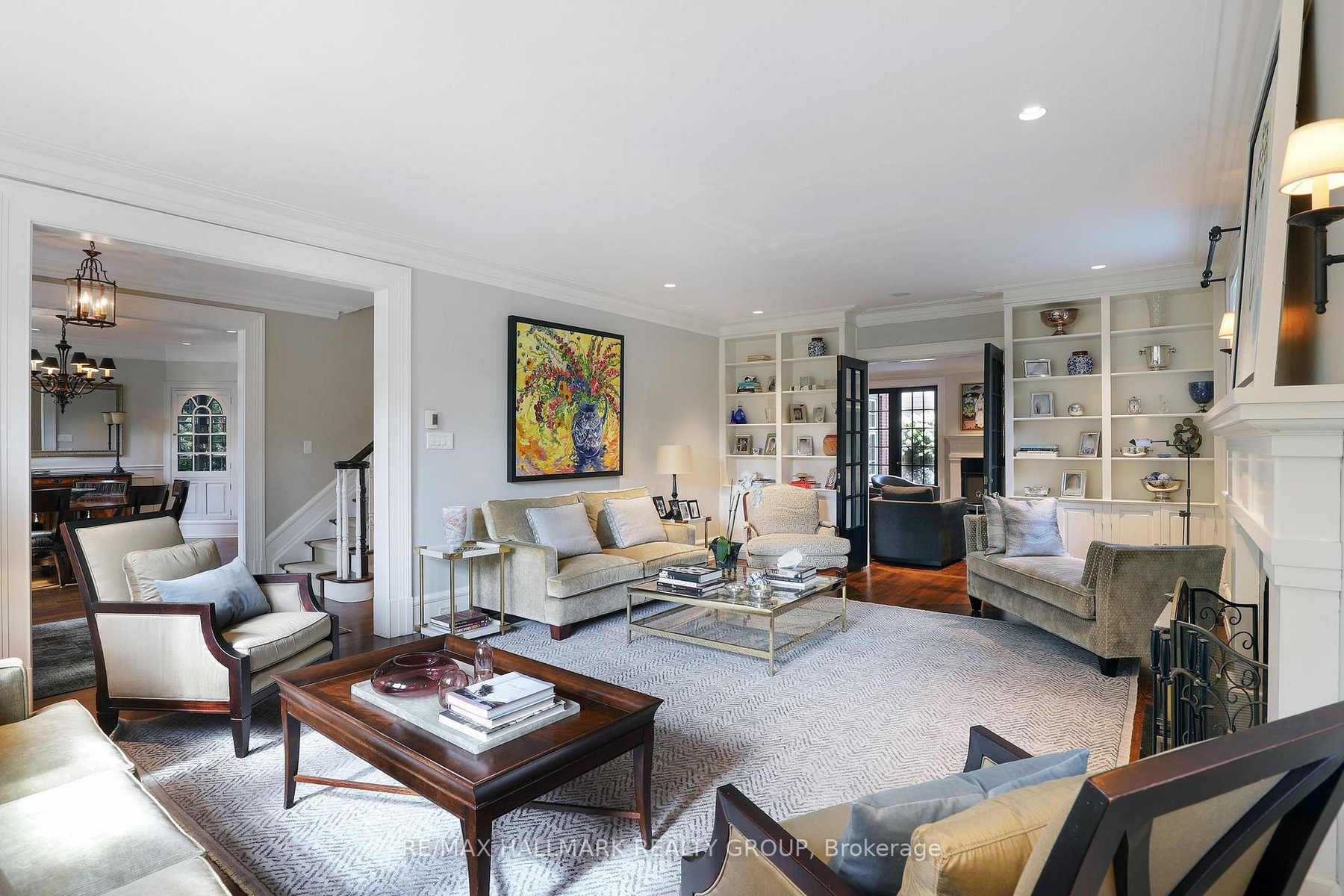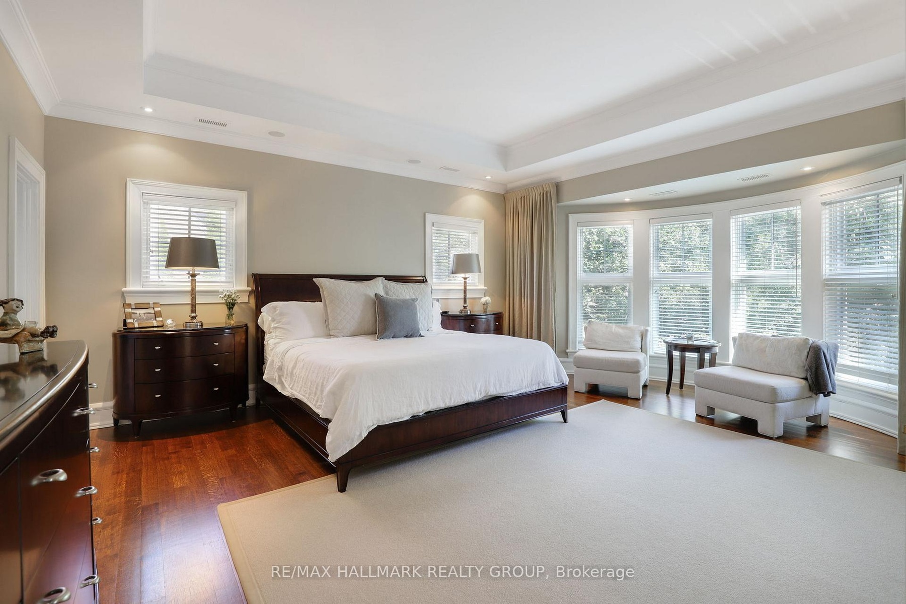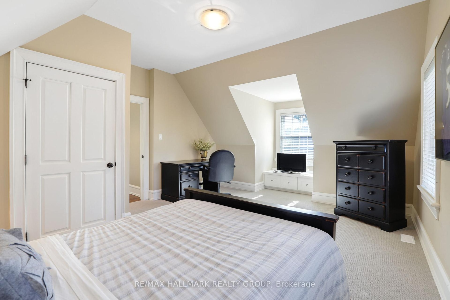 A rare offering in Ottawa's prestigious Island Park neighbourhood - 525 Piccadilly Avenue is a Barry Hobin designed corner estate with interiors by 2H Design, blending heritage character and modern luxury across four levels. The grand foyer sets the tone with soaring ceilings, rich hardwood, and detailed millwork. Formal living and dining rooms feature original hutches, restored shelving, and a marble fireplace. A spacious family room with bay windows, marble gas fireplace, and custom cabinetry opens to the designer kitchen and outdoor living. The kitchen showcases antique mirrored cabinetry, leathered quartz counters, a custom range hood with gas range and steam oven, wine tower, and oversized island paired with a breakfast room complete with serving area and office nook. A herringbone marble tiled mudroom with custom cubbies connects via breezeway from the over-sized garage for discreet family entry. French doors lead to a resort-style backyard with terraced dining, built-in BBQ kitchen, gunite pool with spa and water feature, and multiple lounge decks surrounded by manicured gardens. The second level offers a serene primary suite with bay window views, travertine and limestone ensuite, and dual walk-in closets. Two more bedrooms incl. another with ensuite as well as one currently used as den/office, and four-piece bath complete the floor. The third level is host to spacious bedrooms with full bath between the two. The lower level includes a recreation room, gym with infrared sauna, custom wine cellar, nanny/guest suite with bath, laundry, and ample storage. Timeless architecture, designer finishes, and exceptional outdoor living make this Island Park residence an extraordinary opportunity.