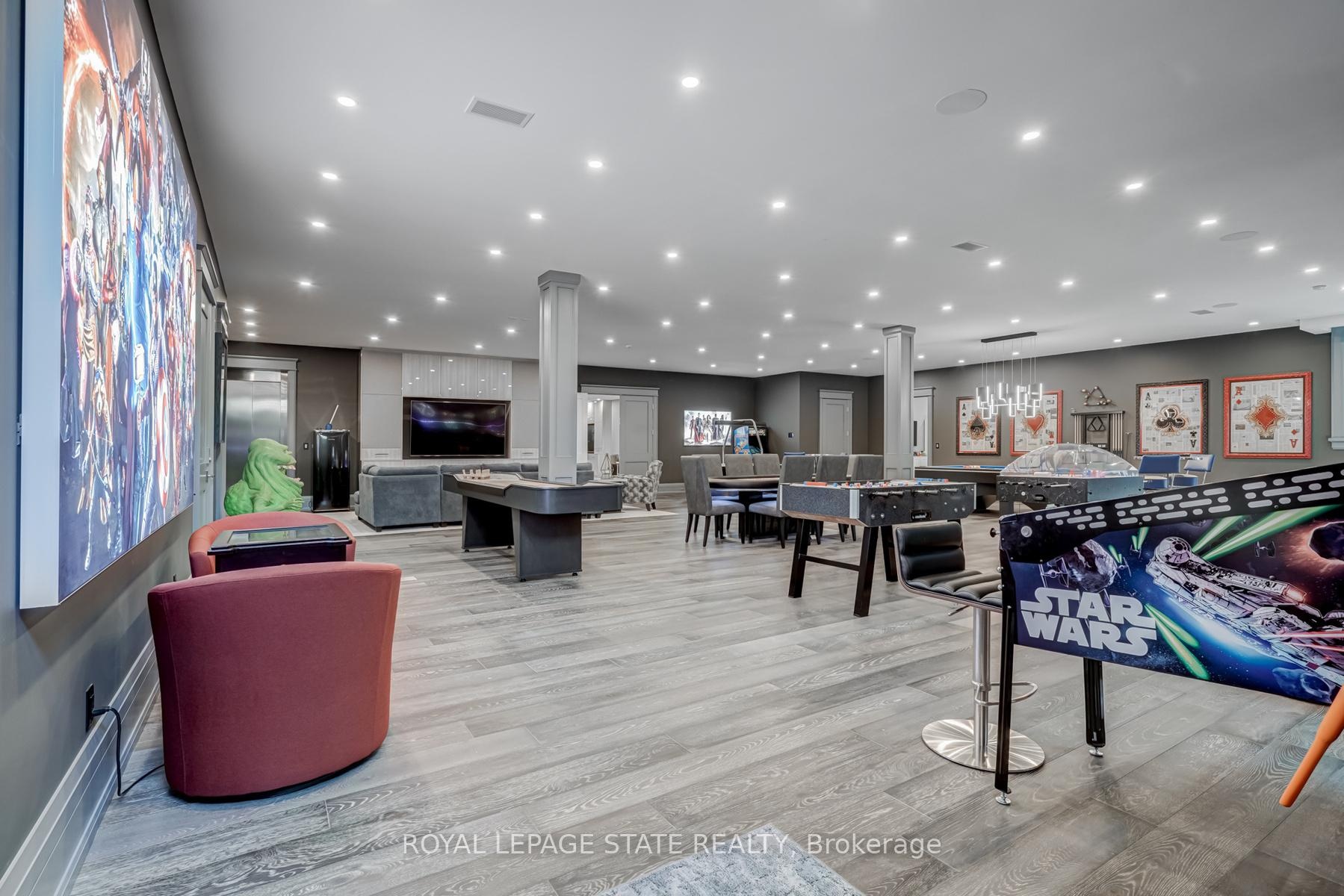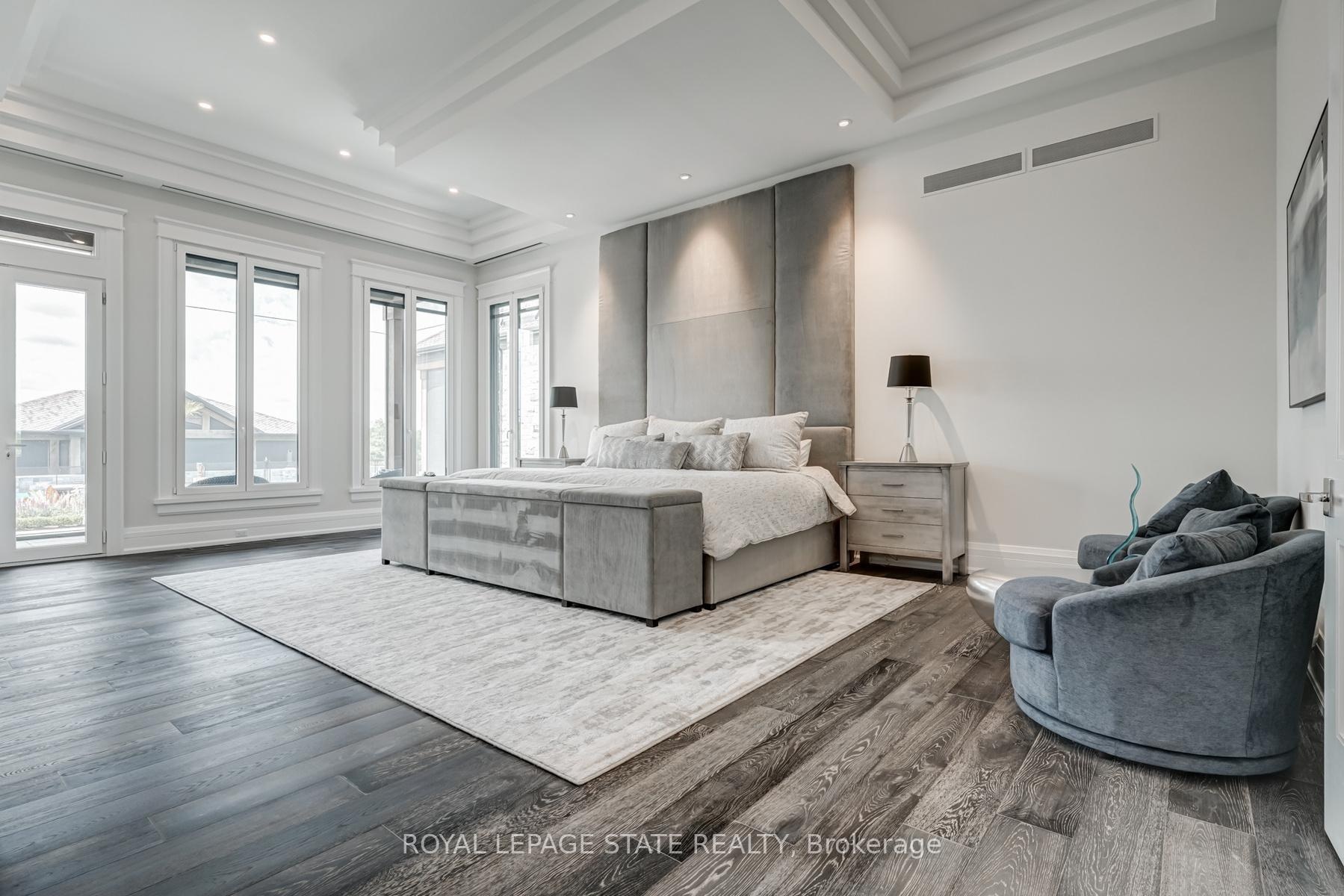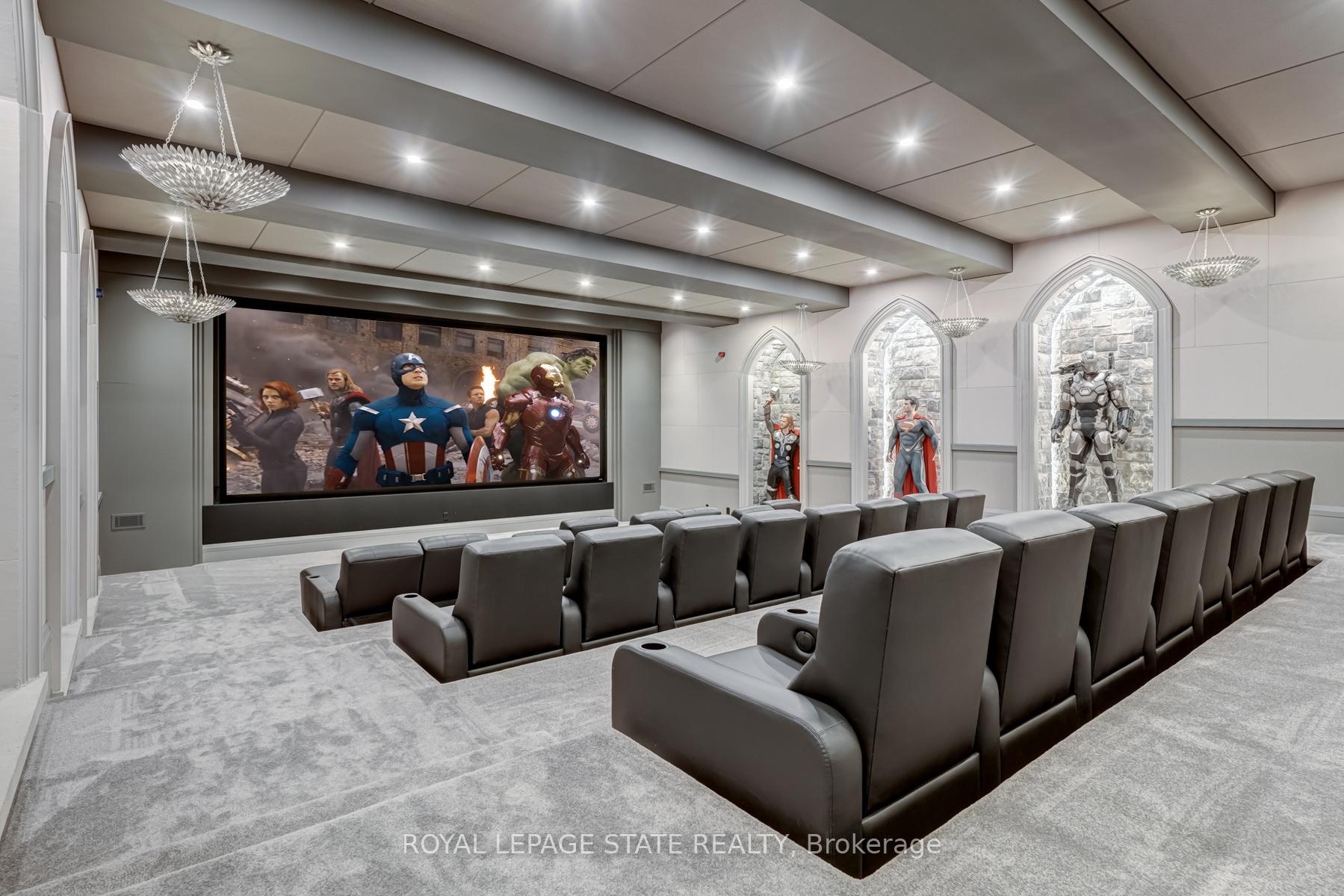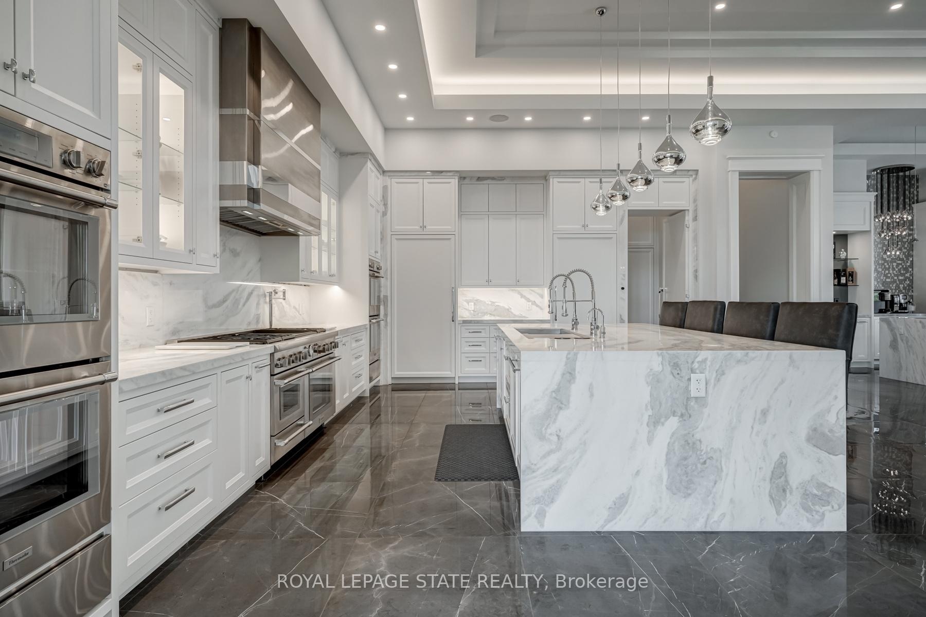 Set amidst a 5.2-acre estate, this extraordinary 32,000+ sq ft mansion offers unparalleled luxury and privacy. The gated and secured property features a stunning 1/3-acre aerated pond leading to a sprawling contemporary bungalow with lofted in-law quarters and a 5,210 sq ft detached garage with lounge, wash bay, and private gas pump-ideal for car enthusiasts.Surrounded by serene countryside, yet minutes from the heart of Ancaster, the renowned Hamilton Golf & Country Club, and Highway 403, offering both seclusion and convenience. Inside, every room showcases soaring 14 to 18-foot custom moulded ceilings, 32-inch porcelain flooring, and the highest quality materials and craftsmanship. The state-of-the-art home features whole-home automation by Control4. Spacious living areas feature custom granite walls with Town & Country fireplaces. A gourmet kitchen is equipped with top-tier appliances, including Sub-Zero, Thermador, and Miele. The luxurious lanai is perfect for entertaining, with heated Eramosa flagstone, a full outdoor kitchen, 72" Woods gas fireplace, and phantom screens. The opulent primary suite includes a private patio with hot tub and an expansive dressing room. The ensuite features heated herringbone floors, a soaker tub with fireplace, towel warmer drawers and a digital rain shower. The opposite wing offers three additional bedroom suites, each with walk-in closets and ensuites. A Cambridge elevator provides access to the entertainer's dream basement, with a party room, full bar, professional gym with sauna and steam shower, games room, and a state-of-the-art home theatre. This 24-seat Dolby Atmos theatre features a 254-inch screen, 24-foot ceiling height, and a Kaleidoscope movie server for the ultimate cinematic experience. Outdoor amenities include a 35' x 75' heated pool, a 14-person hot tub, and an entertainment cabana with a media area and hosting bar. A regulation-size sports court and a children's playground complete this family-friendly estate.