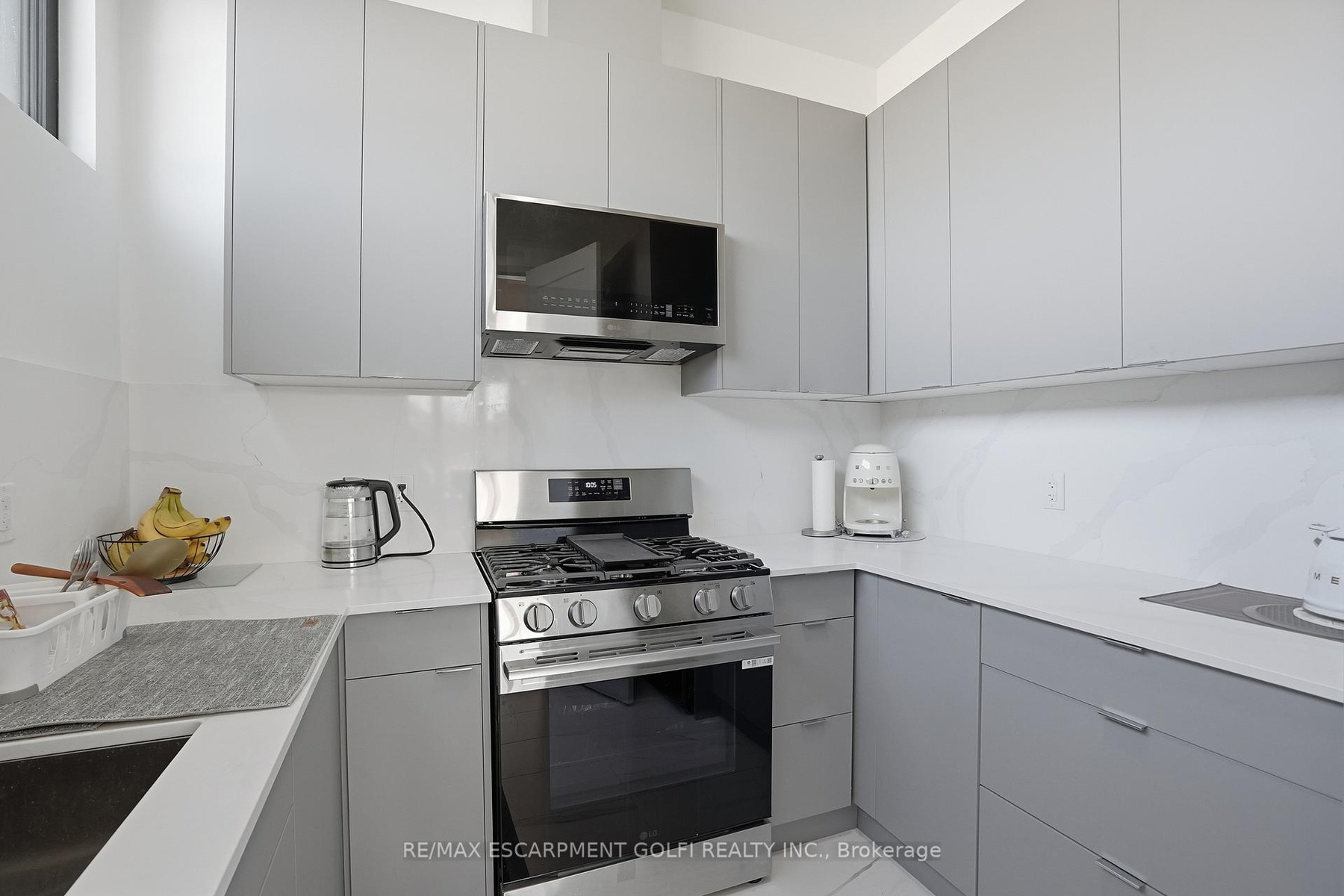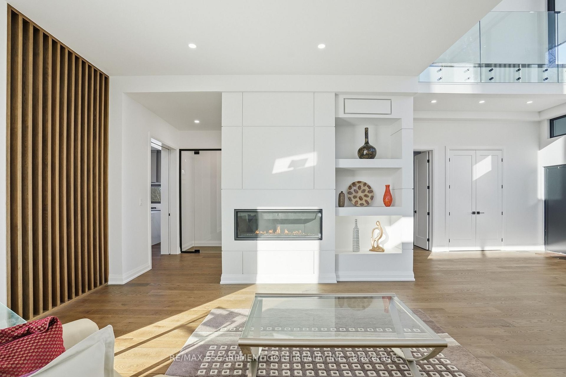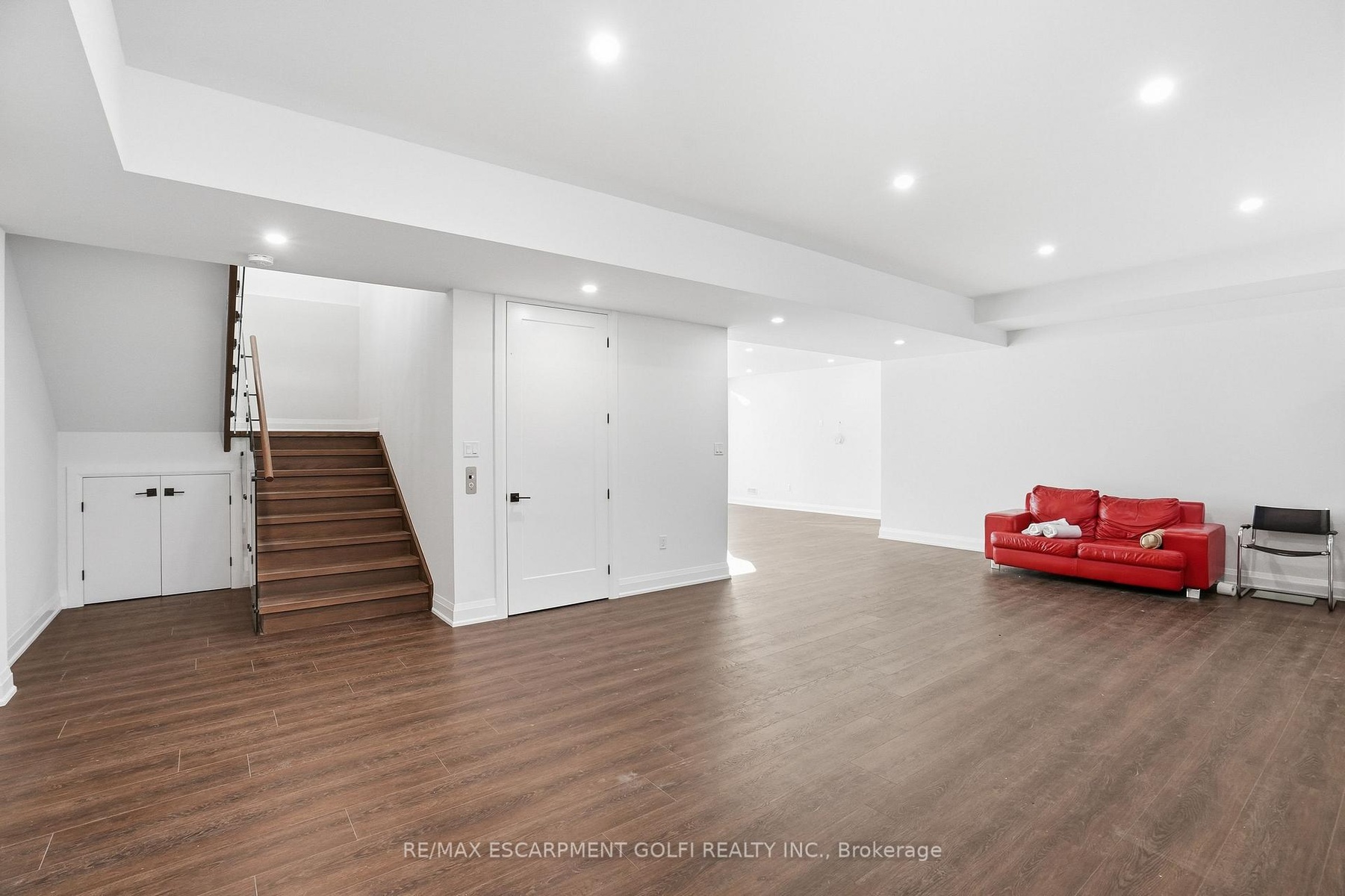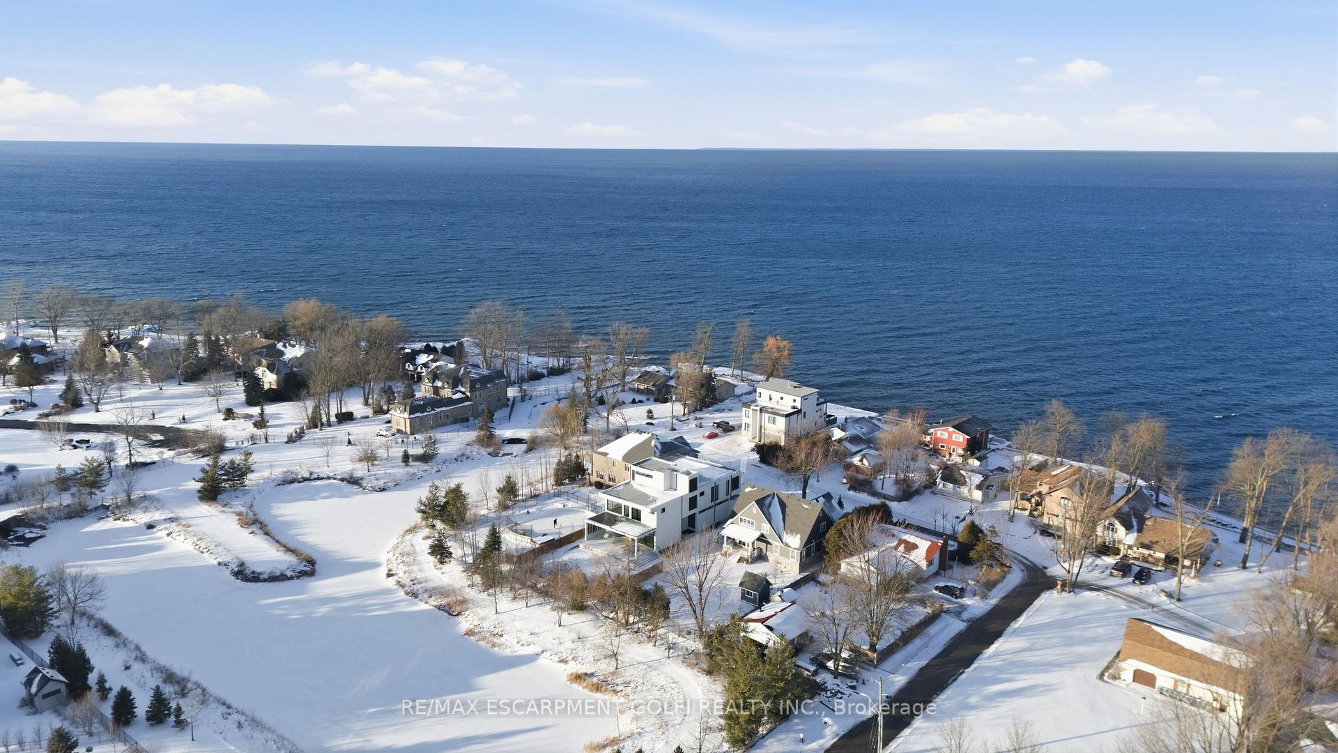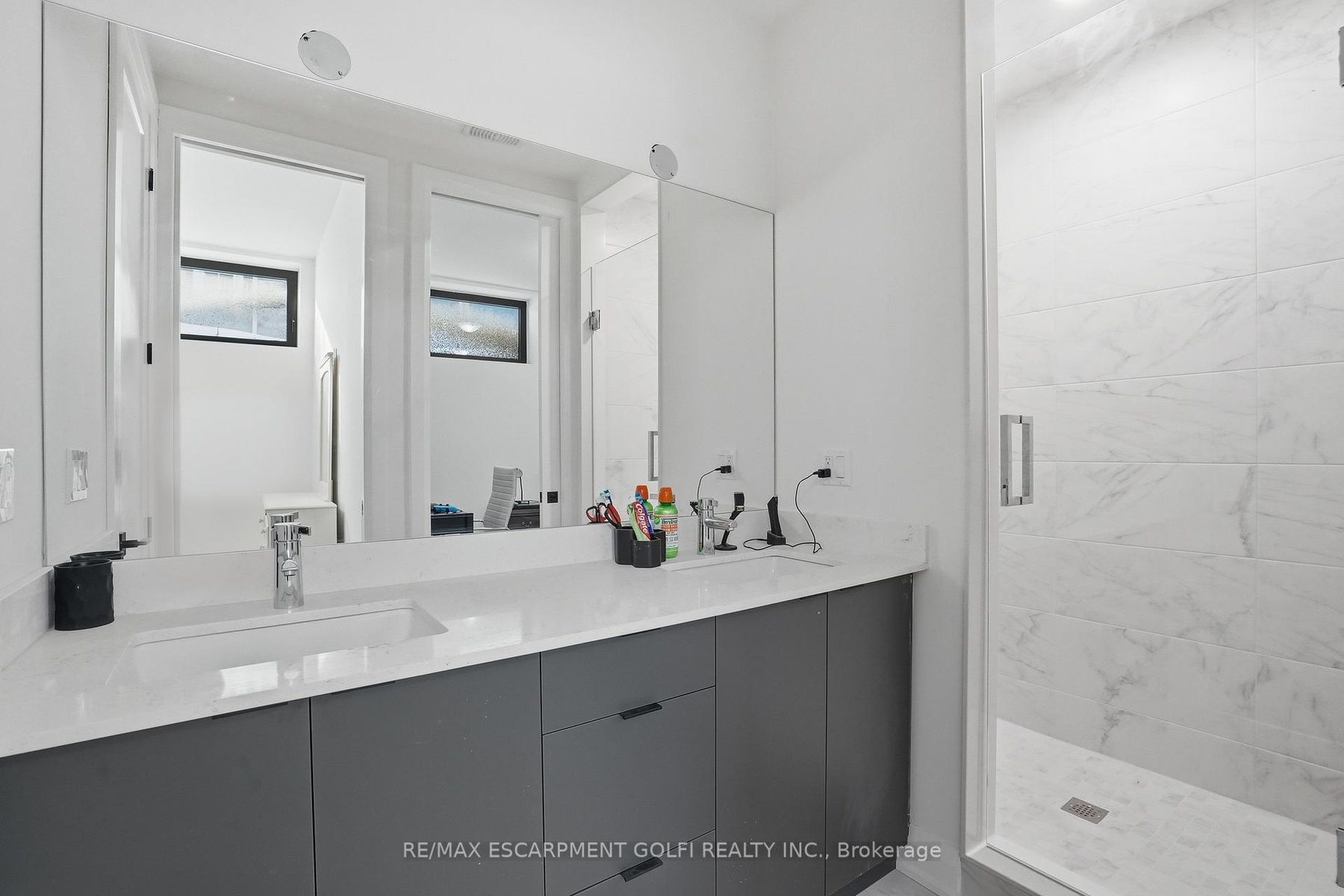 An exceptional newly built residence in Stoney Creek, completed in 2025 and offering nearly 7,500 square feet of refined living space. Designed to maximize natural light, the home features expansive floor to ceiling windows, clean contemporary lines, and elevated finishes throughout. A private elevator provides seamless access to all levels. The main floor opens into a dramatic two storey living room and flows into a statement chef's kitchen with waterfall island and fully equipped prep kitchen. Dining and family rooms are framed by floor to ceiling bifold doors leading to a covered deck and spacious backyard, creating effortless indoor-outdoor living. A private office and powder room complete the level. Upstairs, four bedrooms each offer private ensuites, while the master bedroom features bifold doors to a covered balcony with lake views, a generous walk-in closet, and a spa inspired bath with soaker tub. The third level includes a kitchenette and rooftop terrace with uninterrupted Lake Ontario views. The bright basement offers a large rec room with full glass walkout, two bedrooms with shared ensuite, private office, and additional powder room. A rare opportunity for contemporary luxury in a premier lake oriented community.