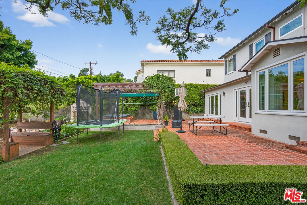 Located on a quiet, tree-lined street north of Montana Avenue, 434 21st Place is a beautifully updated 4-bedroom, 3-bath home offering 2,560 square feet of inviting, light-filled living space. The inviting living room features rich hardwood floors, classic crown molding, a fireplace, and expansive picture windows that frame lush greenery and flood the space with natural light. Its open layout flows effortlessly into the breakfast area and kitchen, creating an ideal setting for relaxed daily living and seamless entertaining. Elegant French doors lead directly to the backyard retreat, bringing the outdoors in and enhancing the home's sense of indoor-outdoor harmony. The remodeled kitchen is bright, timeless, and designed for both style and function. It showcases crisp white cabinetry, marble countertops, tile flooring, and high-end stainless steel appliances, including a Sub-Zero refrigerator and a Viking double-door oven. A charming breakfast nook overlooks the garden and opens seamlessly to the outdoors, creating a light-filled, airy space that reinforces the home's open and inviting atmosphere. The flexible floor plan features two bedrooms and bathrooms on the main level, including one with an en-suite bath ideal for guests, extended family, or a home office. A second downstairs bathroom thoughtfully integrates a stackable washer and dryer for added convenience. Upstairs, two additional bedrooms and bathrooms provide privacy and separation, anchored by a spacious primary suite with its own luxurious en-suite bathroom. The backyard is a true retreat beautifully landscaped with mature trees, raised garden beds, and multiple areas for dining and entertaining. A pergola-covered patio sets the stage for al fresco evenings, while a private yard offers space to play, garden, or unwind. Completing this serene outdoor haven, an inviting spa provides the perfect spot to relax. Set in the coveted 90402 zip code, moments from Montana Avenue's boutiques, dining, top-rated schools, and the beach, this home blends classic Santa Monica charm with modern comfort in an exceptional location.