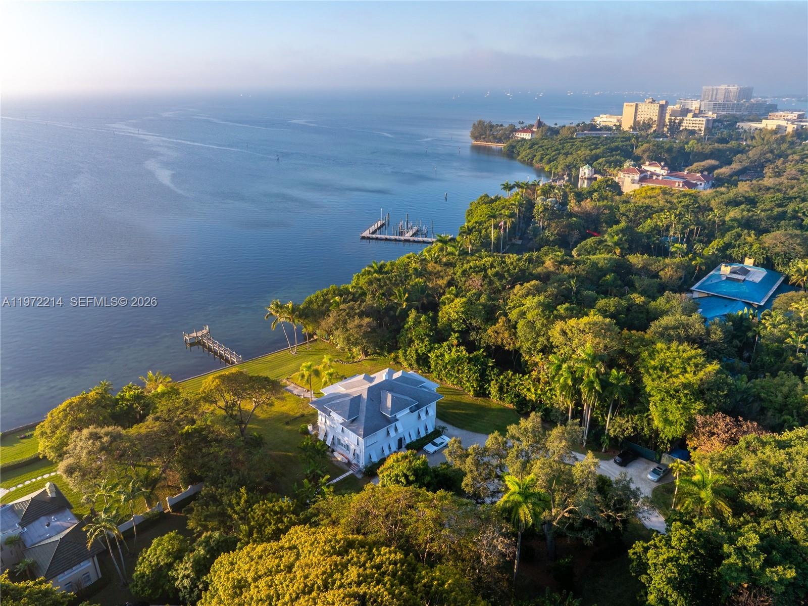 With 170+ feet directly on Biscayne Bay and spanning 1.61 acres, this one-of-a-kind waterfront estate sits on iconic Brickell Avenue in Coconut Grove, FL. Offering 5,705 SF of living area with 7 bedrooms and 5 baths, the 3-story residence is extraordinary — yet it is the land, location, and setting that make it truly irreplaceable. Set along the famed “Millionaire’s Row” on Brickell Ave and positioned high on the oolite limestone ridge of Silver Bluff, the property enjoys unobstructed bay views and remarkable privacy. Just minutes from the heart of the Grove’s bustling restaurant and shopping scene, next to the Vizcaya Museum & Gardens, this secluded location offers easy access to Downtown Miami and the Brickell corridor, Key Biscayne, Miami International Airport and Miami Beach. Enjoy watersports and marine life from the extended private dock. A rare opportunity to own a defining piece of Miami — an oasis unlike any other.