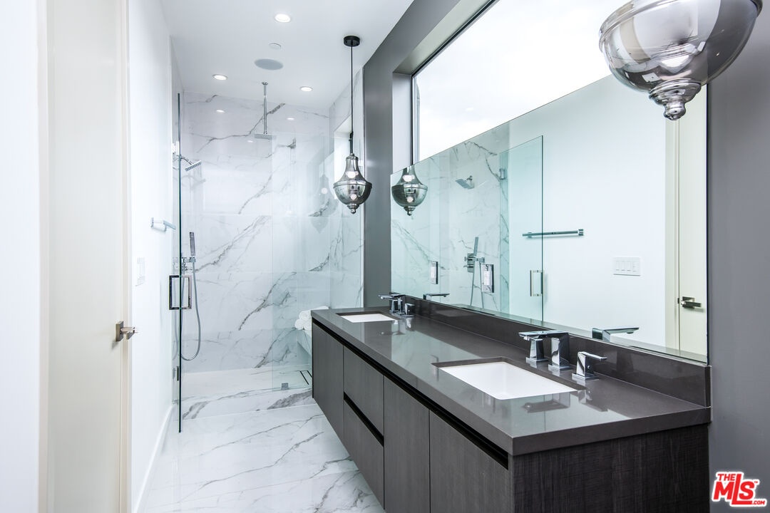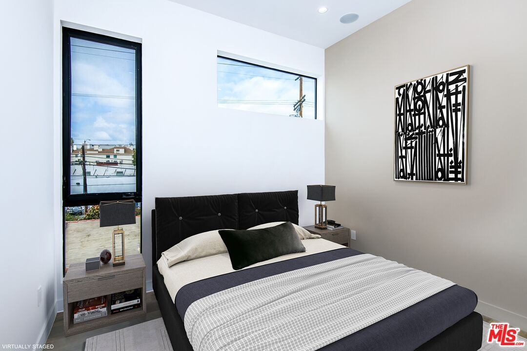 Centrally located in the beating heart of Westwood, 1819 1/2 Veteran Avenue is a gated, 2021 construction, contemporary home that strikes a perfect balance between cultivating a luxurious environment, along with showcasing the very best in modern design. This detached (no common walls) 3-level, 1701 SQFT home presents 3 Bedrooms + 4 Bathrooms, and is replete with hardwood floors throughout. As you first enter, you are met with an open floor plan featuring soaring ceilings overhead, all beautifully illuminated by an abundance of natural-light welcoming you home. A well-appointed kitchen featuring stainless steel appliances, opens up to the expansive living and dining areas - perfect for entertaining. On the second level, you'll find the first two large bedrooms (or office), and full laundry room, along with two designer-spec baths (one ensuite). Upstairs, the primary suite boasts a walk-in closet, an exquisite dual-vanity bath, and floor-to-ceiling sliding glass doors that open to a large open-air terrace offering uninterrupted views of the Westwood skyline. The indoor / outdoor primary design evokes feelings of living in luxe metropolitan hotel. Make your way to the private rooftop deck (complete with fire pit) and take in the explosive 360-degree panoramic views reaching far across Los Angeles and the Santa Monica Mountains. Additional Features: Private two-car garage equipped with 220-volt outlets & smart home technology (pre-wired for integrated AV throughout). Located just a short distance to UCLA, Westwood Village, Westwood Park, Westfield Century City Mall, the area's most popular restaurants, shops and cafes, entertainment, and so much more. Original Photos: https://bit.ly/3MSZ5my