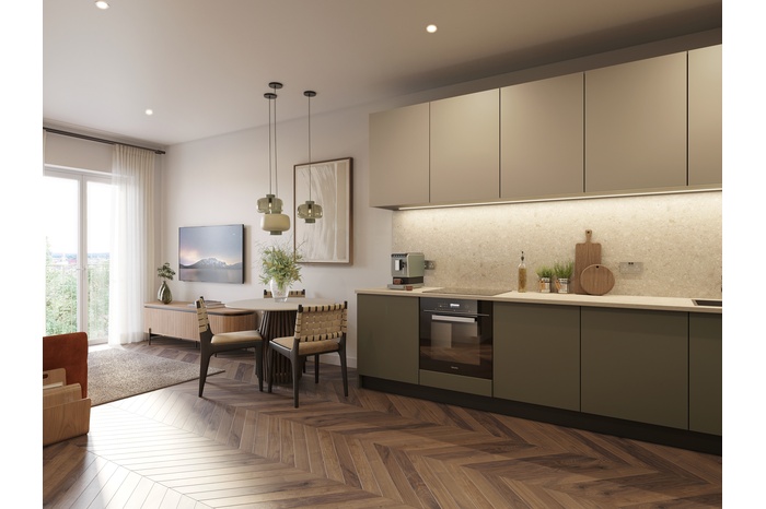 This beautifully presented one bedroom apartment offers contemporary open-plan living, thoughtfully designed to maximise space and natural light. The stylish integrated kitchen flows effortlessly into the living and dining area, creating a perfect setting for both relaxing and entertaining. The generous double bedroom benefits from bespoke fitted wardrobes, while the modern bathroom is finished with high quality fixtures and fittings.