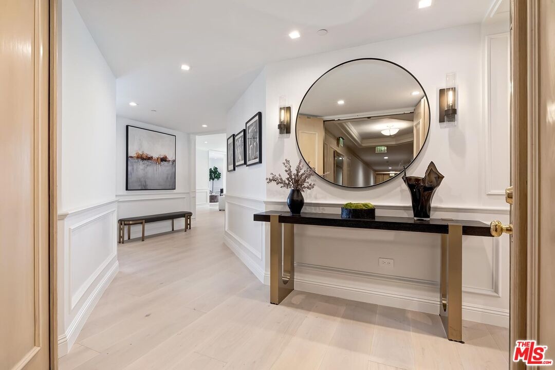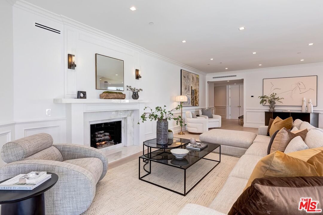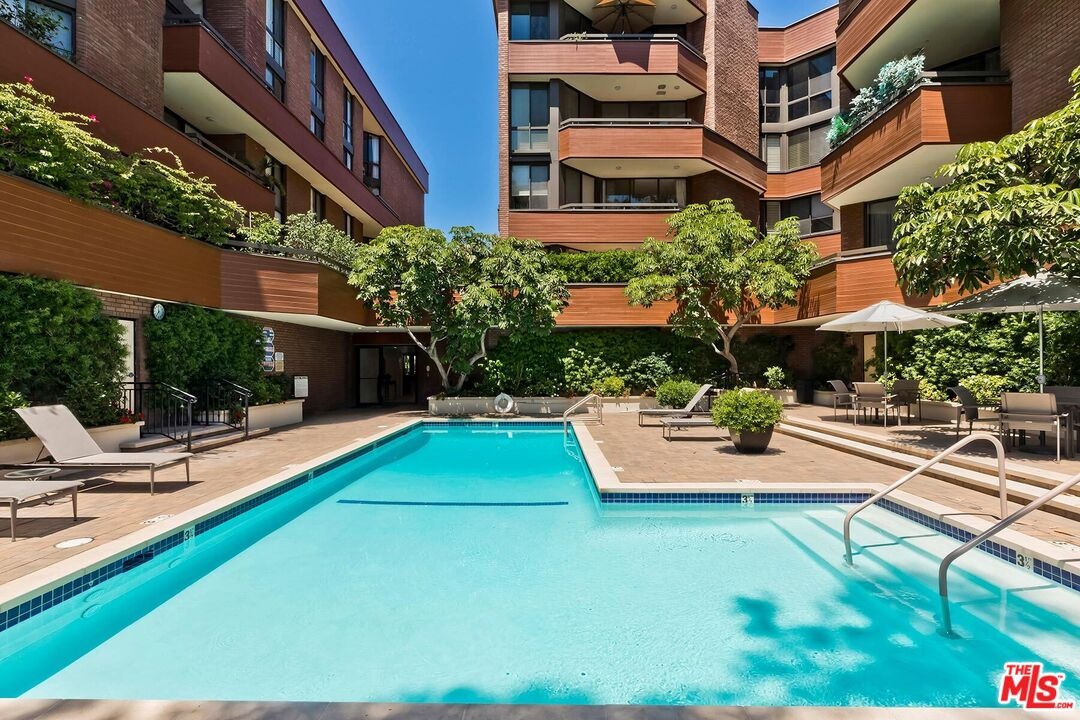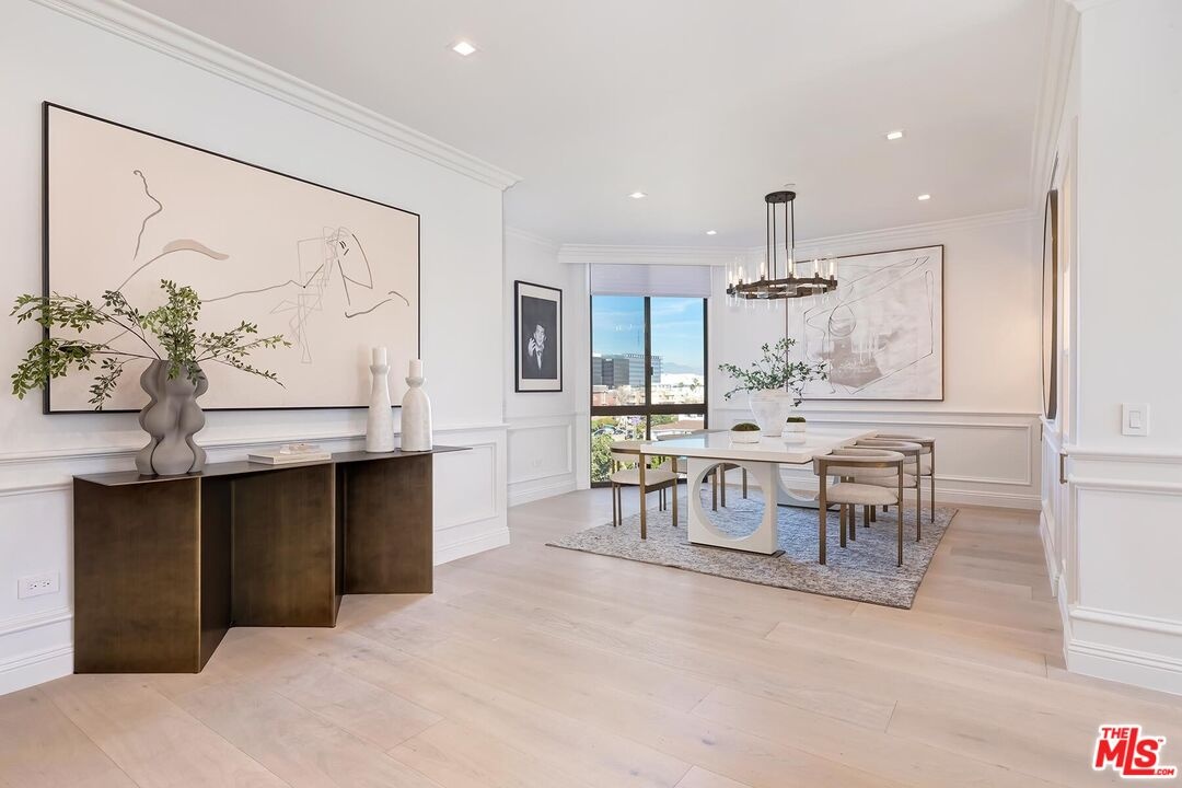 This newly remodeled 2-bedroom plus den Penthouse offers contemporary design and modern comfort in the prestigious IV Seasons Condominiums, located on a quiet, tree-lined street in Beverly Hills. Every detail has been thoughtfully updated, showcasing brand-new finishes throughout. Wide plank oak floors, soaring ceilings, and expansive floor-to-ceiling windows fill the space with light and create a sleek, open atmosphere. An expansive terrace provides a seamless indoor-outdoor flow and serene tree-top and city views. The reimagined gourmet kitchen features sleek top-of-the-line appliances, custom cabinetry, and a cozy breakfast area with balcony overlooking lush greenery and city views. The primary suite exudes a private retreat, complete with two large custom walk-in closets and a brand-new five-star hotel-inspired bath featuring designer finishes, a soaking tub, and a large glass-enclosed shower. The spacious second bedroom suite includes its own custom closets and a modern en-suite bath. The versatile den offers space for a home office, media room, or additional living area, and a fully redesigned laundry room adds convenience. Residents enjoy luxury amenities, including 24/7 doormen, valet parking, a newly updated pool and spa, gym and ample storage. This all in an ideal Beverly Hills location!