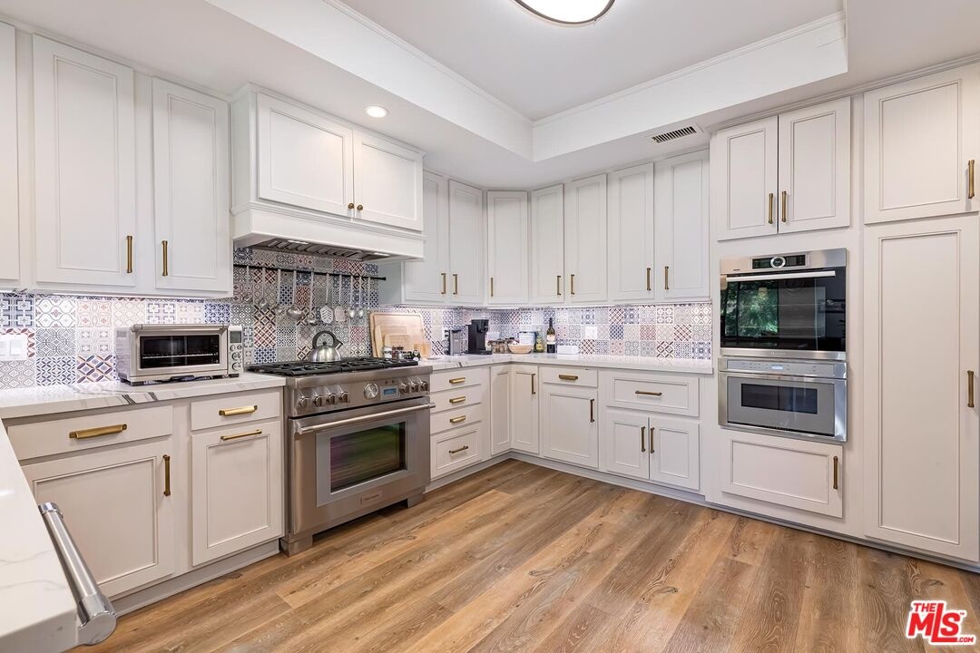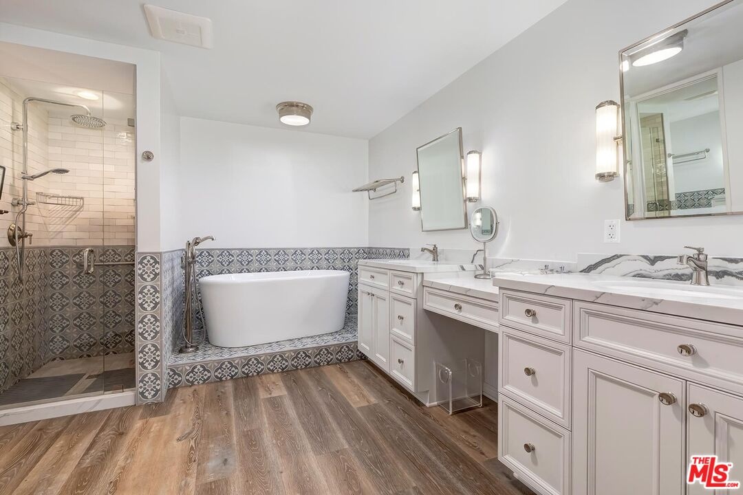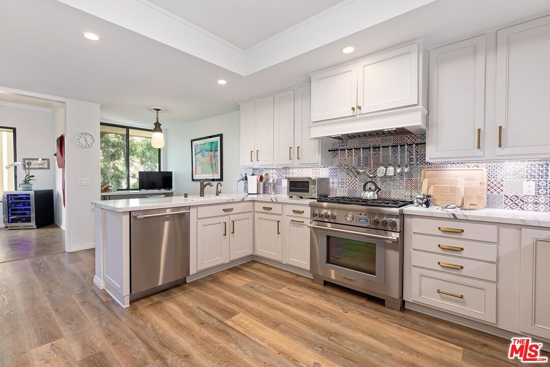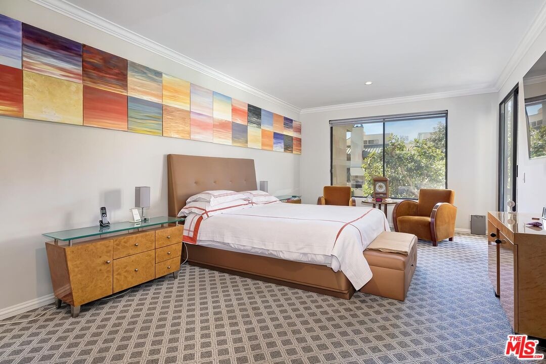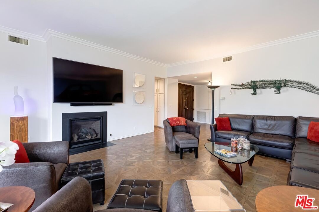 Beautiful classic designed remodeled single level condo in the coveted 24-hour guard gated Century Hill in Century City. Designer done to perfection in desirable interior location flooded with natural light. This remodeled contemporary style two bedroom offers warm parquet and wide plank light wood flooring, crown moldings and new upgrades throughout. The entry opens into the large living room & dining area with high ceilings, fireplace and floor to ceiling windows with privacy and views. The inviting large balcony has lush green tree top and pool views. The gourmet kitchen boasts top of the line appliances, gas cooktop and large breakfast area for dining. The primary suite has a lovely sitting area, opens to the balcony and marble tiled bath w/walk in closet. Spacious secondary en-suite guest bedroom and bath. This sophisticated condo is like living in a private home, but w/ all of the amenities & security of guard gated Century Hill with acres of stunning manicured grounds, state of the art gym, fully equipped conference room/event space, 5 pools/spas, Tennis courts, racquetball court & at home golf driving range. 24-hour guard gated security, 3 side by side parking spaces and huge private extra storage room in garage. Close to all world class dining and entertainment Century City and Beverly Hills has to offer!
