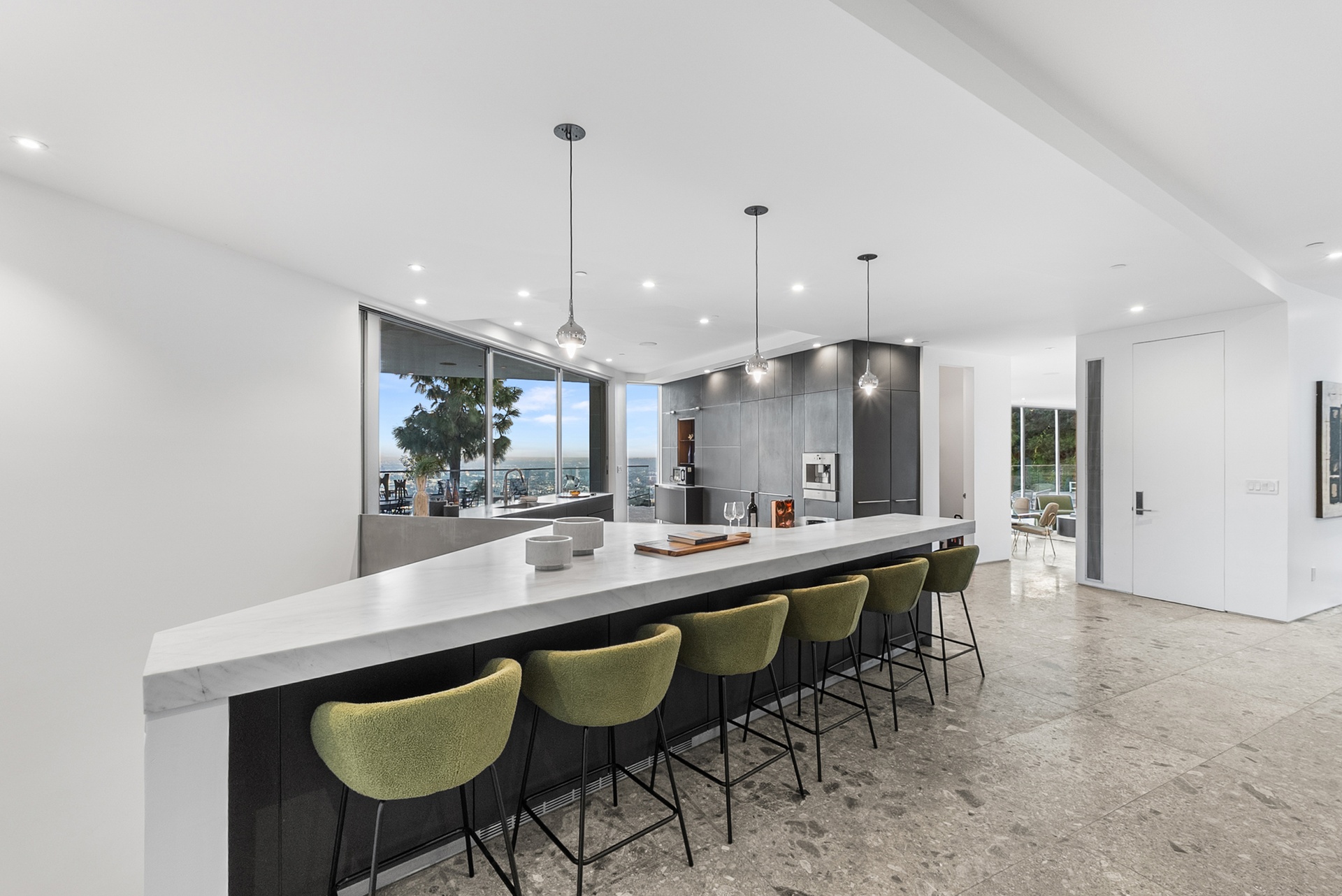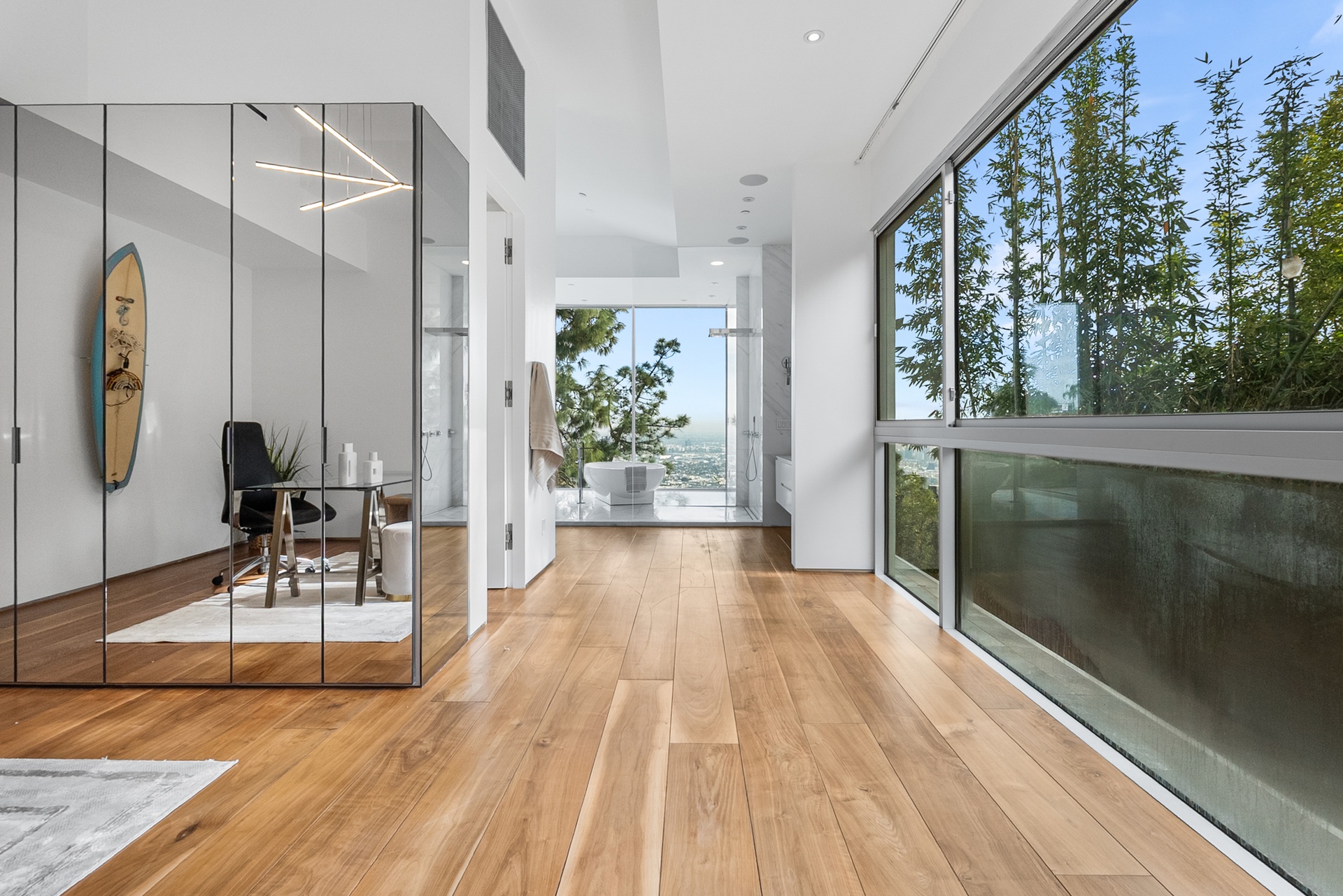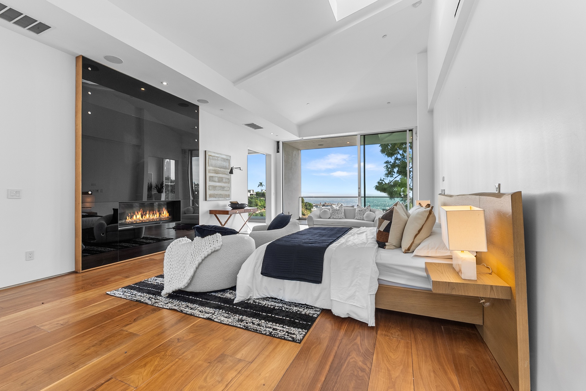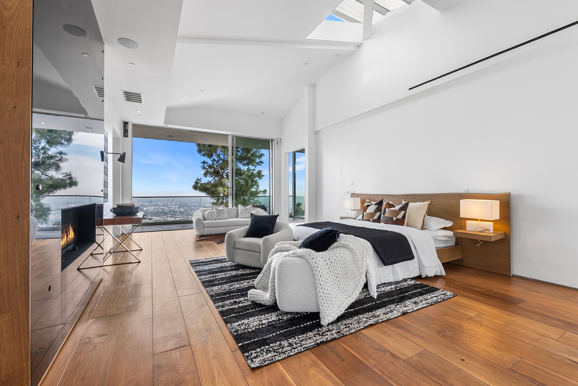 Perched above the iconic Sunset Strip in the prestigious Bird Streets, 8854 Thrasher Avenue is a private Hollywood Hills retreat offering sweeping jetliner city views and architectural distinction. Designed by Studio Dardo, this approximately 10,000-square-foot residence blends mid-century modern influence with refined contemporary design.The home features 5 bedrooms and 10 bathrooms, thoughtfully designed with soaring gallery walls ideal for displaying a significant art collection. Warm wood and natural stone finishes complement expansive living spaces, while floor-to-ceiling glass doors open to generous terraces that create seamless indoor-outdoor flow perfect for entertaining and everyday living. The over half-acre lot (approximately 26,000+ square feet) provides privacy and scale rarely found in this coveted enclave. A custom glass-enclosed garage serves as a striking architectural centerpiece and collector showcase. Moments from world-class dining, nightlife, and shopping, this exceptional property offers the ultimate balance of privacy, prestige, and convenience in one of Los Angeles' most sought-after neighborhoods.