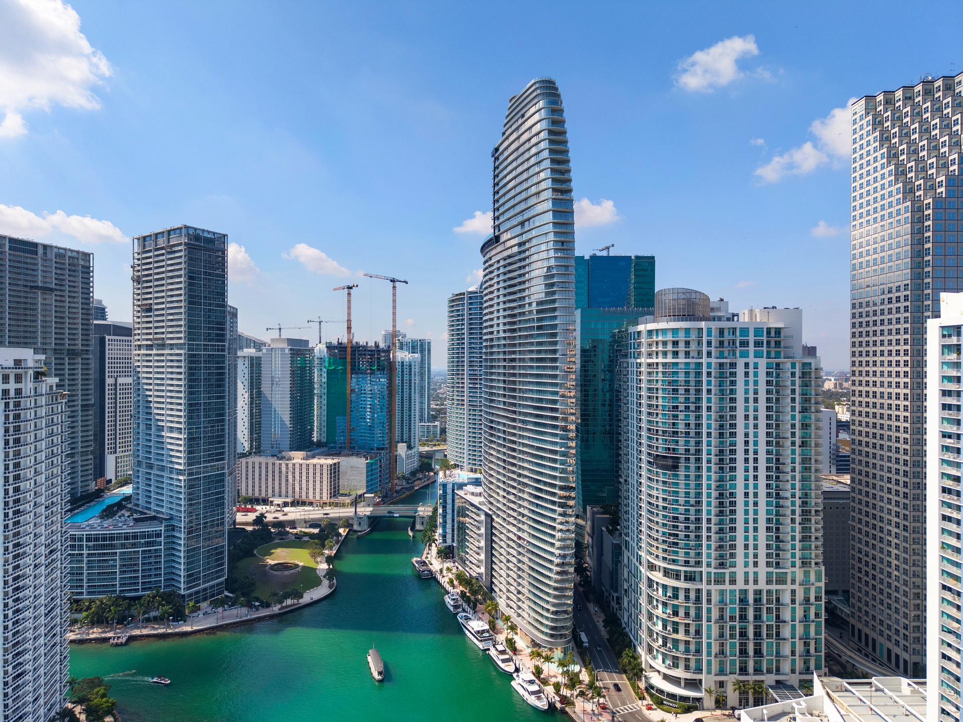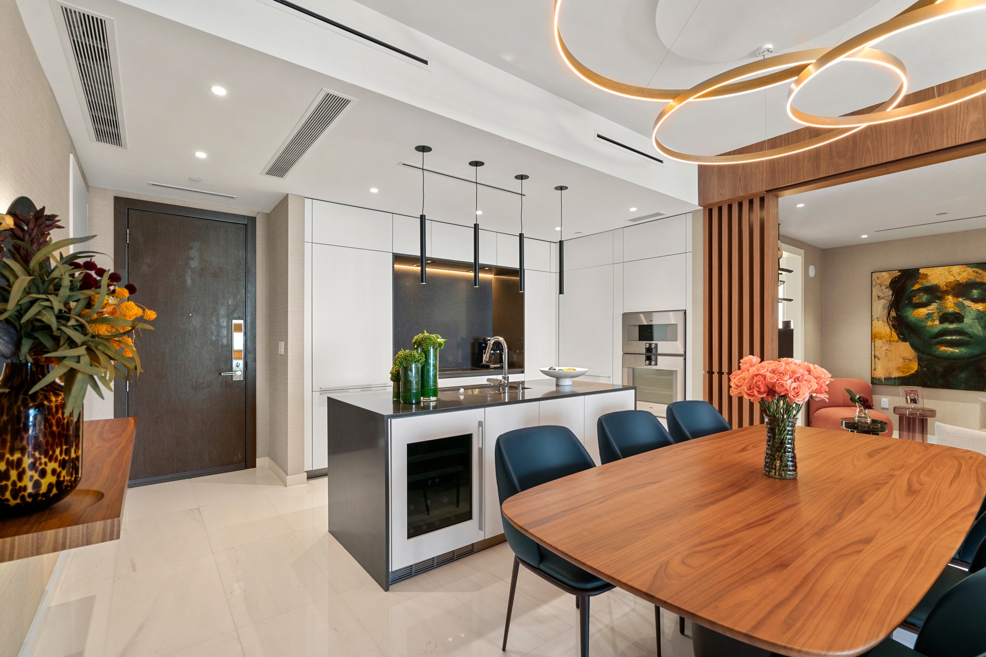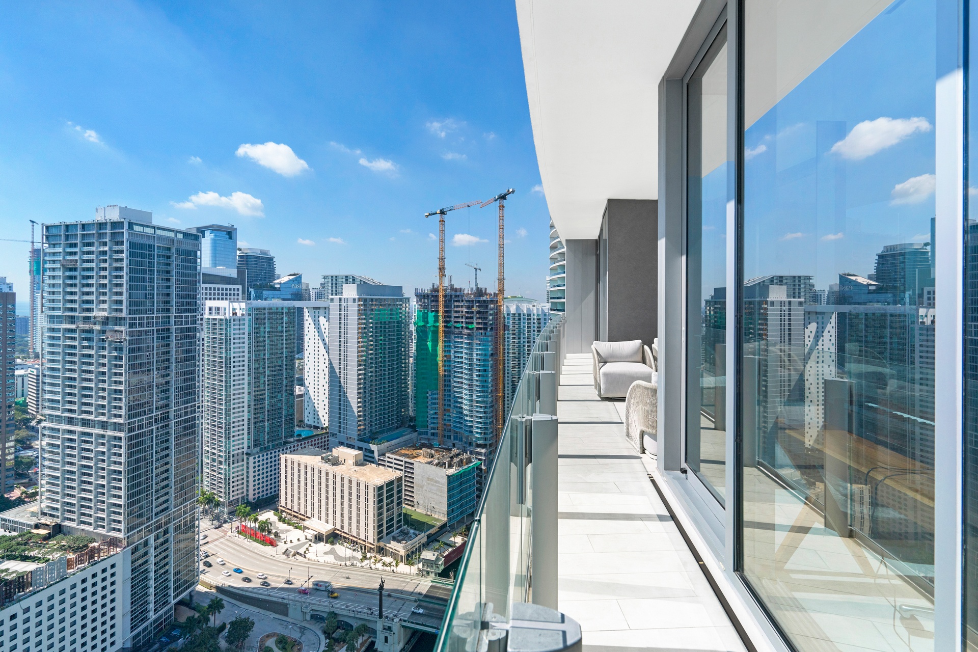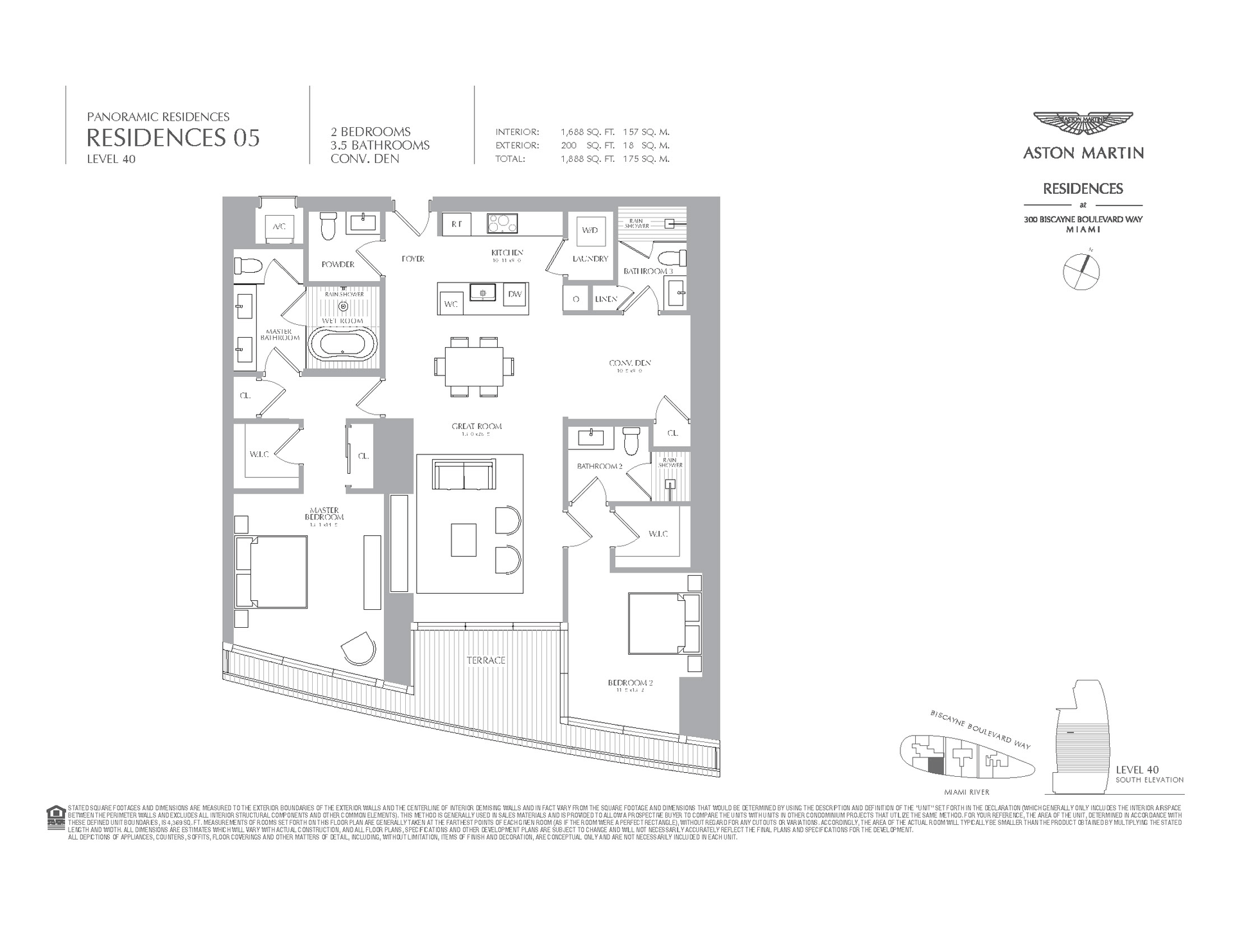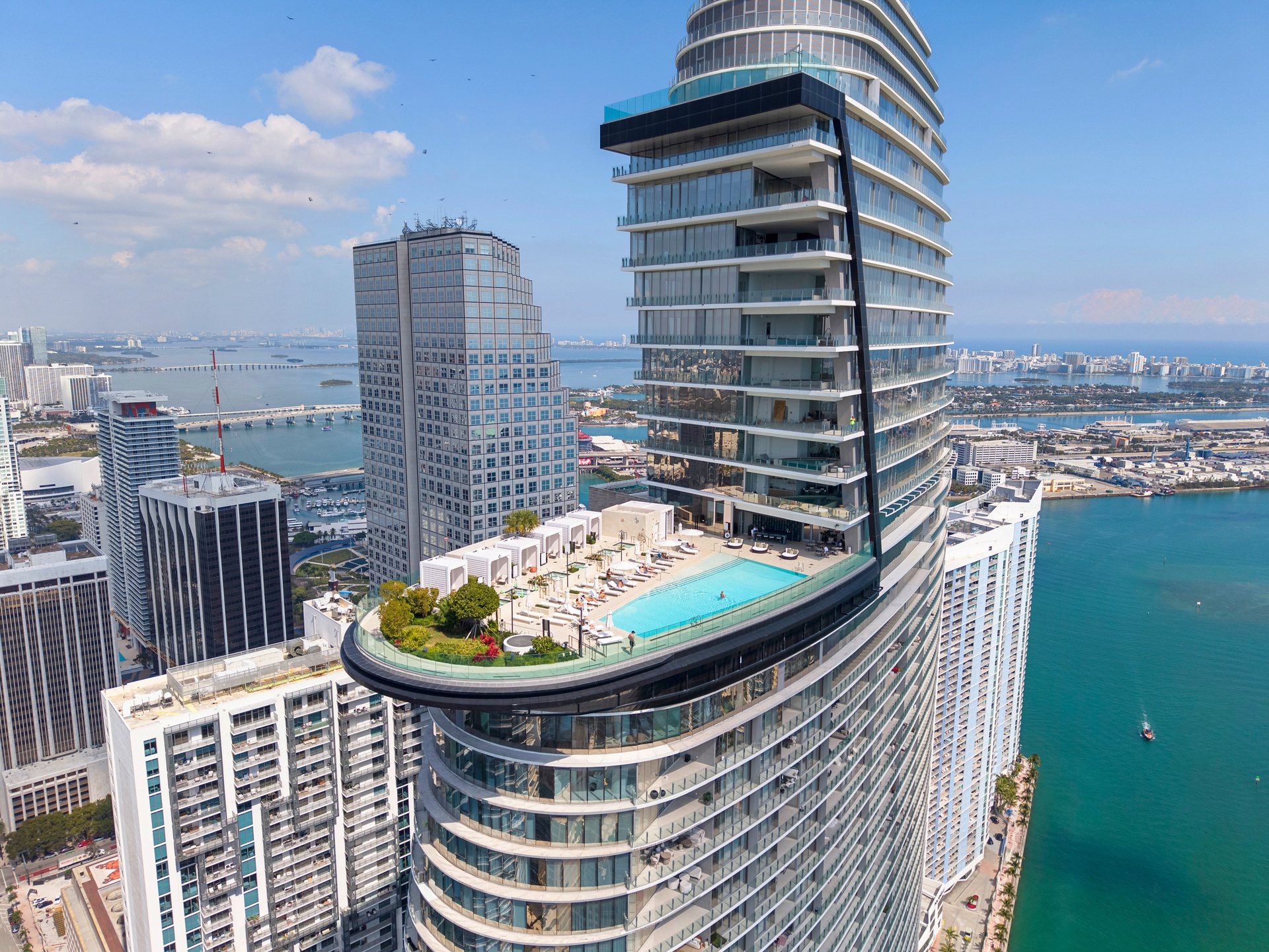 Welcome to Aston Martin 4005, a designer furnished new construction featuring 2 Bed plus an enclosable Den with 3.5 baths in the waterfront between Brickell and Downtown Miami. This stunning high-floor residence features breathtaking panoramic views of Biscayne Bay, the Miami skyline, and the Atlantic Ocean through 10 ft floor-to-ceiling windows and wrap-around balcony. Professionally curated interiors blend modern elegance with comfort, showcasing custom furnishings by Addison House, statement lighting, premium finishes, and bespoke décor throughout. The open-concept living and dining areas flow seamlessly into a gourmet kitchen equipped with top-of-the-line Gaggenau appliances, sleek cabinetry, and refined stone surfaces. Spacious bedrooms offer serene retreats with spa-inspired bathrooms and ample walk-in closets. Wraparound balcony accesible from all bedrooms and living room. Residents also enjoy over 40,000 SqFt of amenities including an infinity pool deck in the sky, state of the art fitness center and spa, theaters, kids rooms, business centre, event salons, boat dock, and more. Building also features 24/7 security, concierge, and is within steps from Miami's hottest restaurants and shops, Downtown and Brickell, and a short drive from Miami Beach, Key Biscayne, Coconut Grove with easy access to the airport. Tenant can chose to change to bedroom furniture in the second bedroom. Must See!