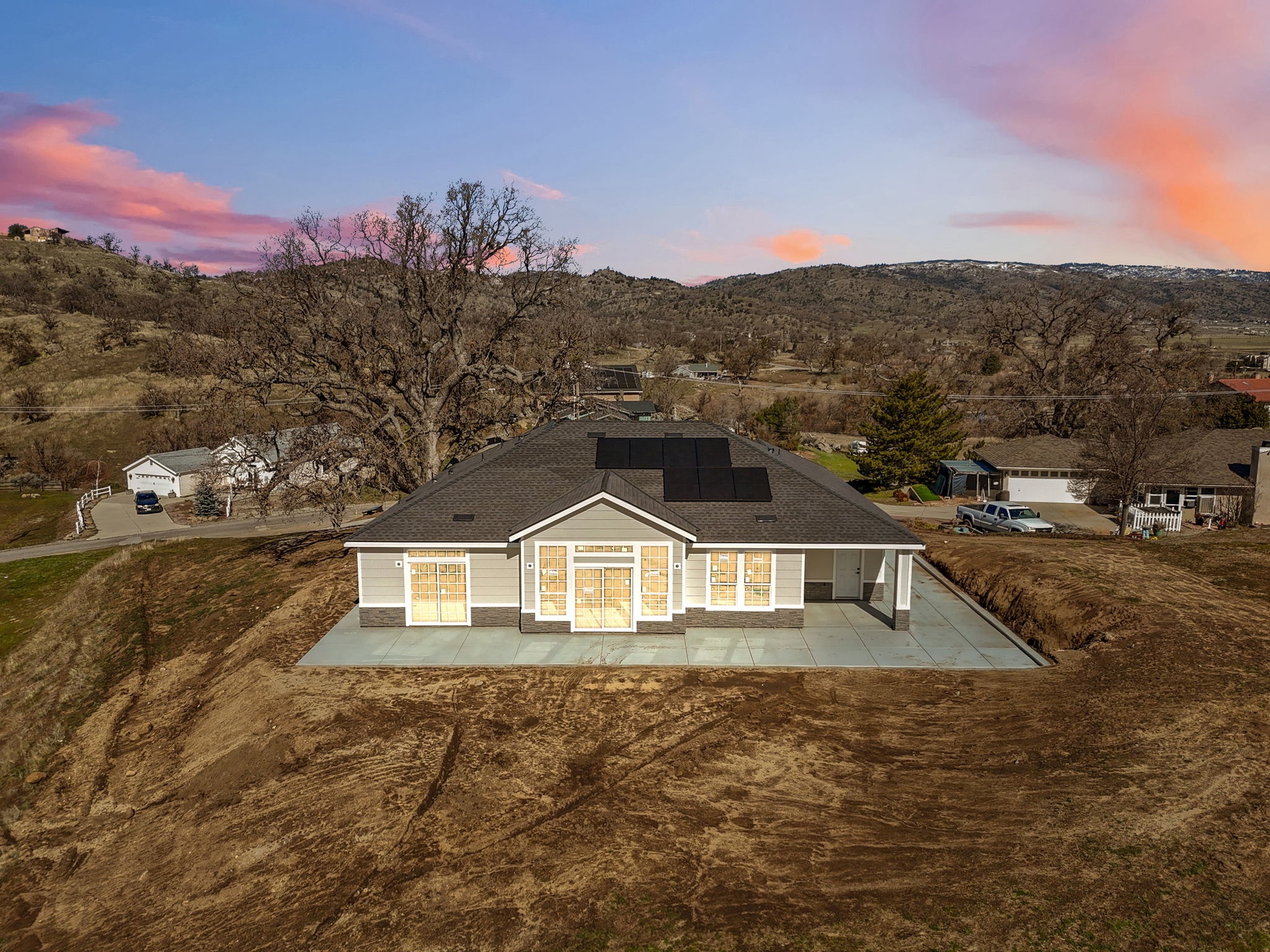 This is the home you've been waiting for. Brand-new 2026 construction built to the latest California Building Code, featuring owned solar, private septic system, and integrated fire alarm and suppression system for added safety and efficiency.Designed with a modern aesthetic, the home offers open, light-filled living spaces, high ceilings, and expansive windows that capture beautiful surrounding views and natural light throughout. The thoughtfully designed floor plan includes 3 bedrooms and 2 bathrooms, highlighted by a spacious primary suite with a large bath and walk-in closet. Two additional bedrooms are serviced by a full bathroom. Stylish upgrades and quality finishes enhance the home's clean, contemporary feel. A two-car garage is complemented by approximately 300 sq ft of bonus space ideal for a workshop, hobby room, storage area, or private office. Situated on approximately 0.5 acres, the property offers a generous yard, white PVC fencing, and a metal entry gate providing both privacy and functionality. Wildlife is often seen roaming the area, adding to the peaceful mountain lifestyle. Located in the desirable Stallion Springs community near Tehachapi, residents enjoy clean mountain air, mature oak trees, and a tranquil foothill setting with convenient access to shopping, dining, hospital, schools, and Mountain Valley Airport. Easy drive to Los Angeles, Santa Monica, Big Bear, Sequoia National Park, Mammoth Lakes, and Las Vegas, mountains, city, or ocean all within reach.