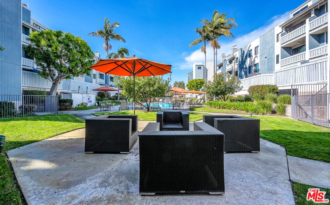 This beautifully updated end-unit condo in the heart of Playa del Rey, just half a mile from the beach and minutes from everything the Westside has to offer. This bright and airy 2 bedroom, 1.5 bath home is located within the highly sought-after Manitoba West complex, a 24-hour guard-gated community known for its resort-style amenities and lush, park-like grounds. Inside, you'll find freshly painted interiors, rich hardwood floors, and soaring ceilings that create an open, spacious feel. The inviting living room features a cozy fireplace and flows seamlessly into the dining area and kitchen, complete with stainless steel appliances. The convenience of in-unit laundry adds everyday ease, while a dedicated storage space keeps everything organized. The community amenities are second to none: a newly renovated fitness center, pool, two spas, saunas, pickleball courts, tennis courts, paddle court, and ample guest parking. With two garage parking spaces and 24/7 security, comfort and peace of mind come standard.