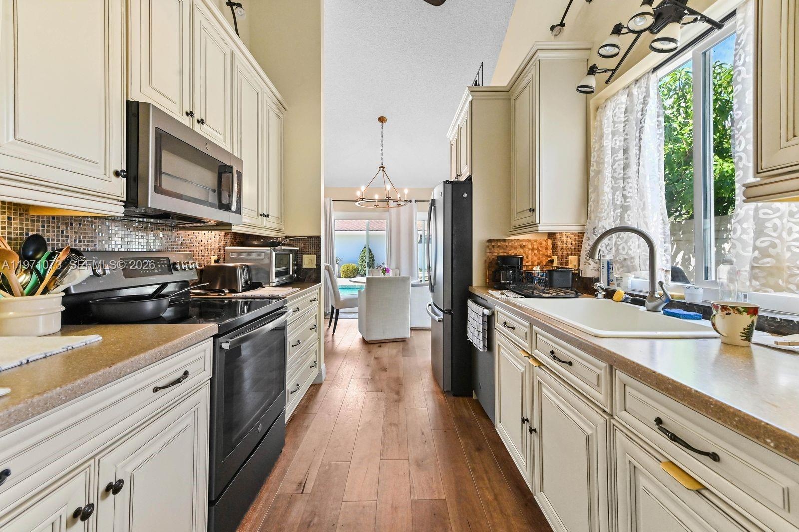 The home has recently been renovated, including updated kitchen with new quartz countertops, new cabinetry and stainless steel appliances. Both bathrooms have also recently been updated, including new flooring, walk-in showers new vanities, with high end finishes. All windows and sliding glass doors are new high quality insulated impact glass. Home is quite spacious with vaulted ceilings The flooring throughout the main living area is high quality engineered hardwood. There is a very nice, well maintained private, heated pool and pool deck located in the backyard area of the property. The property has a spacious, airconditioned 2 car garage.