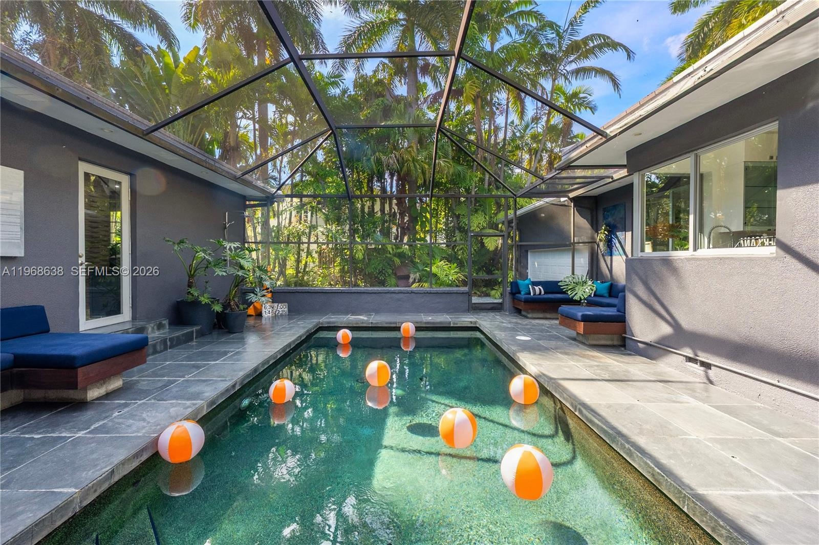 Set on one of the most coveted streets in guard-gated Morningside, this architectural gem rests on an expansive 12,633 sq. ft. corner lot enveloped in lush tropical foliage with serene garden vistas visible from every room.