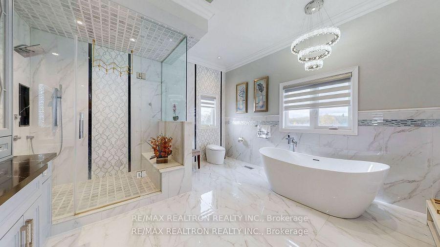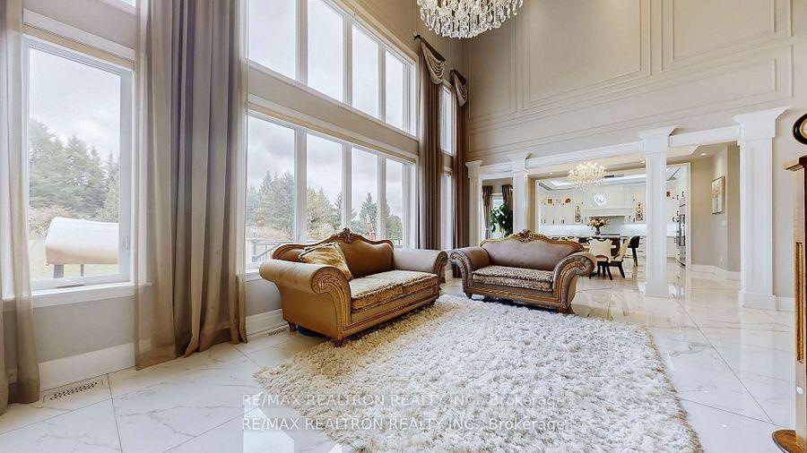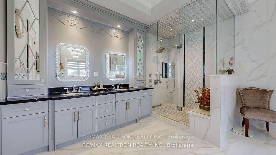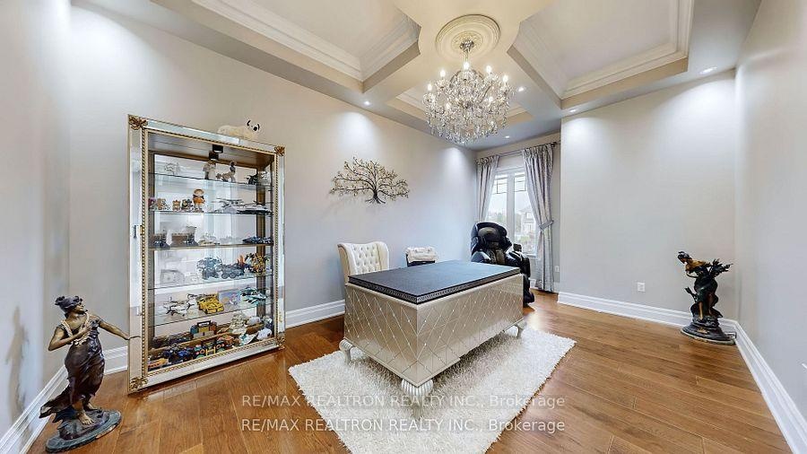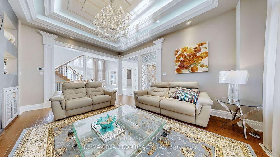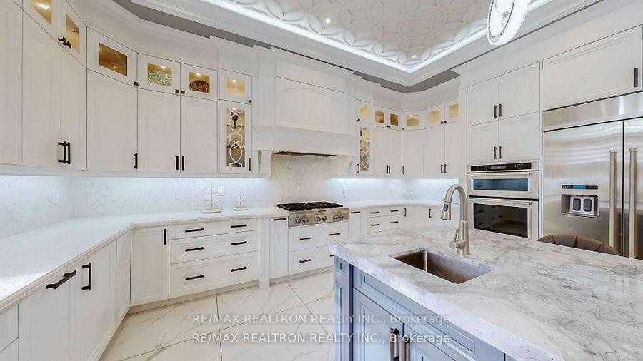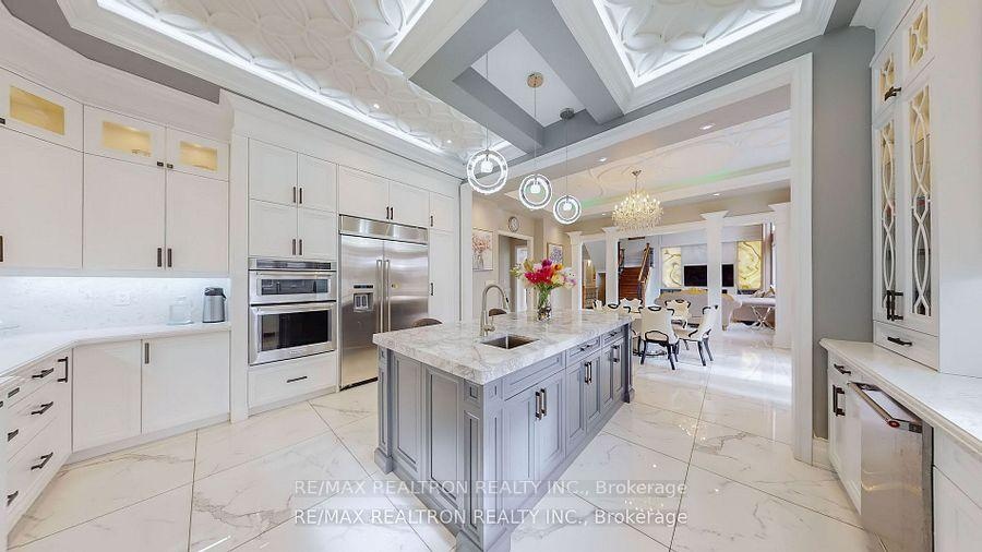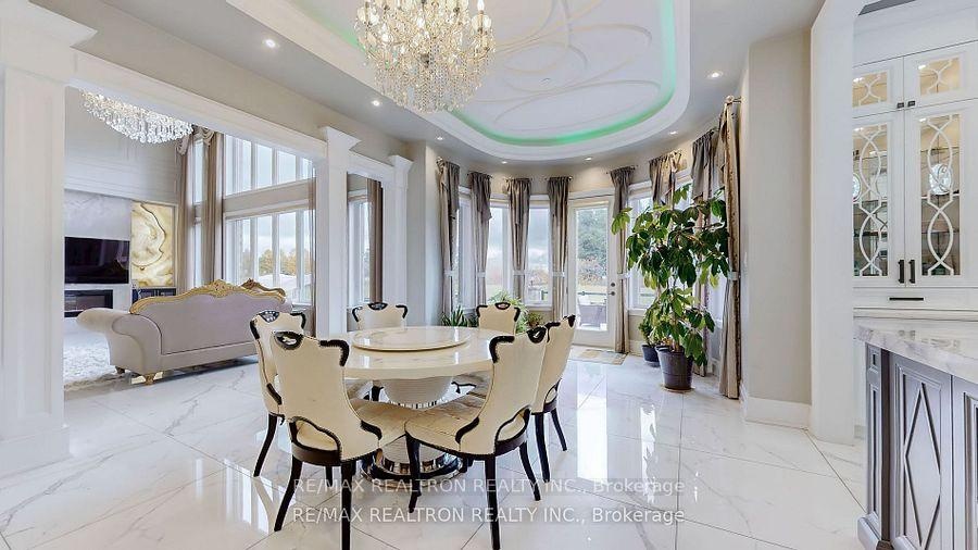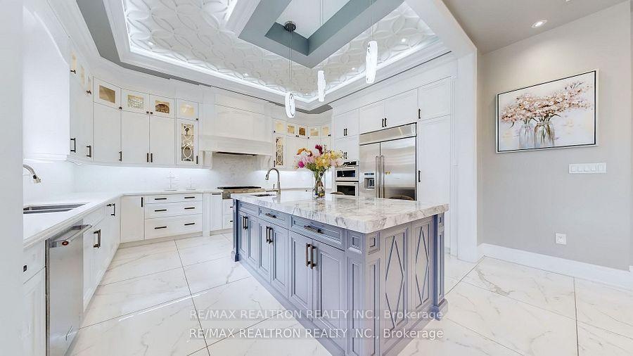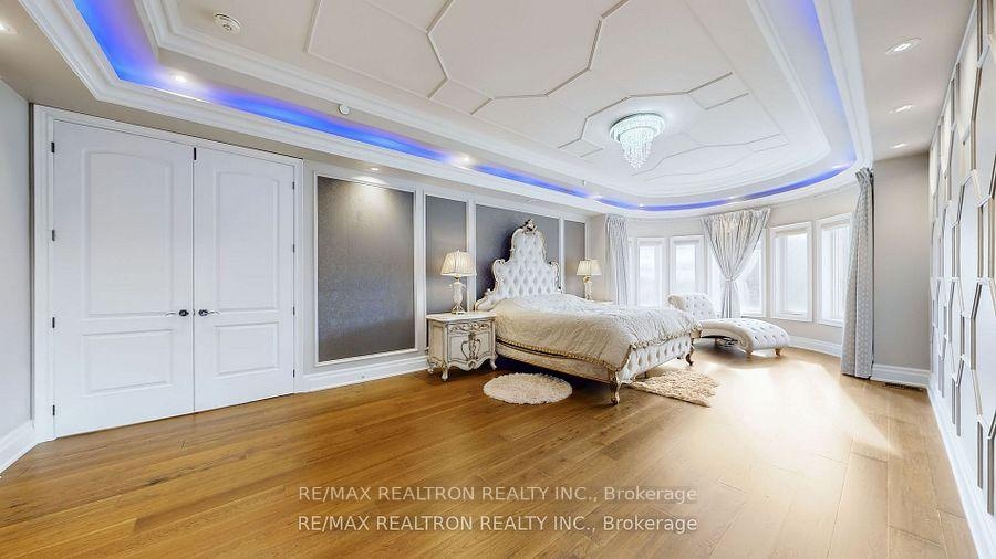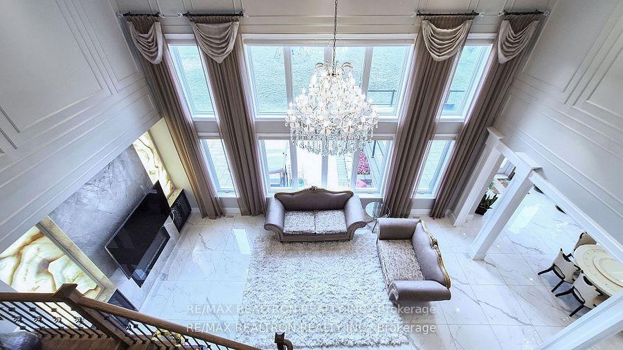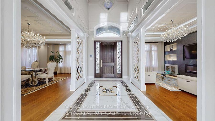 Experience ultra-luxury living in this breathtaking showstopper set on a premium 1-acrepie-shaped lot in an exclusive estate court! This grand 4-car garage residence offers architectural presence that feels like a modern castle, crafted with uncompromising quality, artistry, & design. Inside, enjoy 6,625 sq.ft. of refined living (+ ~3,300 sq/ft unspoiled basement ready for customization). Every inch displays couture craftsmanship: exceptional trim work, elaborate mouldings, custom wainscoting, designer wall panels, waffle & coffered ceilings, & magazine-worthy detailing throughout. Dramatic volumes include a 22ft cathedral foyer & family room, 11ft ceilings on the main, 10ft on the 2nd floor, & 9ft in the basement. Brilliantly illuminated by over 200 pot lights & 20 crystal chandeliers, the home showcases custom floral-pattern ceiling designs all throughout. The main floor includes a private nanny/in-law suite complete with its own 3-piece ensuite bath & walk-in closet. The heart of the home is the custom chef's gourmet kitchen, featuring a wide center island, premium built-in appliances, extensive cabinetry, marble surfaces, & open sightlines into the sunlit breakfast area & luxurious family room. A stunning symmetrical backlit onyx feature wall anchors the living space, complemented by premium marble, crown mouldings, & oversized windows overlooking the vast estate grounds. Upstairs, discover 5 spacious bedrooms, each with its own private ensuite, designed with exceptional finishes & elegant ceiling treatments. The primary bedroom retreat impresses with a grand sleeping area, large lounge/sitting zone, a massive walk-in closet, & a spa-inspired ensuite that embodies pure luxury. Outside, the rare 1-acre private estate lot offers endless potential-pool, tennis court, cabana, outdoor kitchen, or luxury garden expansion. With open green vistas & privacy on all sides, this property is the ideal canvas for resort-style outdoor living. A true one-of-a-kind masterpiece!