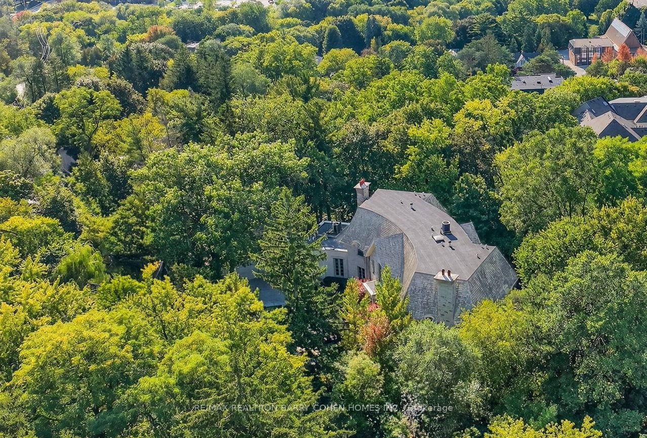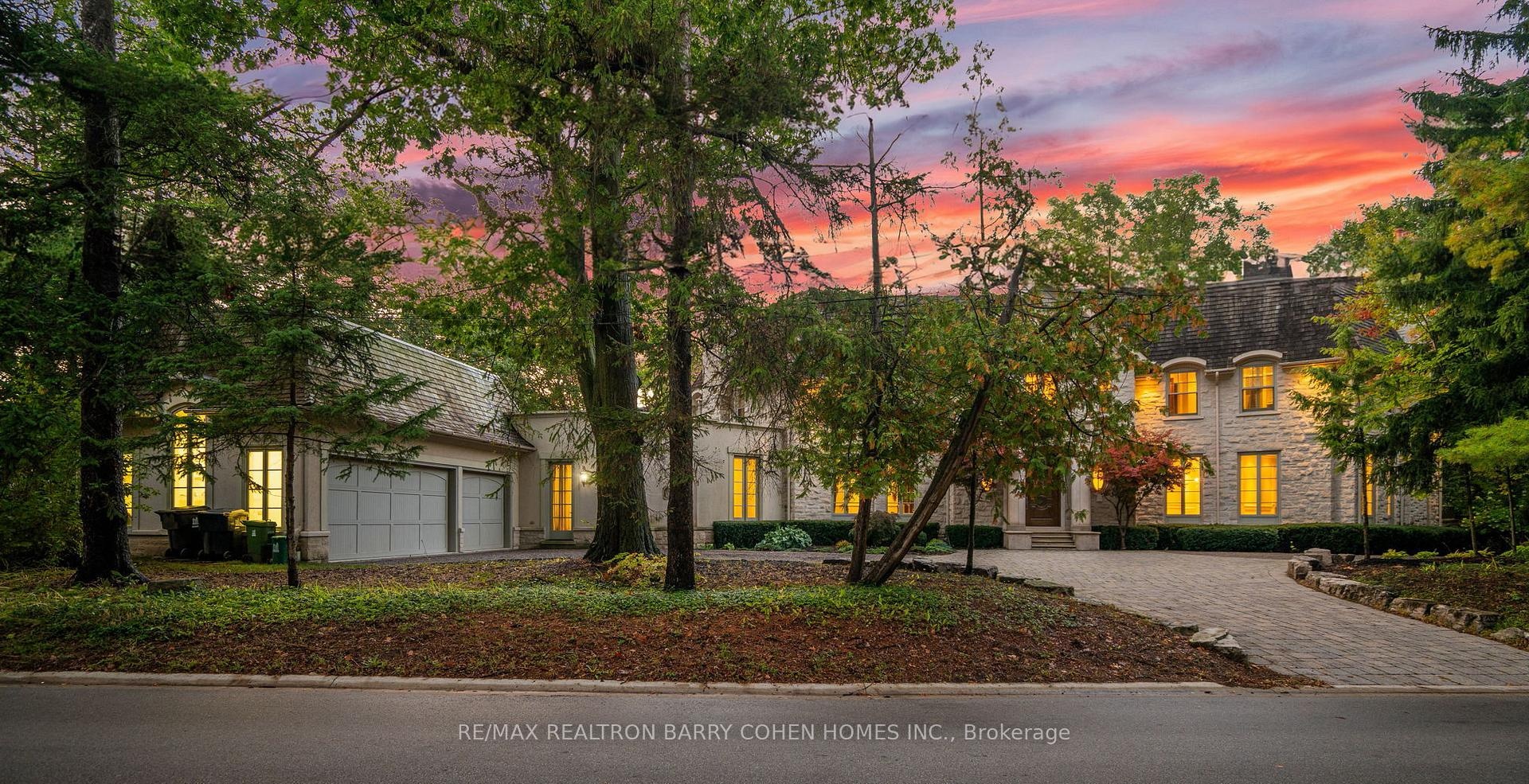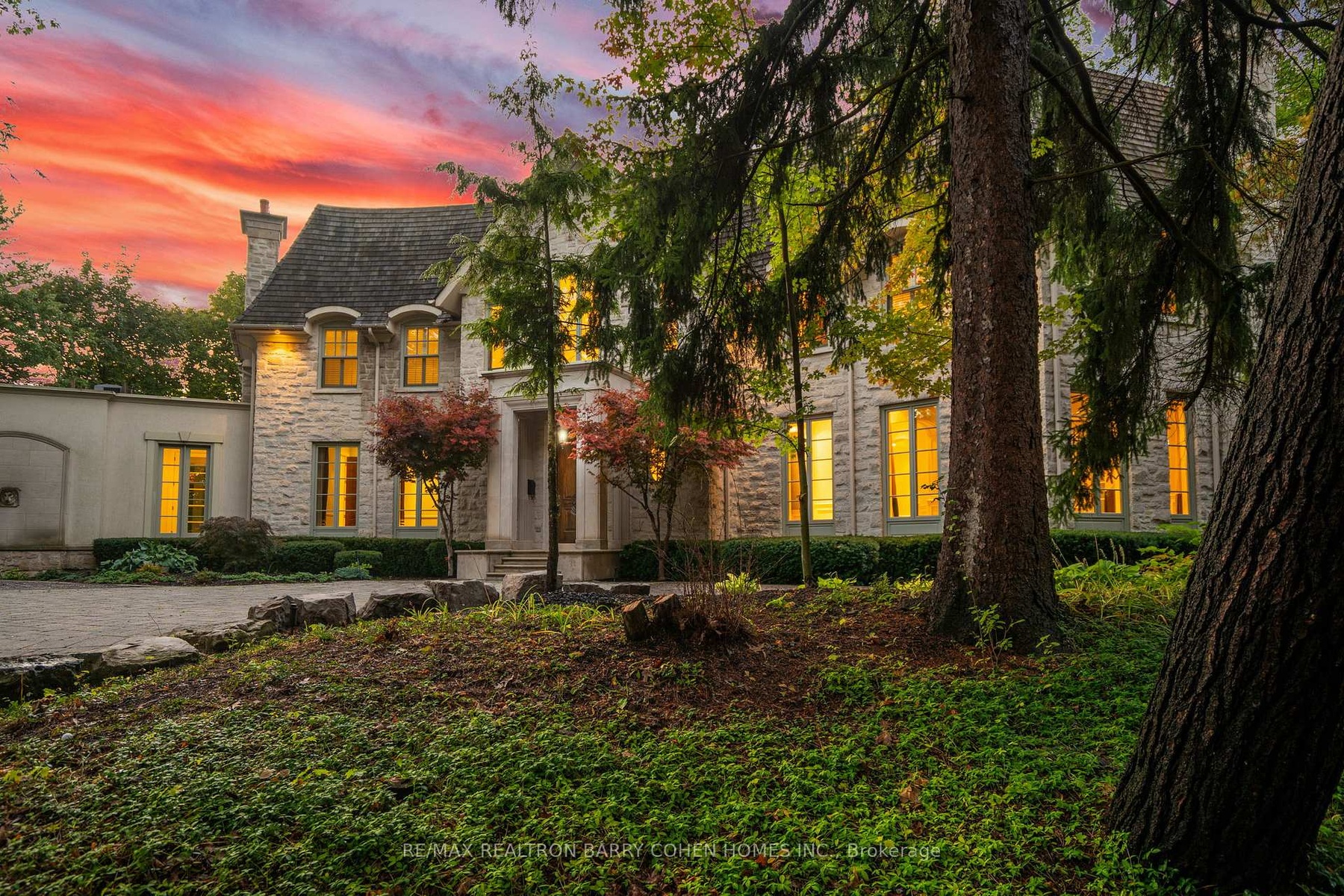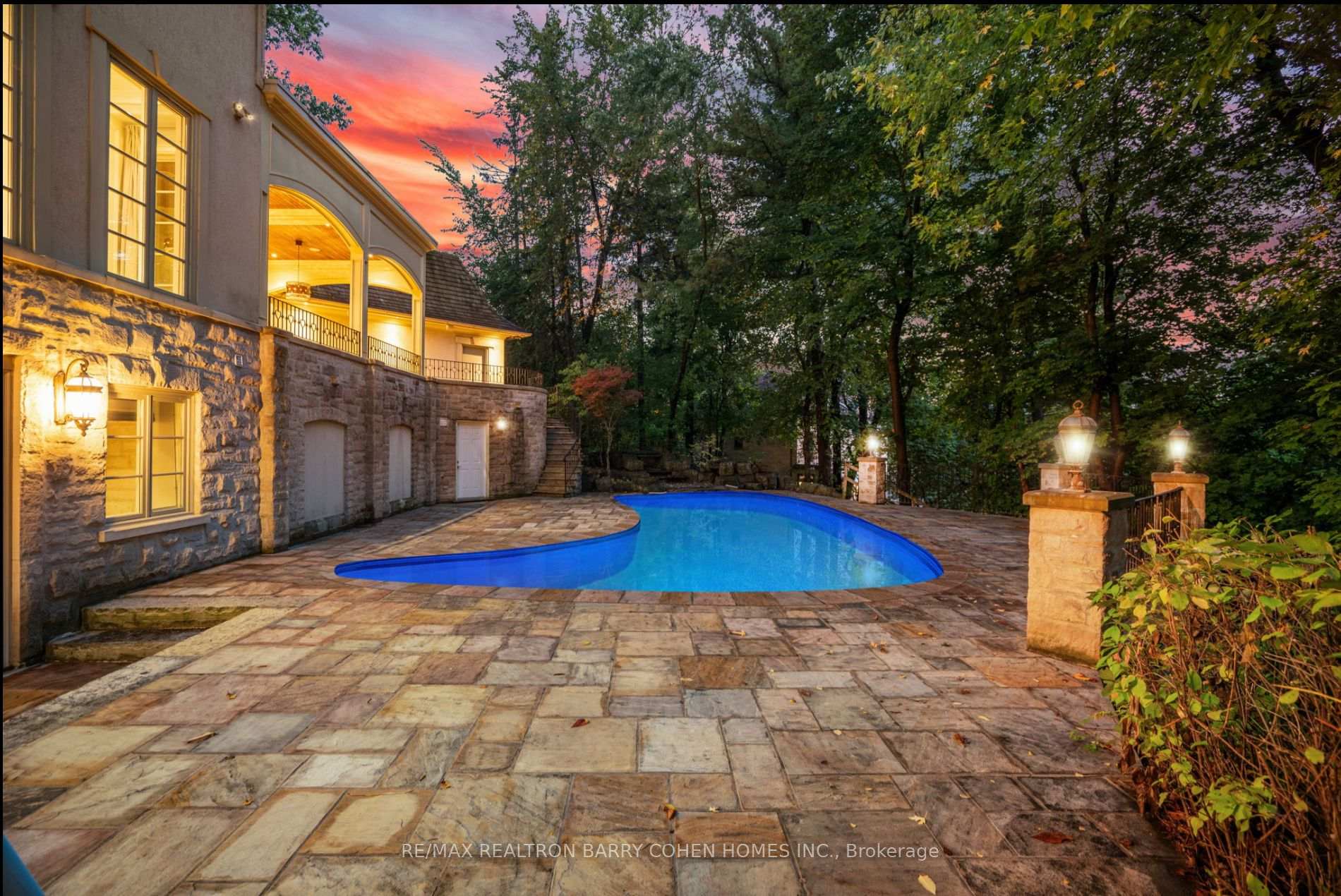 Backs Onto Ravine! Perched gracefully at the highest point of Hoggs Hollow, this French Château inspired masterpiece sits on a spectacular 239.08 x 207.81 ft ravine lot (approx. 1.14 acres). Designed by Dee Dee Taylor Hannah and built by award-winning builder Michael Rossini, this timeless stone estate offers over 10,000 sq.ft. of luxurious living space, blending European elegance with modern comfort. The homes distinctive curved and symmetrical design showcases architectural artistry rarely seen today. Featuring 4 bedrooms with ensuites, 9 washrooms, and a 3-car garage with a circular driveway accommodating up to 15 cars, all principal rooms face west, overlooking the serene ravine. A grand marble foyer, curved hallways, and custom millwork opens to elegant living and dining rooms that walk out to the ravine and garden. Two libraries on main floor, five fireplaces, built-in speakers, 10-ft ceilings, and hardwood floors throughout. The gourmet kitchen with double granite islands and an open-concept family room with motorized curtains creates a warm and inviting space for entertaining.Step out to a 700 sq.ft. patio with outdoor fireplace and panoramic ravine views. The primary suite features a lavish 9-piece ensuite, his & her walk-in closets, and heated bathroom floors. The walk-out lower level wth heated floors includes a home theatre, wine cellar, sauna, wet bar, nanny/guest ensuite, and a recreation room with fireplace opening directly to the backyard oasis.The heated concrete pool with cascading waterfall, framed by mature trees, creates a private, resort-like retreat. A rare offering combining elegance, privacy, and tranquility, just moments from the Granite Club, top private schools (Crescent, TFS, Havergal, UCC, BSS), fine dining, and Rosedale & Don Valley Golf Clubs.A true statement of taste, craftsmanship, and enduring luxury in one of Torontos most prestigious enclaves.