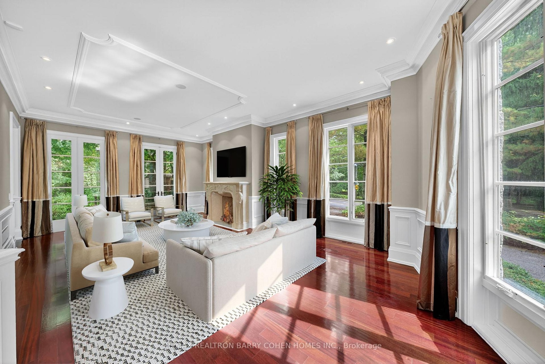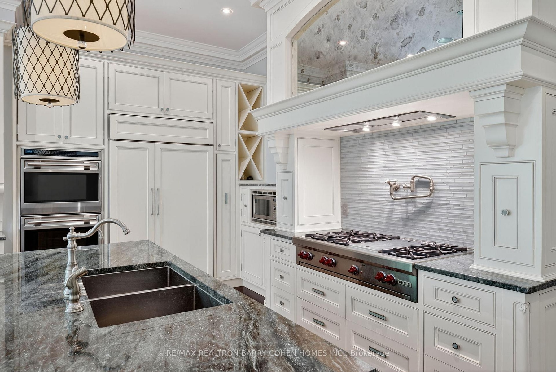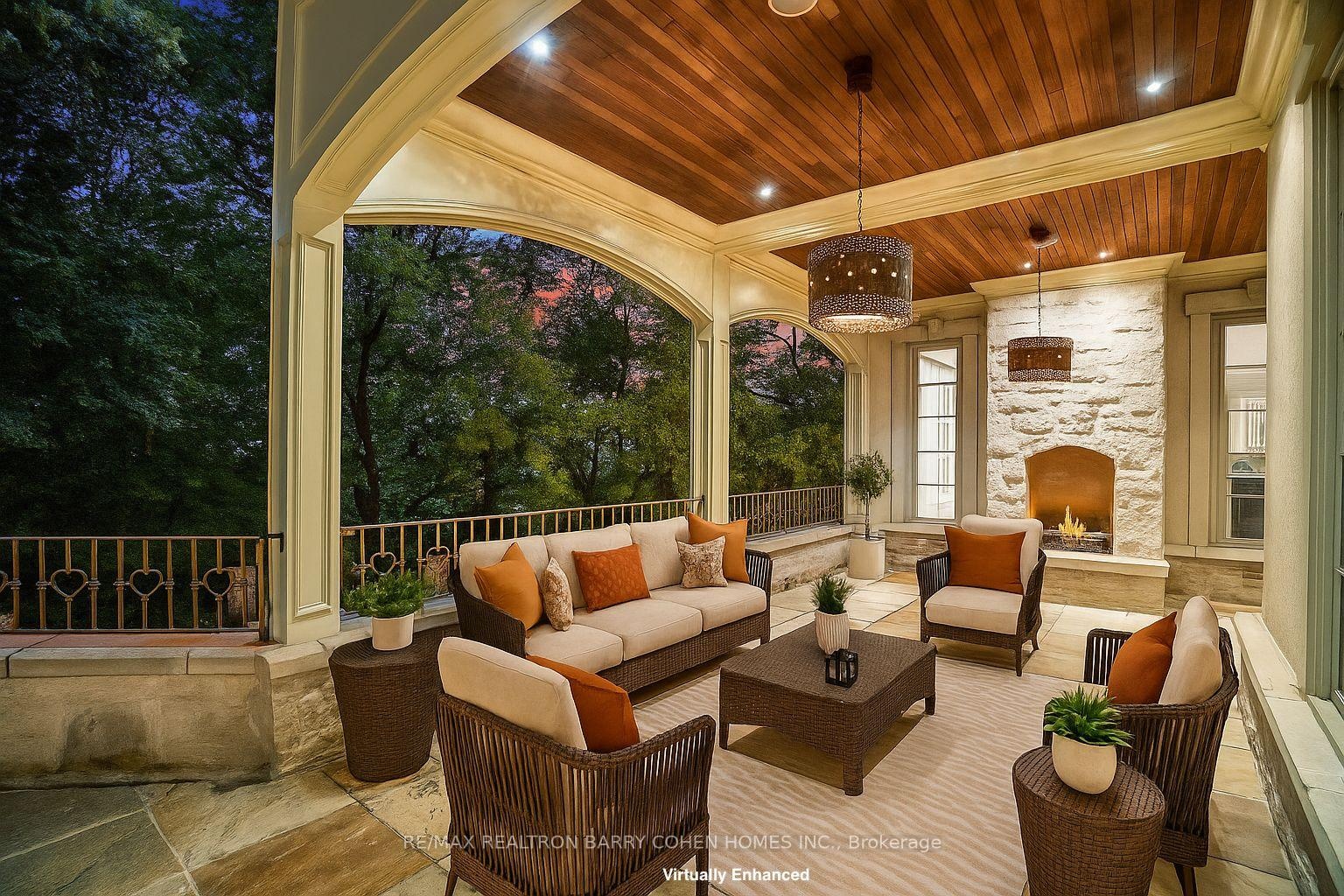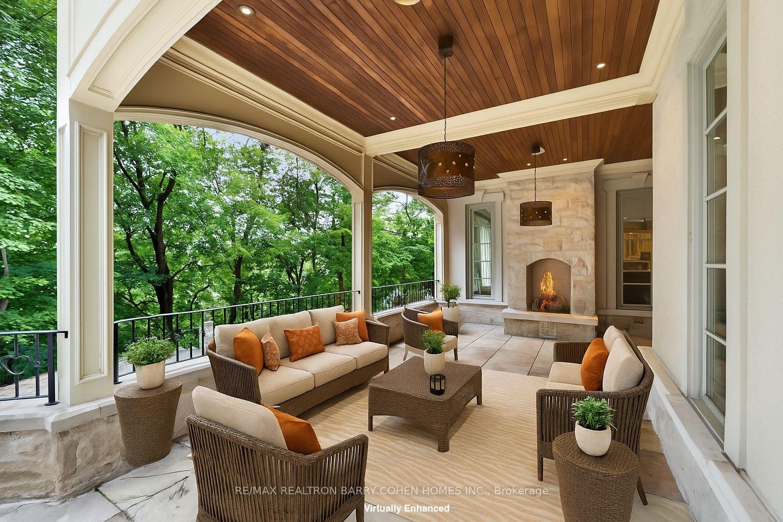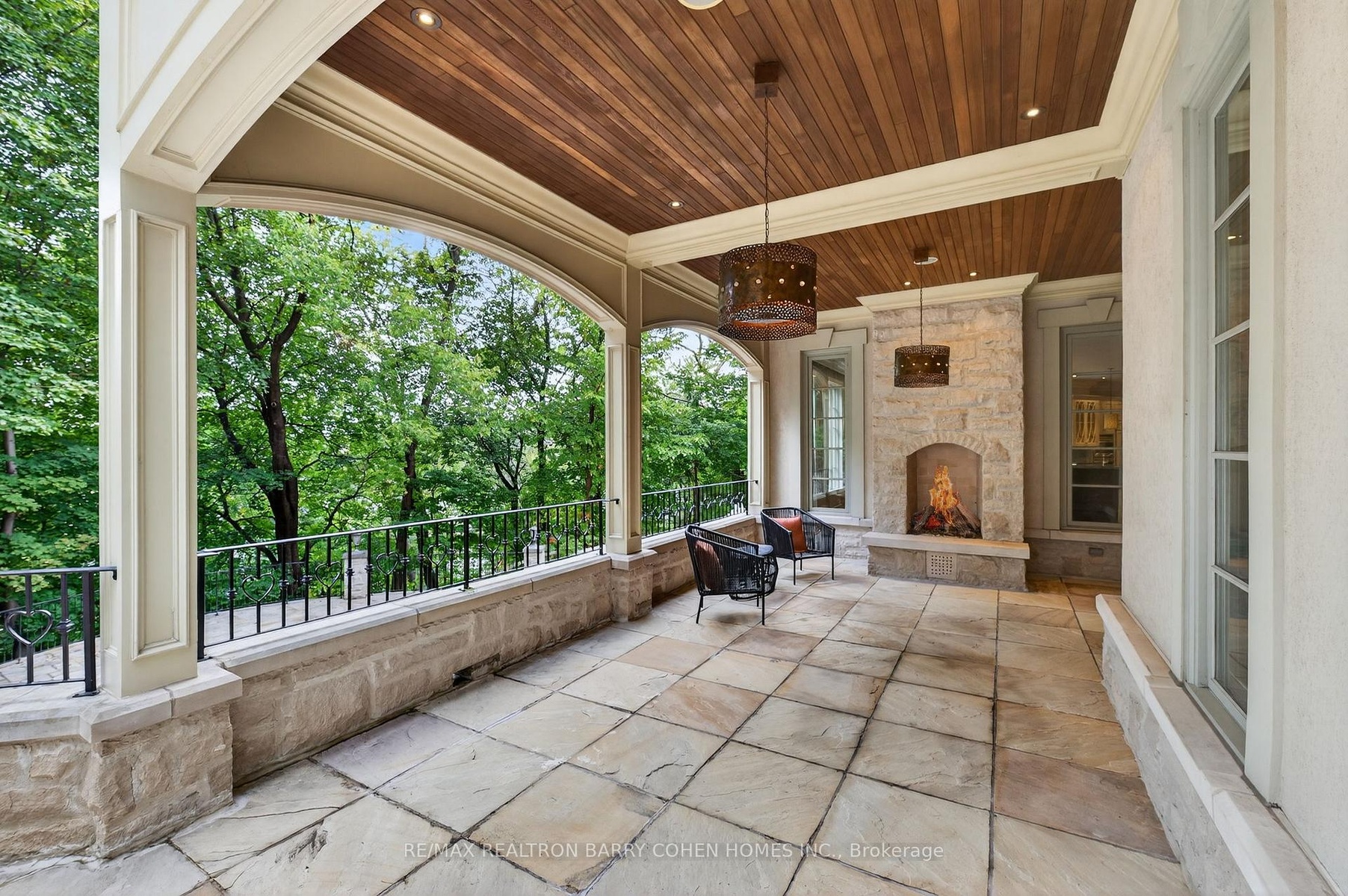 Backs Onto Ravine! Perched gracefully at the highest point of Hoggs Hollow, this French Château inspired masterpiece sits on a spectacular 239.08 x 207.81 ft ravine lot (approx. 1.14 acres). Designed by Dee Dee Taylor Hannah and built by award-winning builder Michael Rossini, this timeless stone estate offers over 10,000 sq.ft. of luxurious living space, blending European elegance with modern comfort. The homes distinctive curved and symmetrical design showcases architectural artistry rarely seen today. Featuring 4 bedrooms with ensuites, 9 washrooms, and a 3-car garage with a circular driveway accommodating up to 15 cars, all principal rooms face west, overlooking the serene ravine. A grand marble foyer, curved hallways, and custom millwork opens to elegant living and dining rooms that walk out to the ravine and garden. Two libraries on main floor, five fireplaces, built-in speakers, 10-ft ceilings, and hardwood floors throughout. The gourmet kitchen with double granite islands and an open-concept family room with motorized curtains creates a warm and inviting space for entertaining.Step out to a 700 sq.ft. patio with outdoor fireplace and panoramic ravine views. The primary suite features a lavish 9-piece ensuite, his & her walk-in closets, and heated bathroom floors. The walk-out lower level wth heated floors includes a home theatre, wine cellar, sauna, wet bar, nanny/guest ensuite, and a recreation room with fireplace opening directly to the backyard oasis.The heated concrete pool with cascading waterfall, framed by mature trees, creates a private, resort-like retreat. A rare offering combining elegance, privacy, and tranquility, just moments from the Granite Club, top private schools (Crescent, TFS, Havergal, UCC, BSS), fine dining, and Rosedale & Don Valley Golf Clubs.A true statement of taste, craftsmanship, and enduring luxury in one of Torontos most prestigious enclaves.