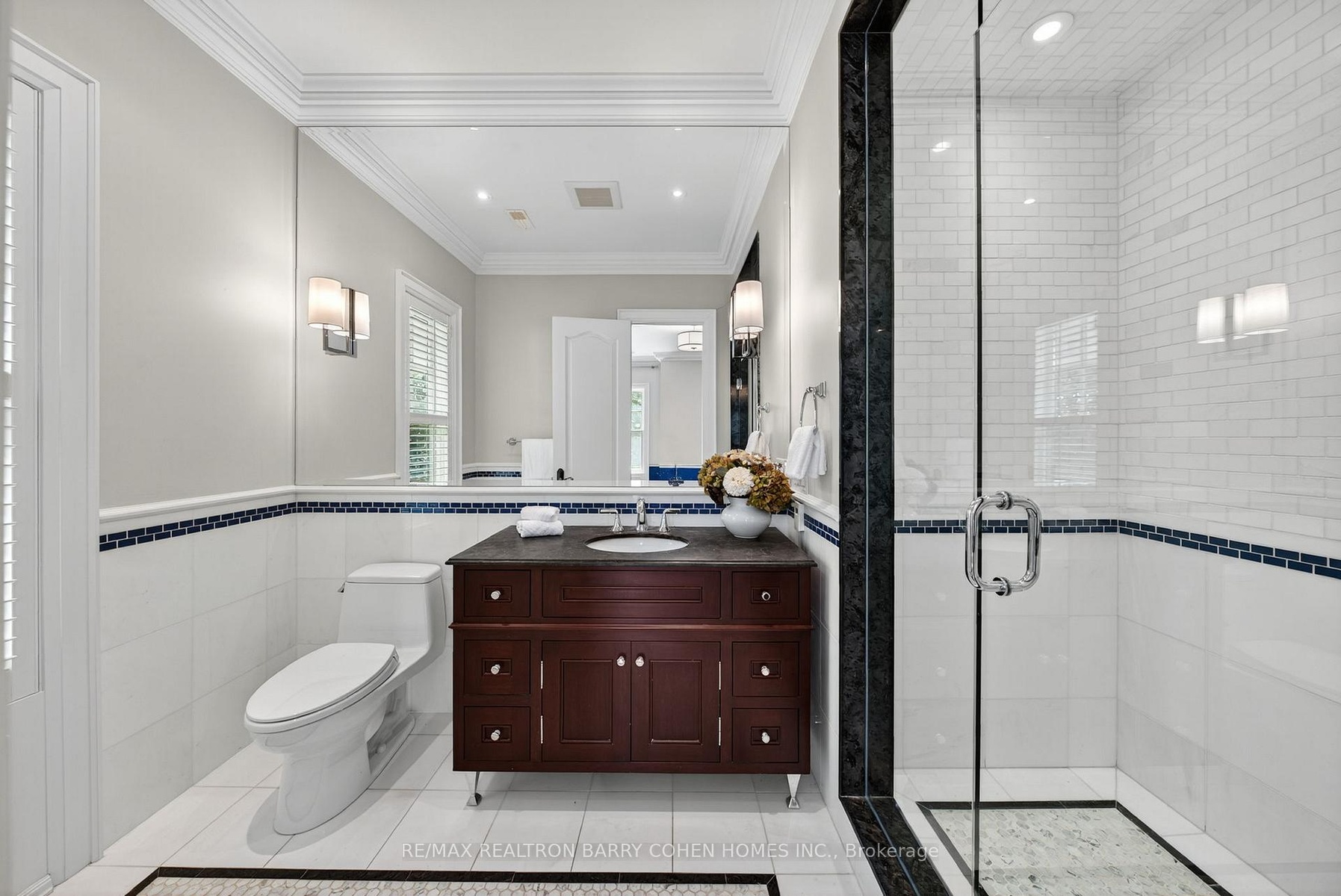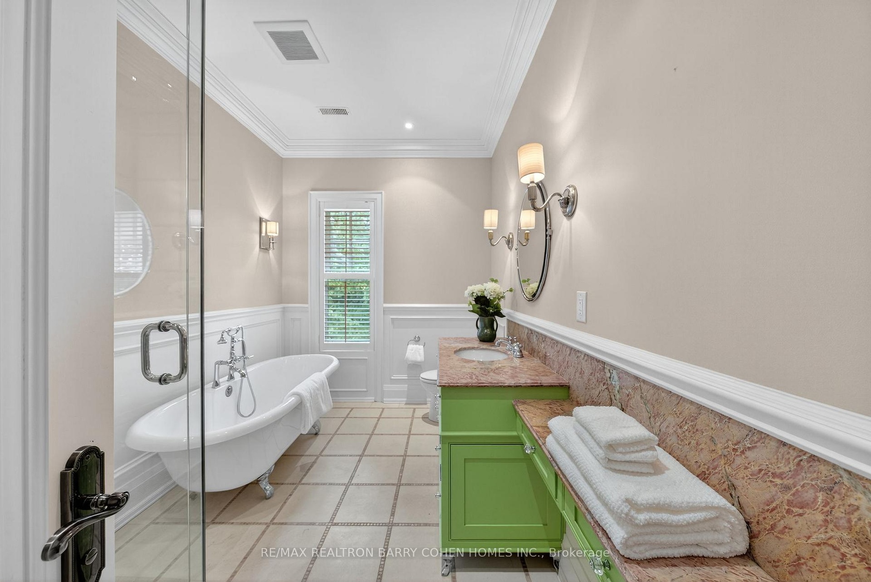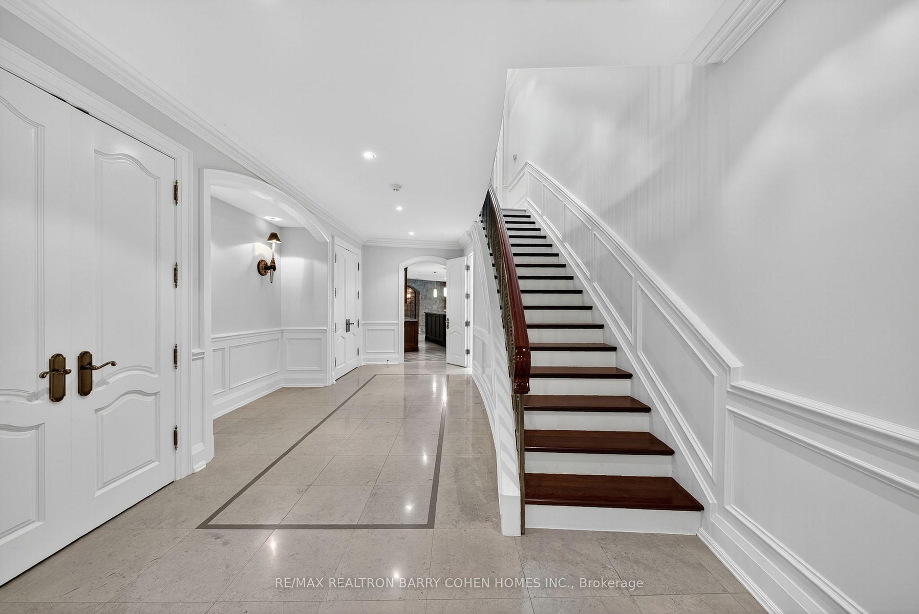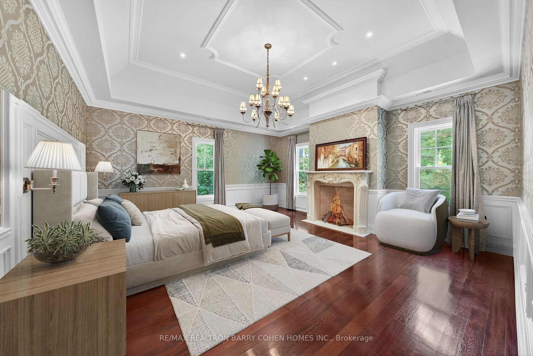 Backs Onto Ravine! Perched gracefully at the highest point of Hoggs Hollow, this French Château inspired masterpiece sits on a spectacular 239.08 x 207.81 ft ravine lot (approx. 1.14 acres). Designed by Dee Dee Taylor Hannah and built by award-winning builder Michael Rossini, this timeless stone estate offers over 10,000 sq.ft. of luxurious living space, blending European elegance with modern comfort. The homes distinctive curved and symmetrical design showcases architectural artistry rarely seen today. Featuring 4 bedrooms with ensuites, 9 washrooms, and a 3-car garage with a circular driveway accommodating up to 15 cars, all principal rooms face west, overlooking the serene ravine. A grand marble foyer, curved hallways, and custom millwork opens to elegant living and dining rooms that walk out to the ravine and garden. Two libraries on main floor, five fireplaces, built-in speakers, 10-ft ceilings, and hardwood floors throughout. The gourmet kitchen with double granite islands and an open-concept family room with motorized curtains creates a warm and inviting space for entertaining.Step out to a 700 sq.ft. patio with outdoor fireplace and panoramic ravine views. The primary suite features a lavish 9-piece ensuite, his & her walk-in closets, and heated bathroom floors. The walk-out lower level wth heated floors includes a home theatre, wine cellar, sauna, wet bar, nanny/guest ensuite, and a recreation room with fireplace opening directly to the backyard oasis.The heated concrete pool with cascading waterfall, framed by mature trees, creates a private, resort-like retreat. A rare offering combining elegance, privacy, and tranquility, just moments from the Granite Club, top private schools (Crescent, TFS, Havergal, UCC, BSS), fine dining, and Rosedale & Don Valley Golf Clubs.A true statement of taste, craftsmanship, and enduring luxury in one of Torontos most prestigious enclaves.