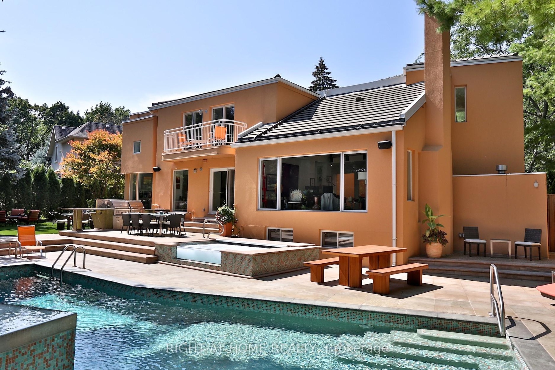 If You're Searching For A Cookie-Cutter Home With No Personality, This Is Not It. But If You Want A Truly One-Of-A-Kind Architectural Statement In One Of The Most Sought-After Pockets Of Etobicoke, Welcome Home! Privately Nestled On A Quiet Cul-De-Sac In Thorncrest Village, This Extraordinary 5+1 Bedroom Residence Is An Architectural Masterpiece Designed By Renowned Architect Rocco Maragna. Originally Built In 1990 And Later Re-Imagined Through An Extensive Renovation And Expansion Personally Supervised By The Architect, The Home Blends The Warmth And Elegance Of Spanish-Revival Architecture With Bold, Avant-Garde, Mid-Century Modern Design. Offering Over 7,500 Square Feet Of Interior Living Space, The Home Features Soaring 17-Foot Ceilings, Expansive Windows And An Open-Concept Layout Filled With Natural Light. Premium Materials Imported From Europe Elevate Every Detail, Including Italian Granite Flooring, Italian Black Lacquer Interior Doors, European Vanities, Porcelain Bathroom Finishes, And A Breathtaking Murano Glass Chandelier Anchoring The Dining Room.The Resort-Style Backyard Is Nothing Short Of Spectacular. Fully Fenced And Professionally Landscaped, It Features An Award-Winning Inground Pool And Spa, Outdoor Kitchen With Two Built-In Lynx Barbecues, And Multiple Entertaining Areas Surrounded By Mature Trees And More Than Ten Varieties Of Rare Japanese Specimens, Including A Prized Shishigashira Maple. Outdoor Stone Imported From Arizona Completes The Setting. Additional Highlights Include A Private Elevator Serving All Three Levels, Two Staircases, A Finished Basement With Above-Grade Windows, Integrated Home Audio, Heated Front Stone Patio, Generator, Irrigation System, Circular Driveway With Parking For Up To Ten Cars, And An Attached Two-Car Garage. Minutes From Transit, Parks, Shops, Schools, Golf Clubs, And Less Than Fifteen Minutes From Pearson Airport, This Is A Rare Offering For Those Who Value Architectural Distinction Without Compromise.