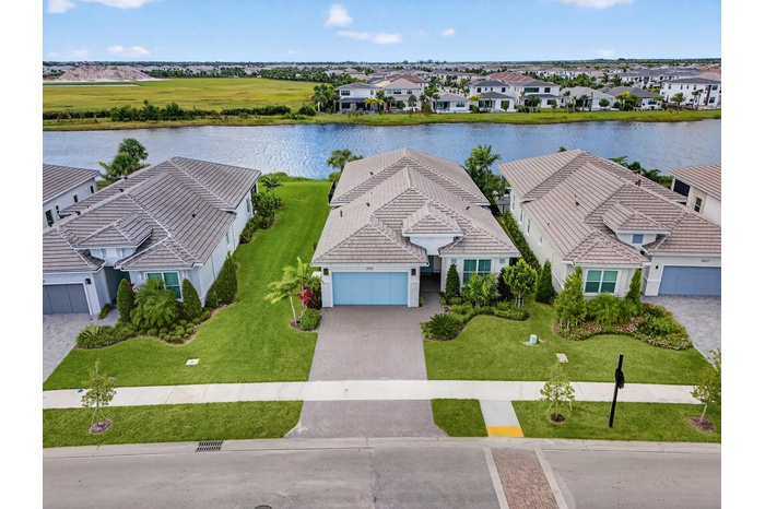 This beautifully appointed 3-bedroom plus office, 3-bath home offers an open and airy floor plan with a bright coastal feel and stunning wide water lake views. Western exposure provides magnificent sunsets that can be enjoyed from the extended lanai patio, creating the perfect setting for entertaining or relaxing by the water. The home features a Tropical-inspired backyard complete with astro turf, a golf putting area, and remote-controlled hurricane patio screens for year-round comfort. Inside, every detail has been thoughtfully upgraded, whole house, Generac Generator, oversized 8-blade ceiling fans with lights in the living areas, bedrooms, and patio, custom blinds on all windows, upgraded light fixtures, and an oversized jetted tub in the primary suite and comfort height toilets. Additional enhancements include, gas fireplace with remote control, extended garage with an additional two feet of height clearance to accommodate large vehicles, finished epoxy garage floor, and custom exterior lighting on a programmable timer. Technology upgrades include extended Wi-Fi coverage to the patio with security monitoring and a zoom feature accessible by phone, along with an upgraded electronic front door lock and doorbell cameras for convenience and peace of mind. All front and back pavers have been professionally glazed, completing the polished look of this exceptional property. Furniture is negotiable, offering the opportunity for a seamless, move-in-ready experience. Experience private, resort-style living at its finest in this vibrant Regency Avenir community. Located in the sought-after Palm Beach Gardens, this community blends contemporary home designs with exceptional amenities, all set in a relaxed and inviting atmosphere. Residents of Regency at Avenir in sought after Palm Beach Gardens enjoy exclusive access to The Pearl, the community's 22,000 sqft private clubhouse offering an onsite activities director, a wide array of special interest clubs, activities, and events. Amenities at The Pearl include a picturesque resort-style pool, spa, pickleball, tennis, two fitness centers, wine storage, card and game rooms, ball room, indoor/outdoor lounge, a golf simulator, outdoor amphitheater, outdoor game area and much more. Conveniently located near Sand Hill Crane Golf Club an 18-hole championship course, The new Nest Par 3 Course and various dining options. Across the street is PGA National's Estate Course, with membership options available. Minutes away from shopping, dining, the Airport, Palm Beach and so much more.