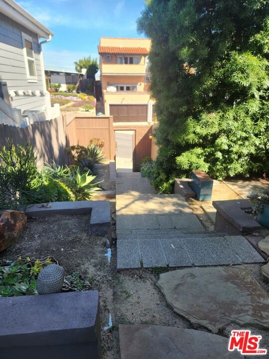 Nestled in the peaceful beachside community of Playa Del Rey, this ideally situated home is just blocks from the Pacific Ocean and Dockweiler Beach, with Manhattan and Hermosa Beach to the north and Marina Del Rey and Venice Beach to the south. Step through the front gate of this two-story home and up to a Zen-inspired patio, perfect for unwinding with a book or entertaining friends in your private hilltop retreat. Inside, a short hallway opens to a bright, airy living room with a coastal white stone fireplace, while the dining area offers west-facing views of the spacious backyard and ocean. The lower level features CoreTec floors with original hardwood underneath. The updated kitchen boasts a new Sub-Zero refrigerator, 6-burner stove with range hood, river rock countertops, and quality wood cabinets with lazy Susans, plus a pantry, built-in desk, seating for three, and a space for the side-by-side washer and dryer. A first-floor bedroom, ideal as a den or office, is paired with a 3/4 bath. Upstairs, the primary bedroom offers ocean views and stunning sunsets, while the second bedroom captures treetop and city views with the morning sunrise. Sliding doors from the living room lead to a grassy backyard and a raised Trex patio platform imperfect for soaking in elevated ocean views. There's room for a pool, built-in BBQ, and more. A truly unique place to call home. Won't last!
