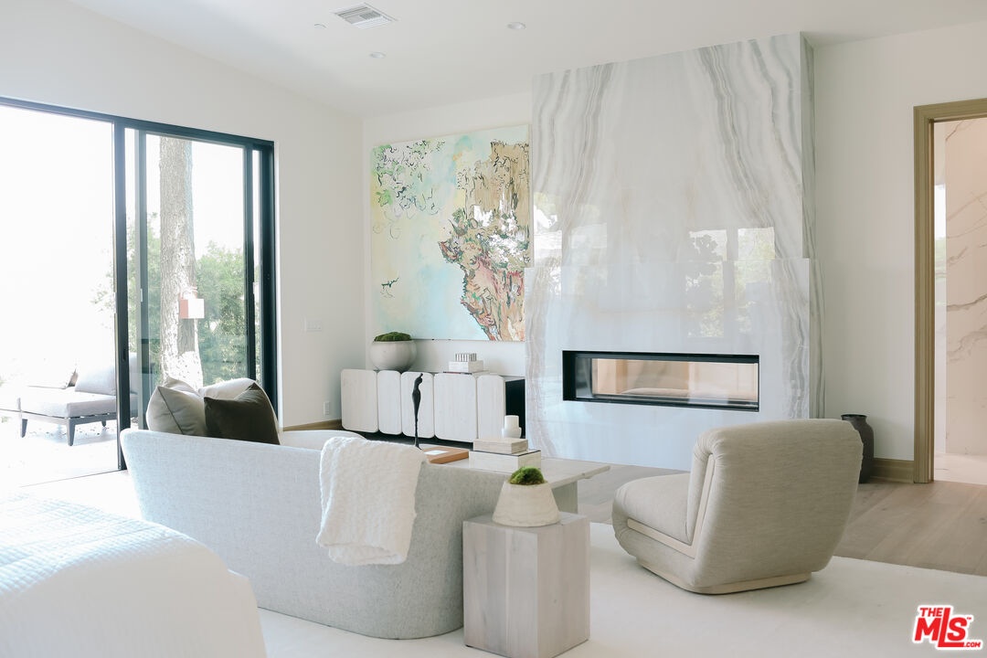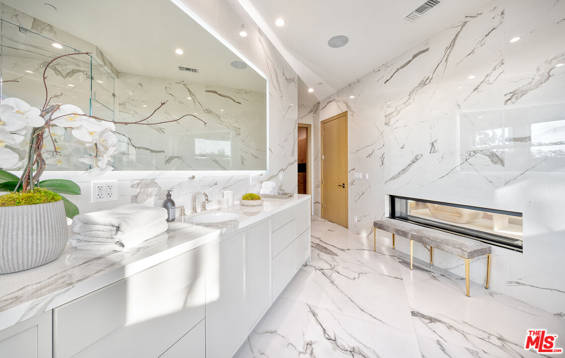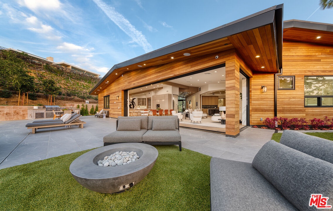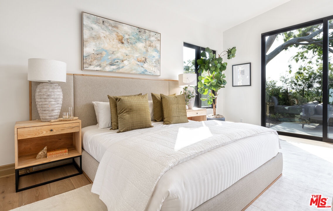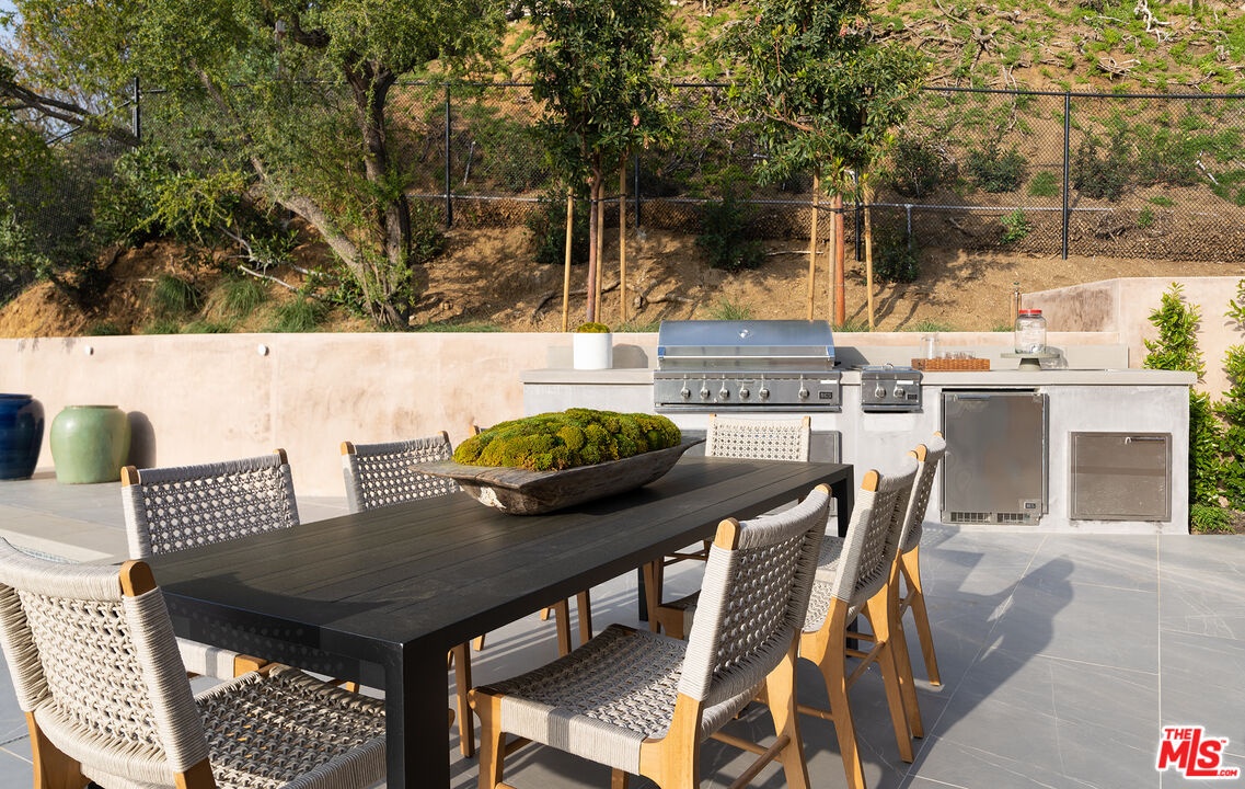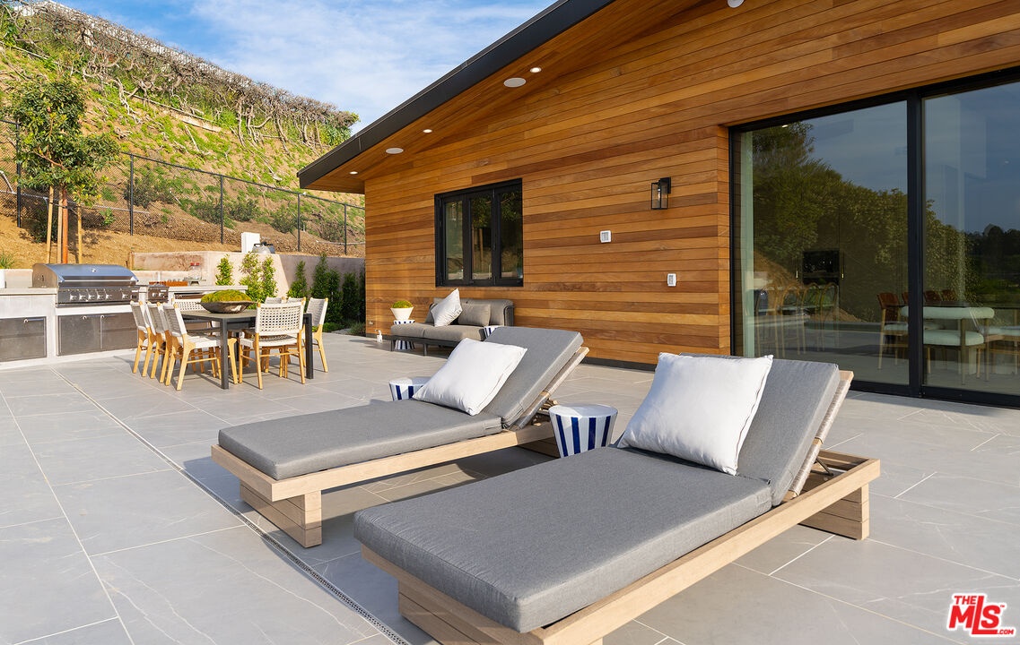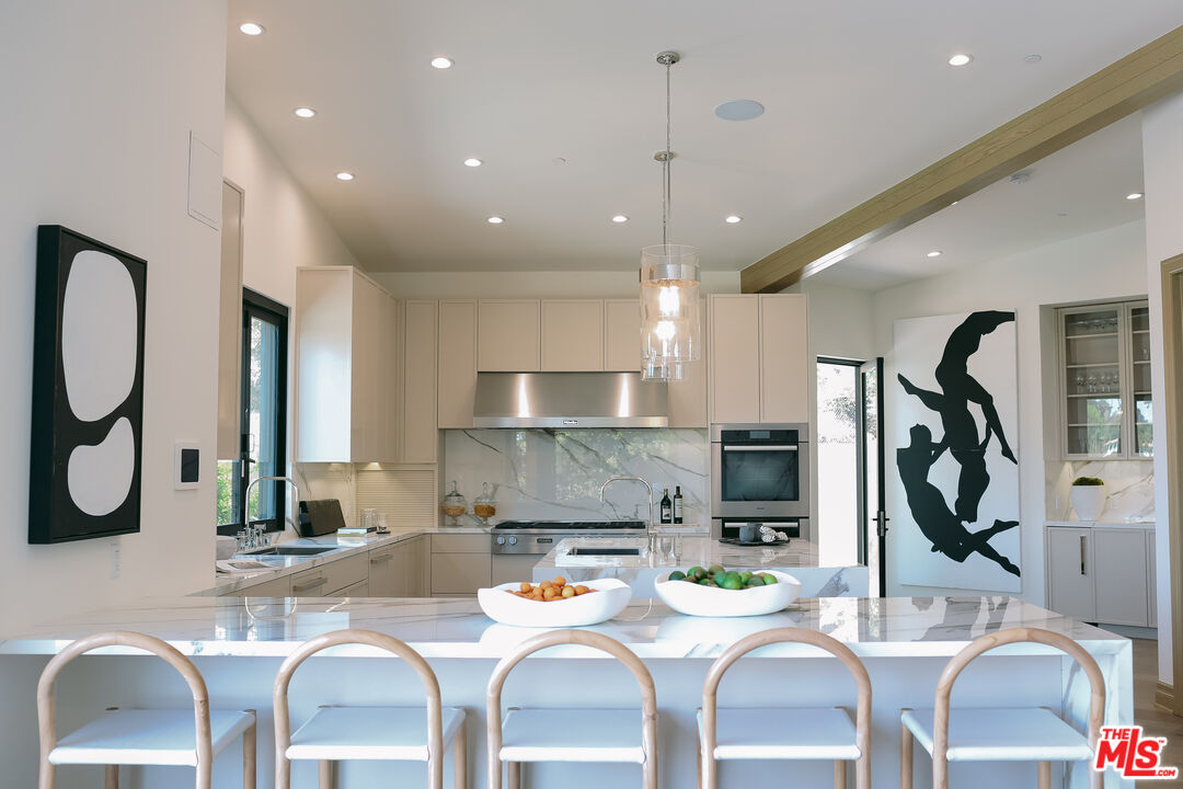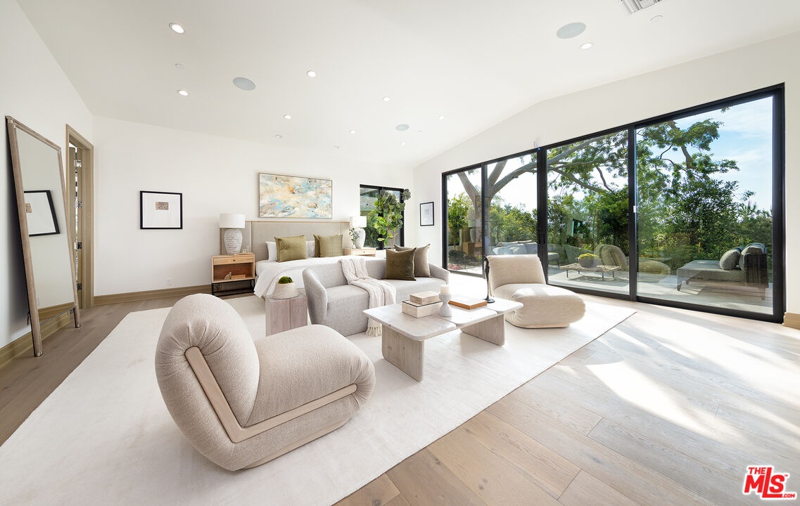 The Janice Place Estate is a brand-new single-story contemporary masterpiece in Beverly Hills 90210 post office, perfectly situated on a serene cul-de-sac one block north of the legendary Trousdale Estates and minutes from Bel Air. Set on a nearly 29,000-square-foot lot, this brand new construction residence spans 6,194 square feet with 6 en-suite bedrooms, 9 bathrooms, and a seamless open floor plan designed for quiet luxury living and world-class entertaining. Floor-to-ceiling automated glass doors dissolve the boundary between indoors and out, opening to a private backyard paradise with an infinity-edge pool, heated spa, waterfall, fire pit, and sweeping canyon views framed by mature trees and lush landscaping. The chef's kitchen features Miele appliances, dual ovens, two dishwashers, built-in espresso maker, Calacatta Borghini waterfall islands, custom cabinetry, walk-in pantry, full wet bar, and a temperature-controlled glass wine room. European hardwood floors flow throughout. The media room features a wide electric fireplace and matchbook porcelain feature wall, converting effortlessly from an open entertainment space to an intimate home theater.The grand primary suite is a private sanctuary with a pearl onyx double-sided fireplace, seating area, private patio, and dual spa-caliber bathrooms each with a soaking tub, steam shower, and walk-in closet. Five additional bedroom suites offer flexible configurations for family, guests, home office, gym, yoga studio, or au-pair quarters. Outside is an entertainer's dream with a custom barbecue station, multiple lounge areas, and a fire pit surrounded by breathtaking canyon scenery. Delivered turnkey with curated interior design and a one-of-a-kind art collection (available for purchase), Sonos Arc whole-home sound, app controlled home technology, and a comprehensive ring camera security system. For those seeking a new construction Beverly Hills PO mansion, a luxury estate near Trousdale Estates, or a private canyon-view home comparable to Bel Air's finest the Janice Place Estate is the quiet luxury escape you have been looking for.