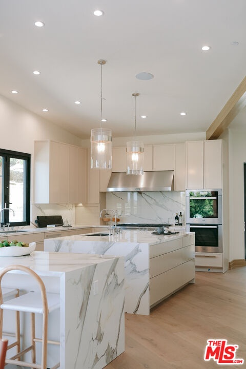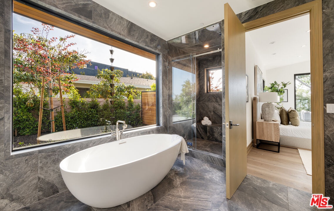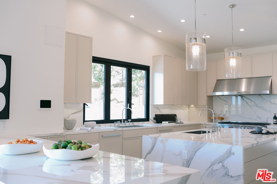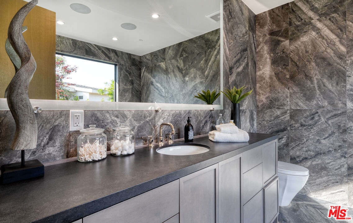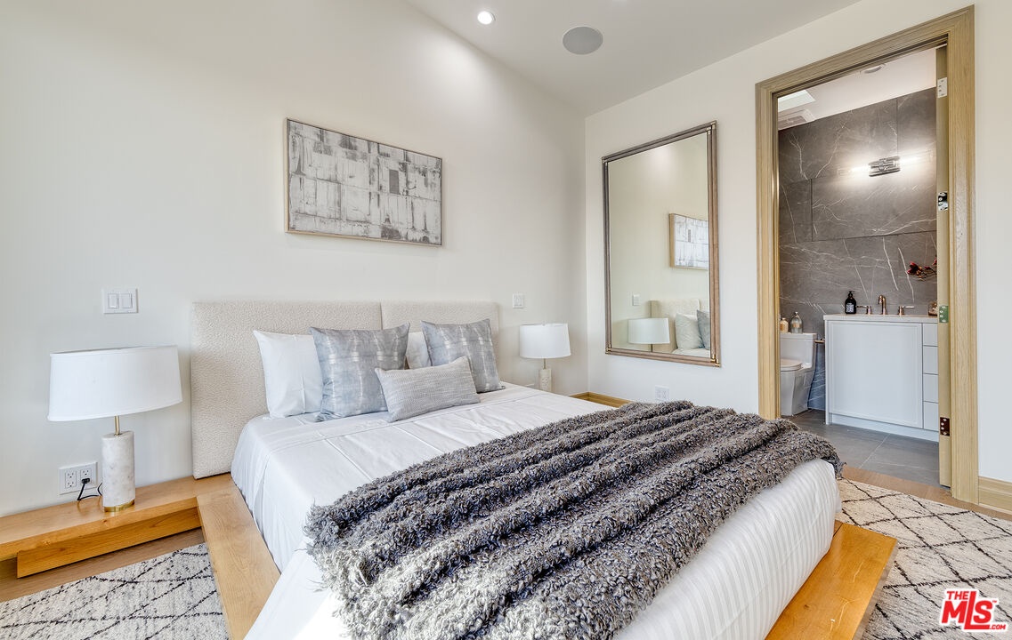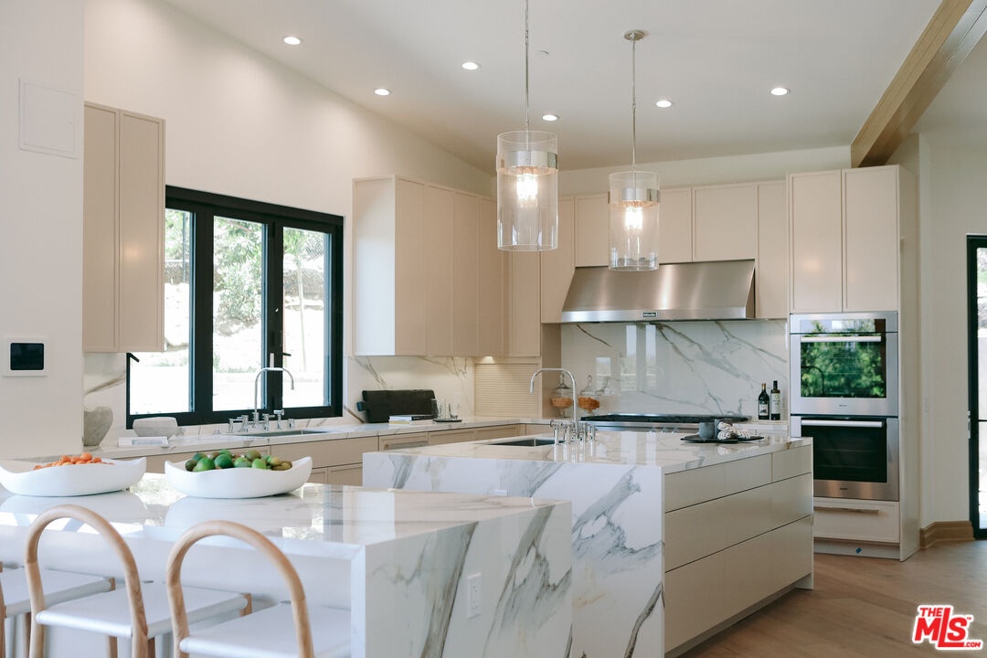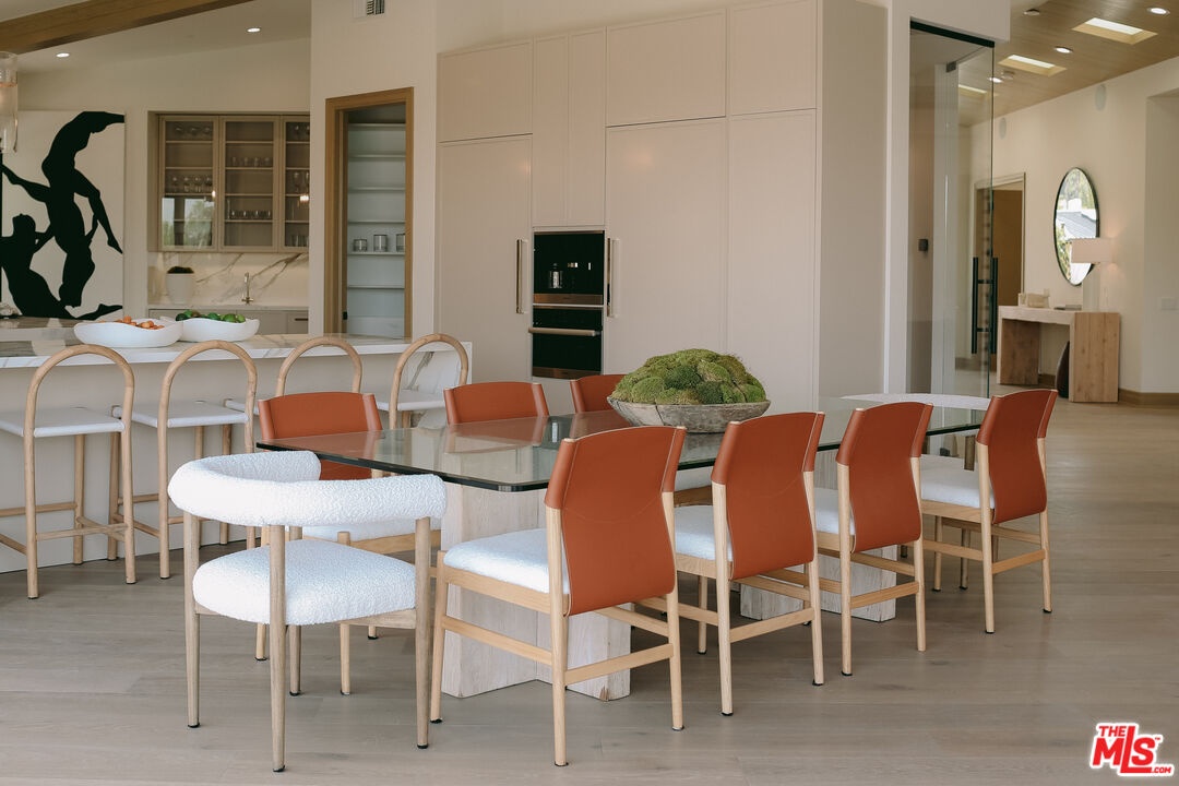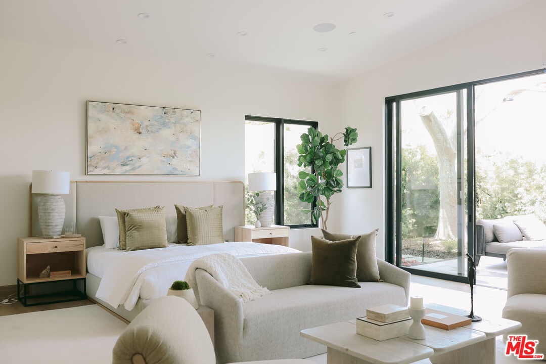 The Janice Place Estate is a brand-new single-story contemporary masterpiece in Beverly Hills 90210 post office, perfectly situated on a serene cul-de-sac one block north of the legendary Trousdale Estates and minutes from Bel Air. Set on a nearly 29,000-square-foot lot, this brand new construction residence spans 6,194 square feet with 6 en-suite bedrooms, 9 bathrooms, and a seamless open floor plan designed for quiet luxury living and world-class entertaining. Floor-to-ceiling automated glass doors dissolve the boundary between indoors and out, opening to a private backyard paradise with an infinity-edge pool, heated spa, waterfall, fire pit, and sweeping canyon views framed by mature trees and lush landscaping. The chef's kitchen features Miele appliances, dual ovens, two dishwashers, built-in espresso maker, Calacatta Borghini waterfall islands, custom cabinetry, walk-in pantry, full wet bar, and a temperature-controlled glass wine room. European hardwood floors flow throughout. The media room features a wide electric fireplace and matchbook porcelain feature wall, converting effortlessly from an open entertainment space to an intimate home theater.The grand primary suite is a private sanctuary with a pearl onyx double-sided fireplace, seating area, private patio, and dual spa-caliber bathrooms each with a soaking tub, steam shower, and walk-in closet. Five additional bedroom suites offer flexible configurations for family, guests, home office, gym, yoga studio, or au-pair quarters. Outside is an entertainer's dream with a custom barbecue station, multiple lounge areas, and a fire pit surrounded by breathtaking canyon scenery. Delivered turnkey with curated interior design and a one-of-a-kind art collection (available for purchase), Sonos Arc whole-home sound, app controlled home technology, and a comprehensive ring camera security system. For those seeking a new construction Beverly Hills PO mansion, a luxury estate near Trousdale Estates, or a private canyon-view home comparable to Bel Air's finest the Janice Place Estate is the quiet luxury escape you have been looking for.