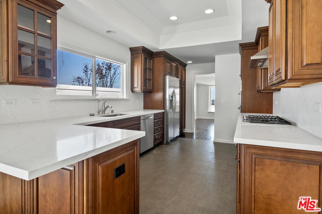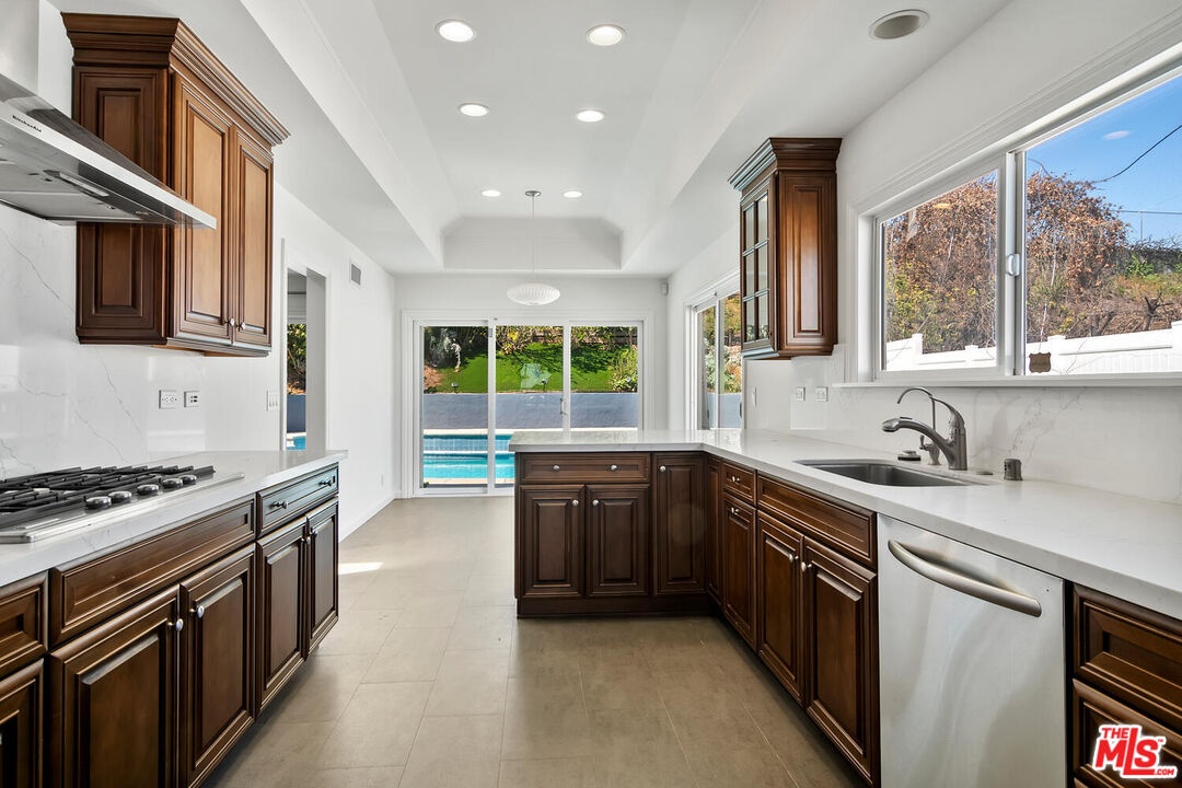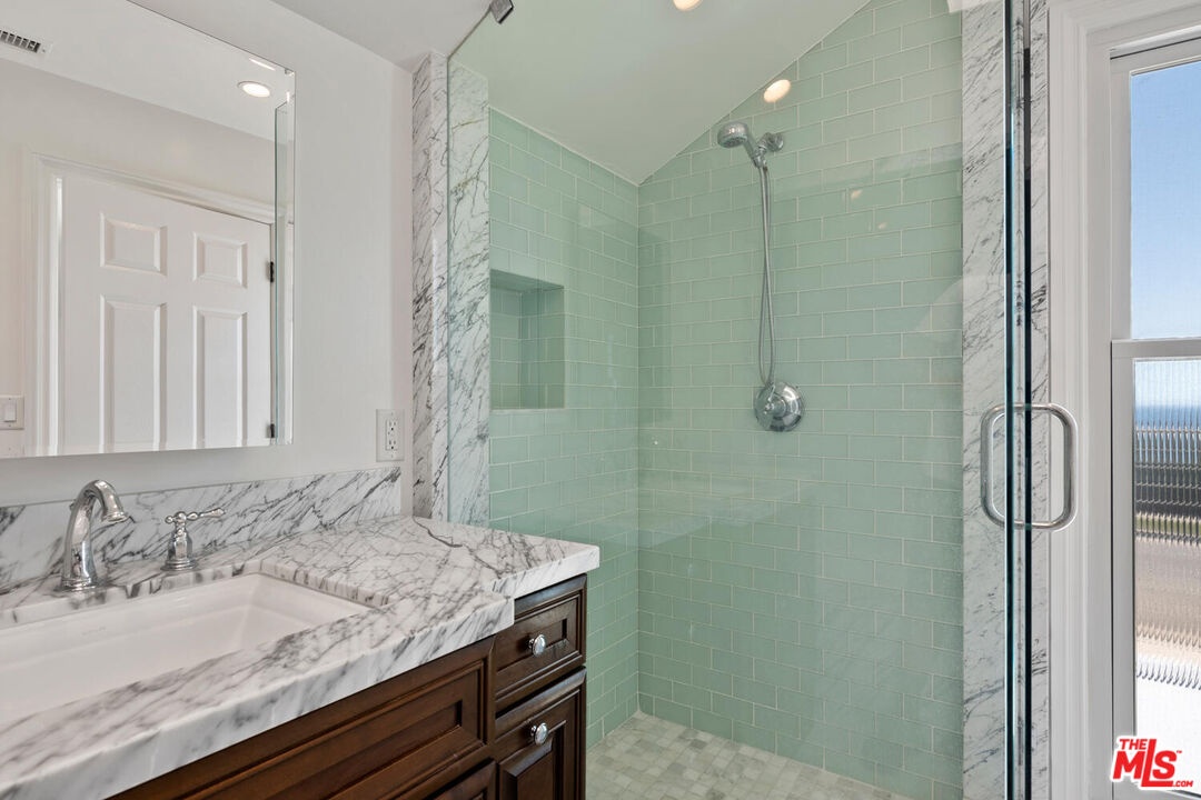 This elegant home is perched in Malibu's coveted Sunset Mesa neighborhood with sweeping ocean views and luxurious features throughout. Enter into the living room with soaring cathedral ceilings, skylight, and a contemporary fireplace. The formal dining room boasts ocean views and leads to a spacious kitchen with Lagos Azul countertops, custom cabinetry, and stainless steel appliances. Enjoy seamless indoor-outdoor living with a resort-style backyard featuring a sparkling pool, outdoor BBQ station, and an elevated ocean-view deck perfect for sunsets and entertaining. The primary suite offers a peaceful ocean-facing retreat with en-suite bath. Hardwood floors, modern lighting, and an indoor laundry room with utility sink complete the home. Close to the beach. Available now.