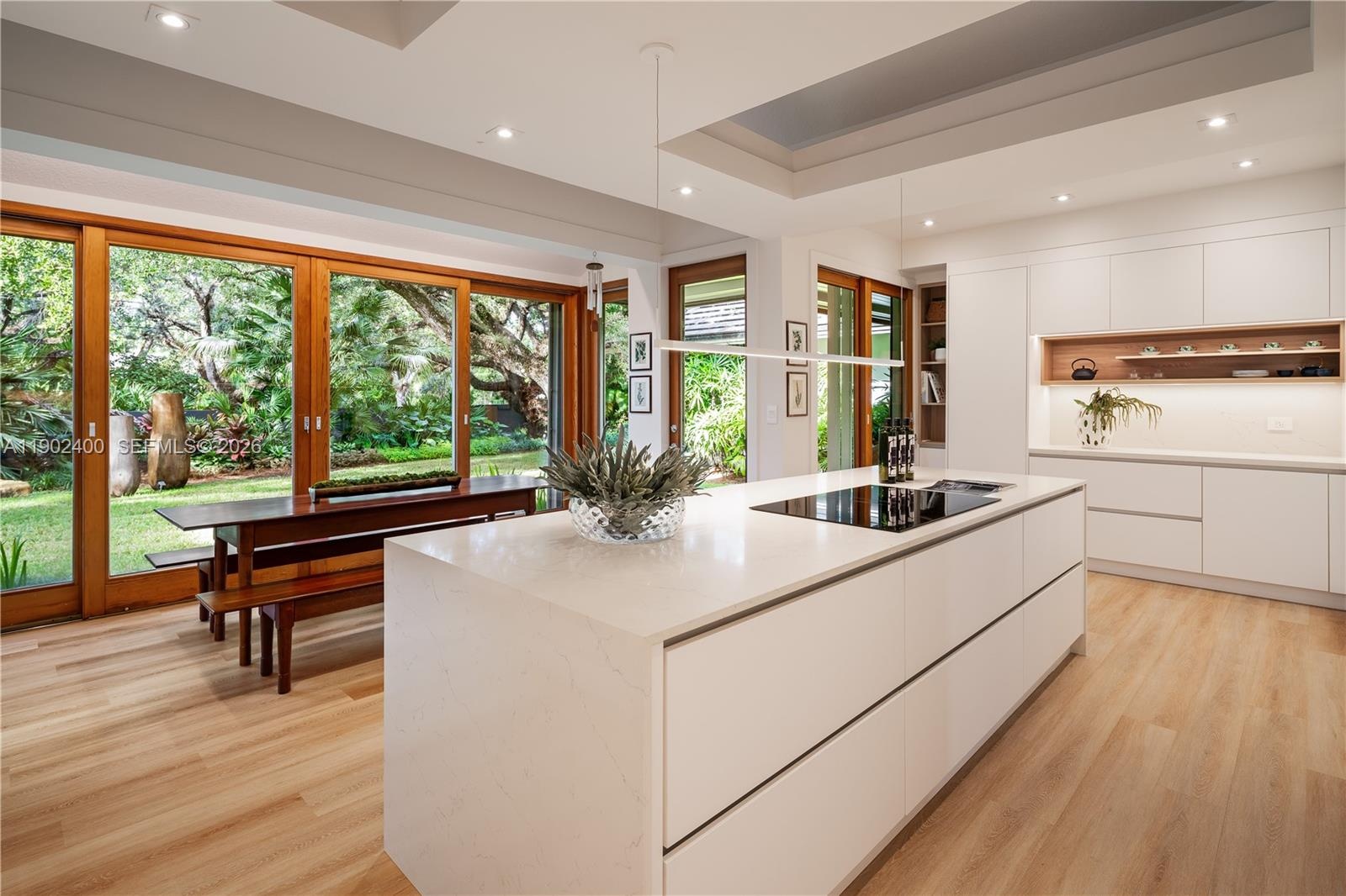 Welcome to an enchanting lakefront residence nestled within the prestigious gated enclave of Banyan Drive in Coral Gables. Remodeled in 2024, this spectacular contemporary estate offers 6,239 square feet under air, w/7,611 total square feet, set on over an acre of lush grounds graced w/majestic oak trees & sweeping water views. Hand-picked by the owner for its expansive lake vistas & the pleasure of continuous prevailing breezes, this elevated architectural masterpiece harmonizes seamlessly w/its natural surroundings & features an exceptionally low carbon footprint. Warm wood floors, brand-new chef’s kitchen, new spa-inspired baths, & multiple entertaining spaces create a refined yet relaxed atmosphere. Each room is thoughtfully designed to capture abundant natural light & frame breathtaking views of the tranquil lake & verdant landscape. The home’s exceptional orientation & generous outdoor areas make it ideal for both intimate gatherings & grand-scale entertaining w/indoor & outdoor surround sound. Experience nature’s beauty w/early morning sails & sunset kayak rides from your own backyard, embracing a lifestyle that blends elegance, comfort, & recreation. Ideally located near Miami’s finest private schools, this Coral Gables address is uniquely served by Pinecrest Elementary, offering an exceptional educational advantage. This remarkable residence embodies a lifetime of elegance, serenity, & distinction in one of the most coveted lakefront settings. A Very Special Home.