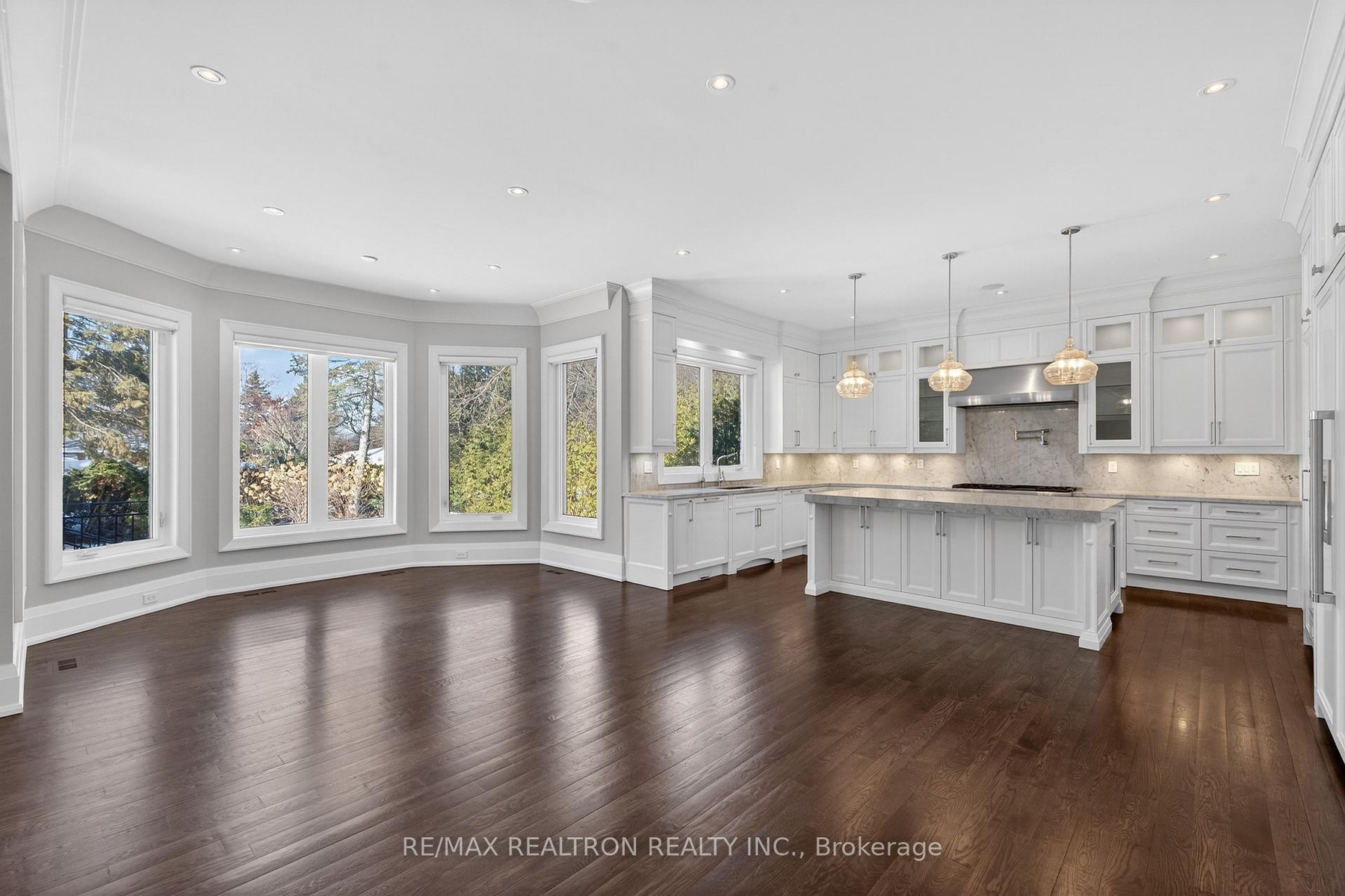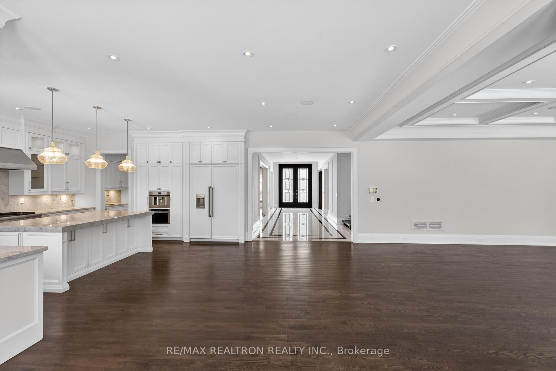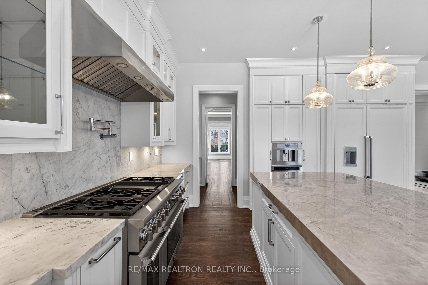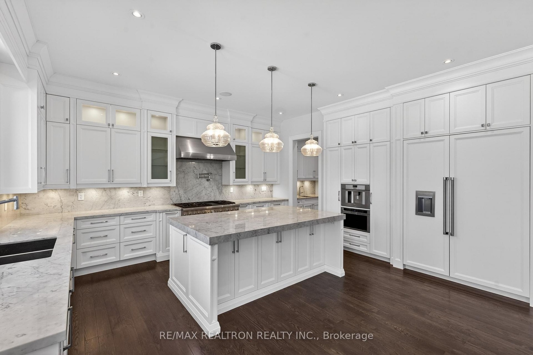 A statement of craftsmanship and prestige by one of the area's premier luxury custom builders. This 2019-built private executive estate showcases impeccable construction, refined architectural detail, and timeless design throughout. Set on a professionally landscaped 100' x 150' lot, the limestone exterior makes an immediate and lasting impression.Offering over 8,000 sq ft of luxury living space with soaring 10 ft main-floor ceilings, the home is designed for both elevated daily living and grand entertaining. The chef's kitchen is equipped with premium Thermador appliances and custom cabinetry, seamlessly flowing into elegant principal rooms anchored by a striking custom leaded-glass skylight.Resort-style amenities include a private home theatre, fitness room, and expansive recreation room with wet bar. Heated floors enhance comfort across the main level tiled areas and the finished lower level, which also features a walk-up for exceptional versatility and indoor-outdoor connectivity.The primary retreat features two walk-in closets and a spa-inspired ensuite with steam shower. All five upper-level bedrooms include private ensuites. A rare 1,100 sq ft heated five-car garage offers exceptional space, including potential for boat parking.Outfitted with Control4 home automation, integrated security, central vacuum, irrigation system, multiple HVAC zones, wine fridges, and full laundry on multiple levels-every detail reflects quality, performance, and longevity.Ideally located in the heart of Thornhill, just minutes to Yonge Street and Highway 7. Close to top-ranked public and private schools, including Thornhill S.S., Thornlea S.S., and Lauremont School. Easy access to Highways 407 and 404, Langstaff GO Station, premier shopping, fine dining, golf, ski clubs, and parks.A rare offering where superior workmanship, architectural presence, and a blue-chip location converge.