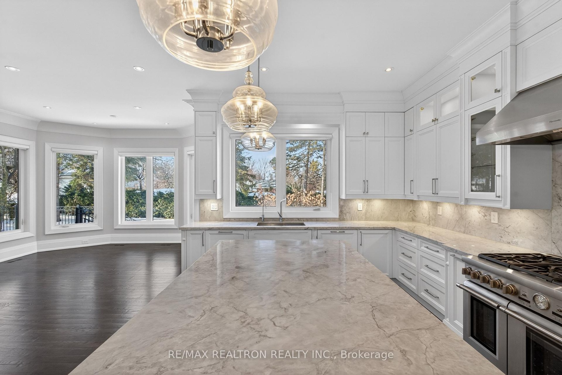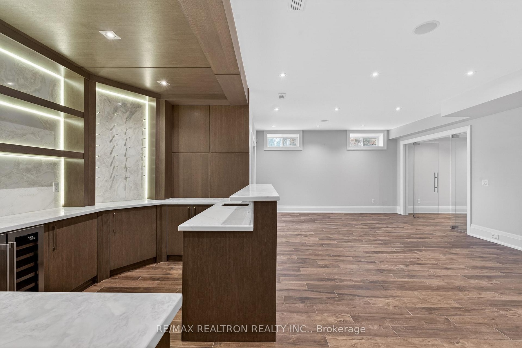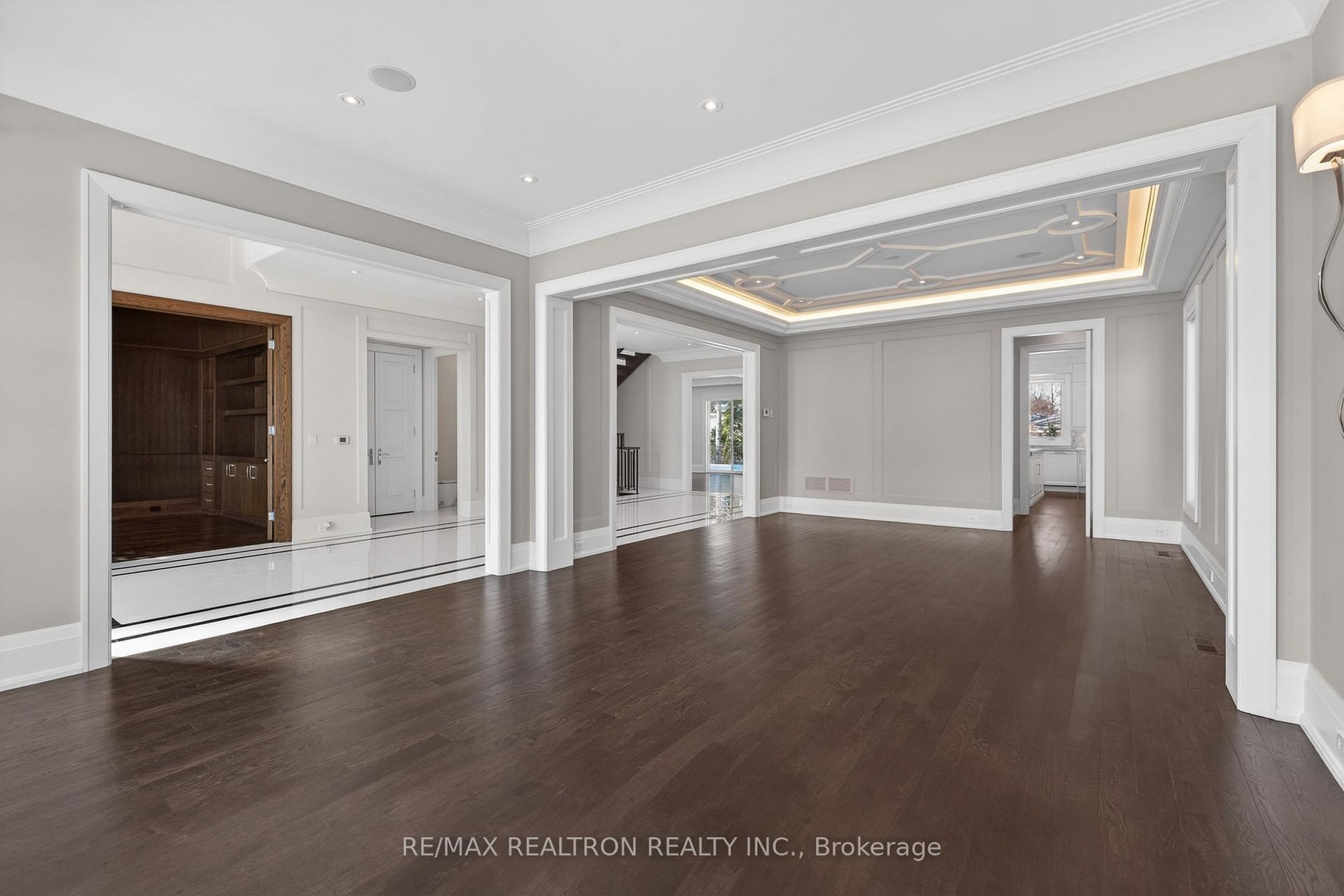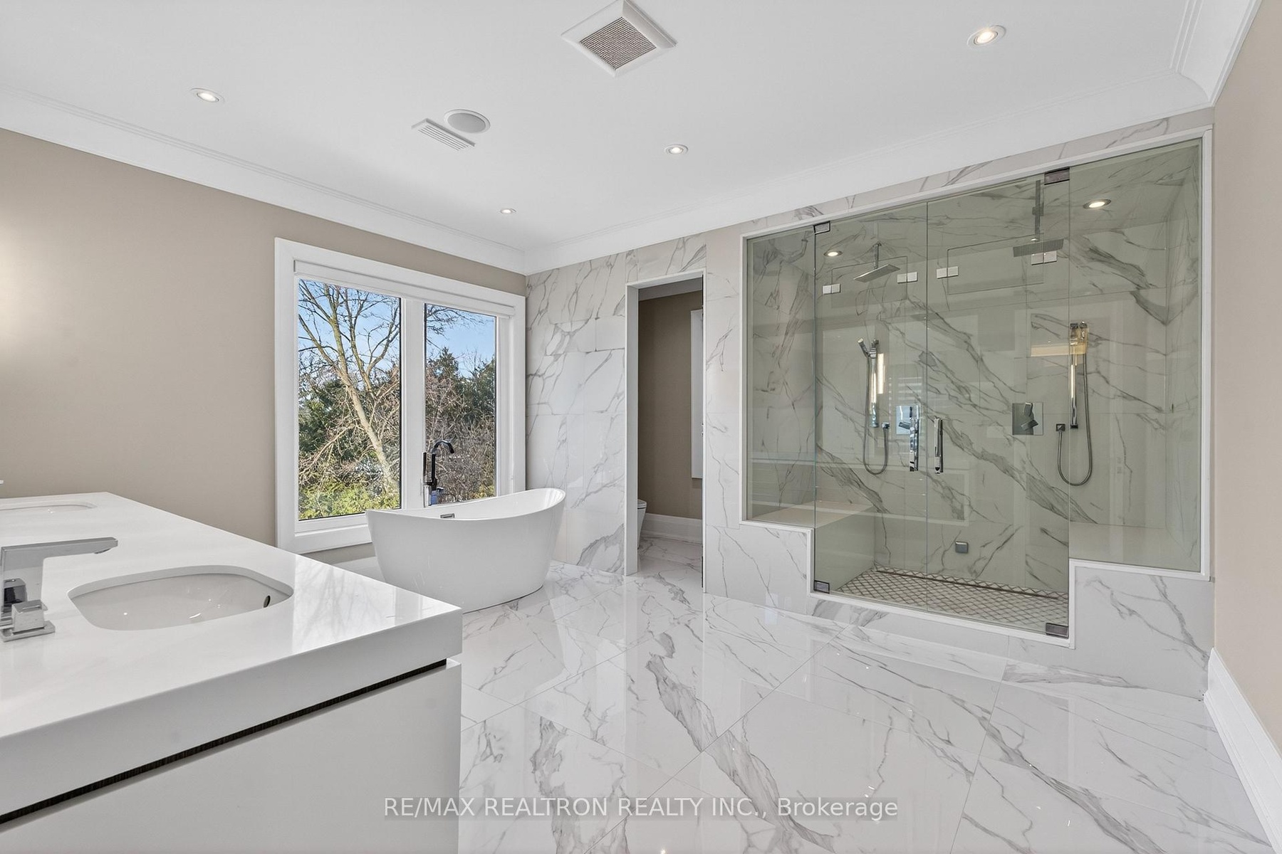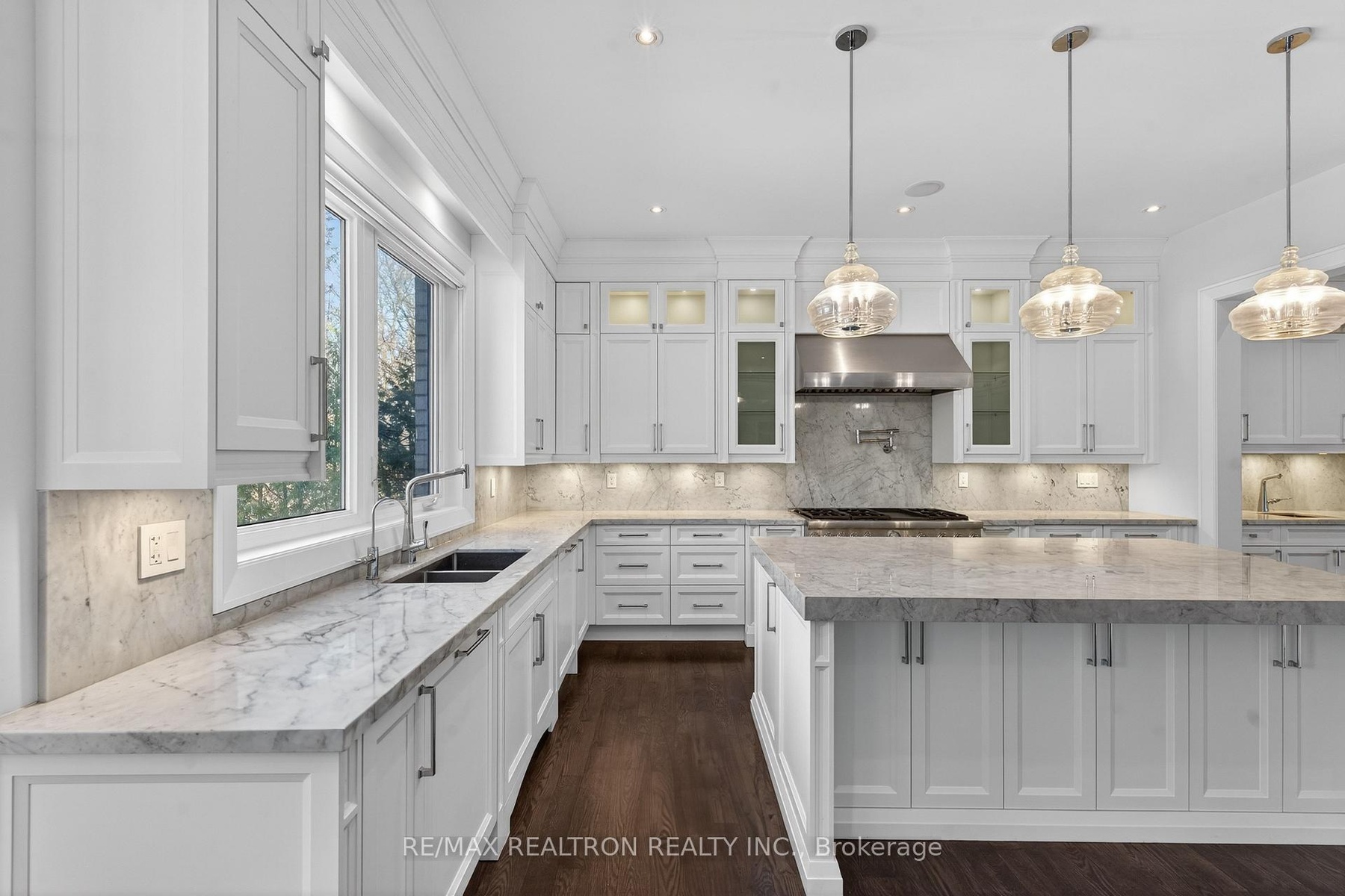 A statement of craftsmanship and prestige by one of the area's premier luxury custom builders. This 2019-built private executive estate showcases impeccable construction, refined architectural detail, and timeless design throughout. Set on a professionally landscaped 100' x 150' lot, the limestone exterior makes an immediate and lasting impression.Offering over 8,000 sq ft of luxury living space with soaring 10 ft main-floor ceilings, the home is designed for both elevated daily living and grand entertaining. The chef's kitchen is equipped with premium Thermador appliances and custom cabinetry, seamlessly flowing into elegant principal rooms anchored by a striking custom leaded-glass skylight.Resort-style amenities include a private home theatre, fitness room, and expansive recreation room with wet bar. Heated floors enhance comfort across the main level tiled areas and the finished lower level, which also features a walk-up for exceptional versatility and indoor-outdoor connectivity.The primary retreat features two walk-in closets and a spa-inspired ensuite with steam shower. All five upper-level bedrooms include private ensuites. A rare 1,100 sq ft heated five-car garage offers exceptional space, including potential for boat parking.Outfitted with Control4 home automation, integrated security, central vacuum, irrigation system, multiple HVAC zones, wine fridges, and full laundry on multiple levels-every detail reflects quality, performance, and longevity.Ideally located in the heart of Thornhill, just minutes to Yonge Street and Highway 7. Close to top-ranked public and private schools, including Thornhill S.S., Thornlea S.S., and Lauremont School. Easy access to Highways 407 and 404, Langstaff GO Station, premier shopping, fine dining, golf, ski clubs, and parks.A rare offering where superior workmanship, architectural presence, and a blue-chip location converge.