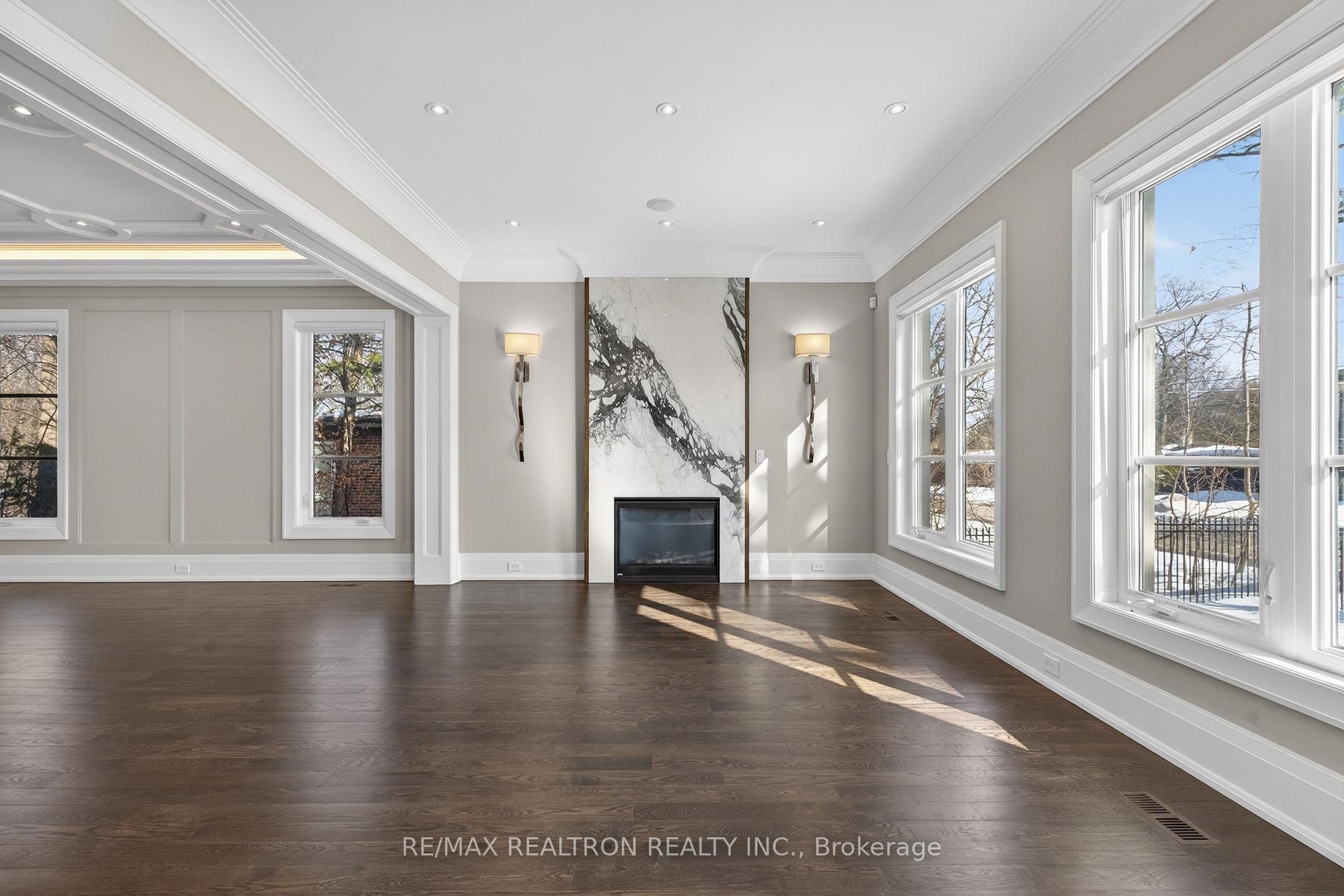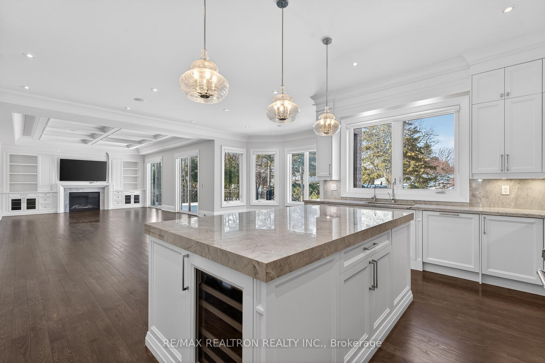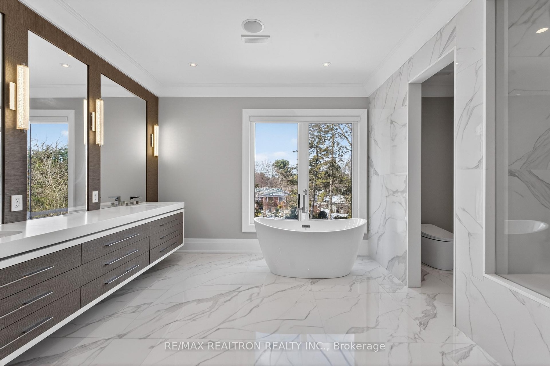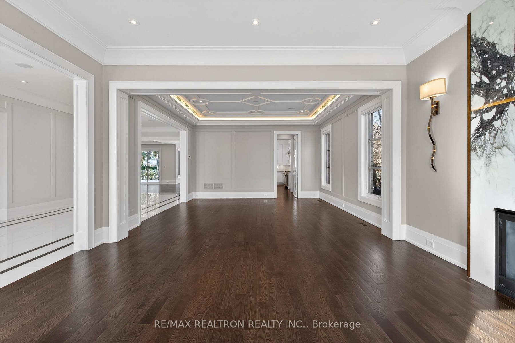 A statement of craftsmanship and prestige by one of the area's premier luxury custom builders. This 2019-built private executive estate showcases impeccable construction, refined architectural detail, and timeless design throughout. Set on a professionally landscaped 100' x 150' lot, the limestone exterior makes an immediate and lasting impression.Offering over 8,000 sq ft of luxury living space with soaring 10 ft main-floor ceilings, the home is designed for both elevated daily living and grand entertaining. The chef's kitchen is equipped with premium Thermador appliances and custom cabinetry, seamlessly flowing into elegant principal rooms anchored by a striking custom leaded-glass skylight.Resort-style amenities include a private home theatre, fitness room, and expansive recreation room with wet bar. Heated floors enhance comfort across the main level tiled areas and the finished lower level, which also features a walk-up for exceptional versatility and indoor-outdoor connectivity.The primary retreat features two walk-in closets and a spa-inspired ensuite with steam shower. All five upper-level bedrooms include private ensuites. A rare 1,100 sq ft heated five-car garage offers exceptional space, including potential for boat parking.Outfitted with Control4 home automation, integrated security, central vacuum, irrigation system, multiple HVAC zones, wine fridges, and full laundry on multiple levels-every detail reflects quality, performance, and longevity.Ideally located in the heart of Thornhill, just minutes to Yonge Street and Highway 7. Close to top-ranked public and private schools, including Thornhill S.S., Thornlea S.S., and Lauremont School. Easy access to Highways 407 and 404, Langstaff GO Station, premier shopping, fine dining, golf, ski clubs, and parks.A rare offering where superior workmanship, architectural presence, and a blue-chip location converge.