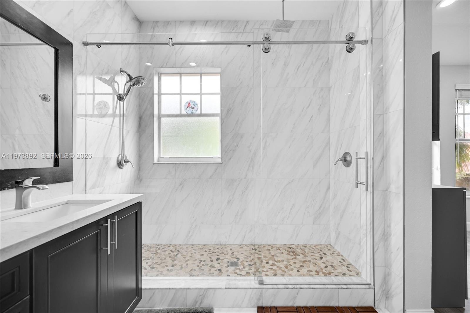 The main bathroom has been completely remodeled, offering a luxurious spa-like retreat with premium finishes and contemporary style. Spacious bedrooms provide comfort and versatility, making this home ideal for those needing extra room to relax or work.