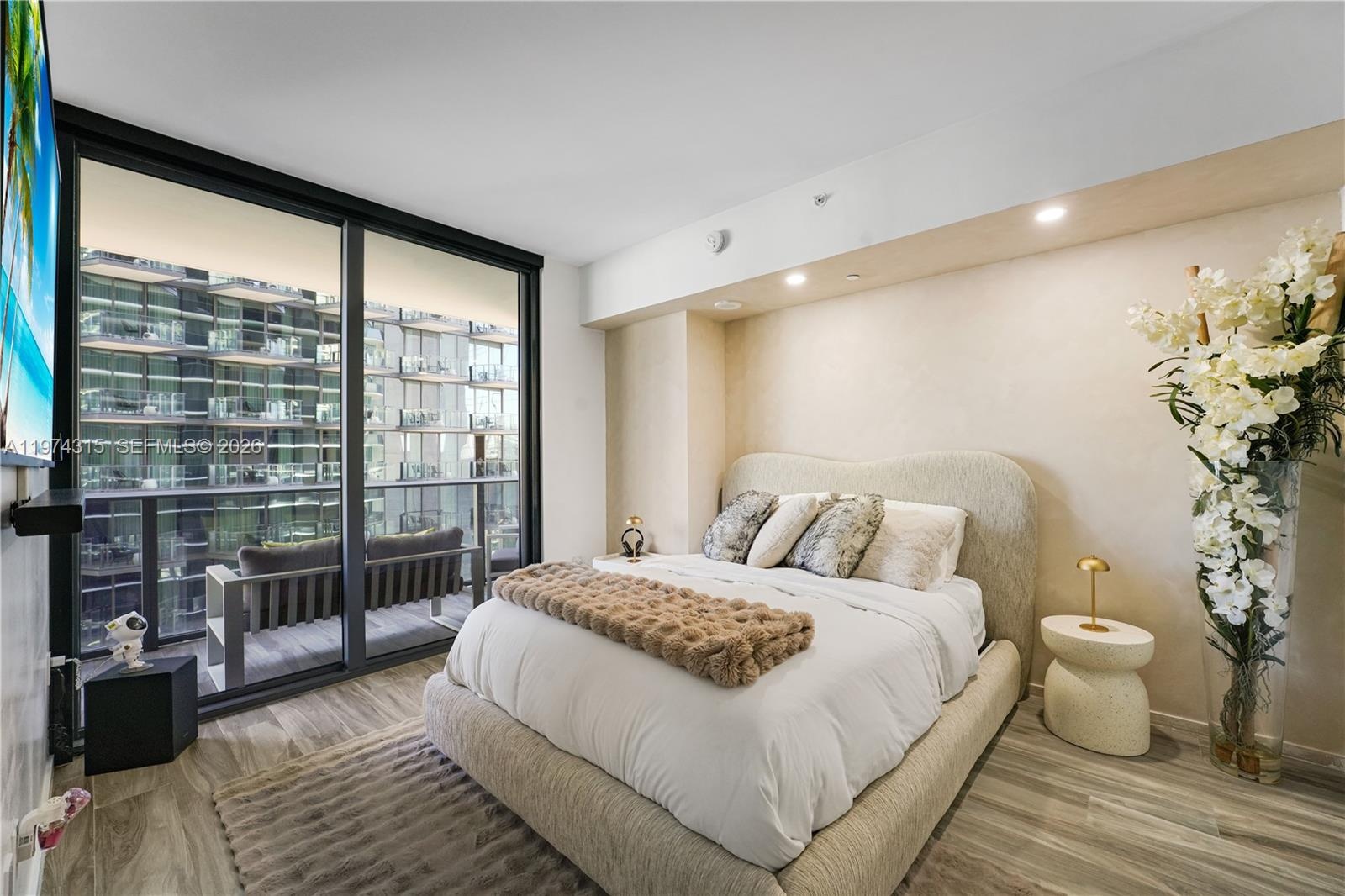 Experience elevated modern luxury in this beautifully redesigned 1 Bedroom + Den, 2 Full Bathroom residence at SLS Lux in the heart of Brickell. Fully upgraded with a sophisticated contemporary aesthetic, this move-in-ready unit features wood-look flooring throughout, custom architectural wall paneling, designer recessed lighting, and an open-concept layout that blends elegance and functionality. The statement kitchen showcases premium appliances, sleek cabinetry, a spacious island ideal for entertaining, and a striking black hexagon backsplash. The residence is equipped with motorized blackout shade for added comfort and privacy. The primary suite offers direct balcony access, a spa-inspired bathroom, and a fully customized walk-in closet, while the den provides flexible space for a home office or guest area. Enjoy a private terrace with impressive Brickell skyline and city views. SLS Lux delivers world-class amenities including rooftop pool, 45th-floor sky lounge, fitness center, tennis court, concierge, valet, hotel-style pool deck, and on-site dining. Designer finished. Prime Brickell location.